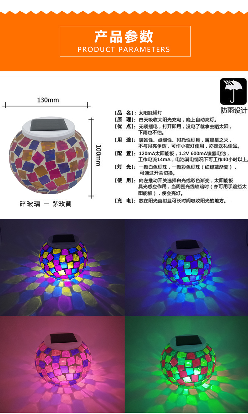 クロスボーダーソーラー太陽光缶パープルローズイエローキャンプランプモザイク風景ランプ屋外ガーデンランプシンプルなパーソナライズされたランプ