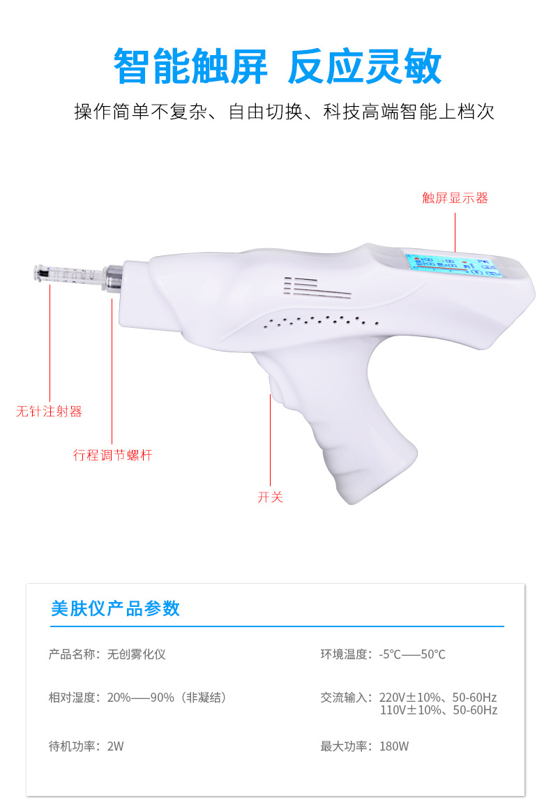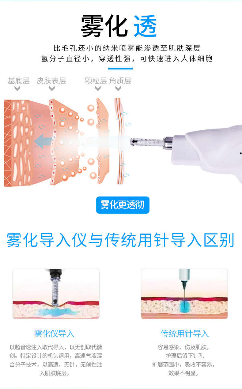 ポータブル非侵襲性アトマイザー、小型鋼砲電気導入無影ナイフ器具、全自動連続アトマイザー、メソセラピーガン