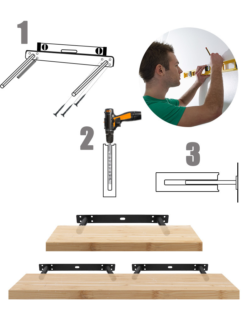 隠し棚受け ブラック ダブルT 隠し棚受け 壁掛け固定木板接続ブラケット