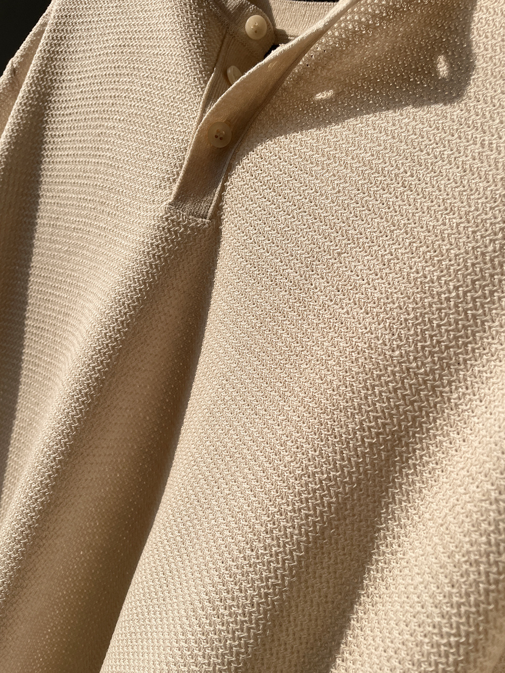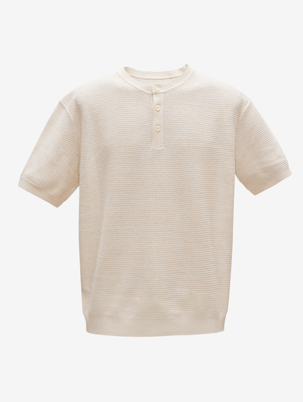 亨利领亚麻提花T恤!慵懒风的亚麻质感轻奢品
