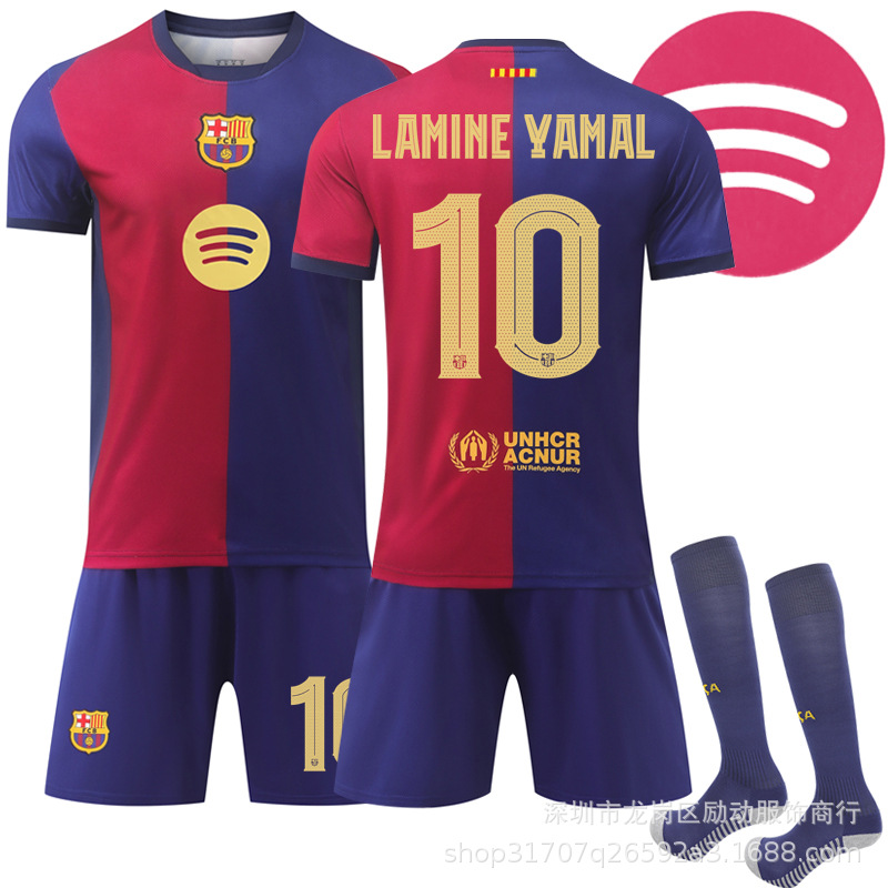 2025-26 クラブ チャンピオンズ リーグ エディション スポーツ 速乾性サッカー ユニフォーム セット バルセロナ ホーム 10 番 アマール ジャージ