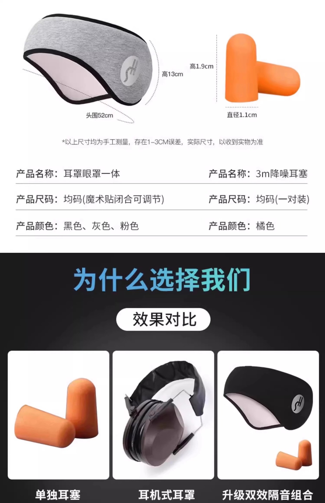 ブラックイヤーマフ+耳栓[強力遮音]-アップグレードモデル(サイズ:22.5*10.5cm)