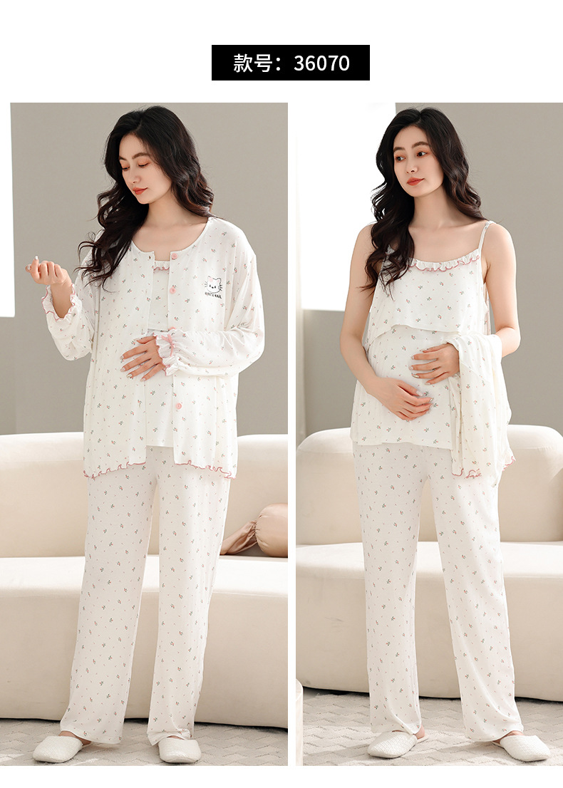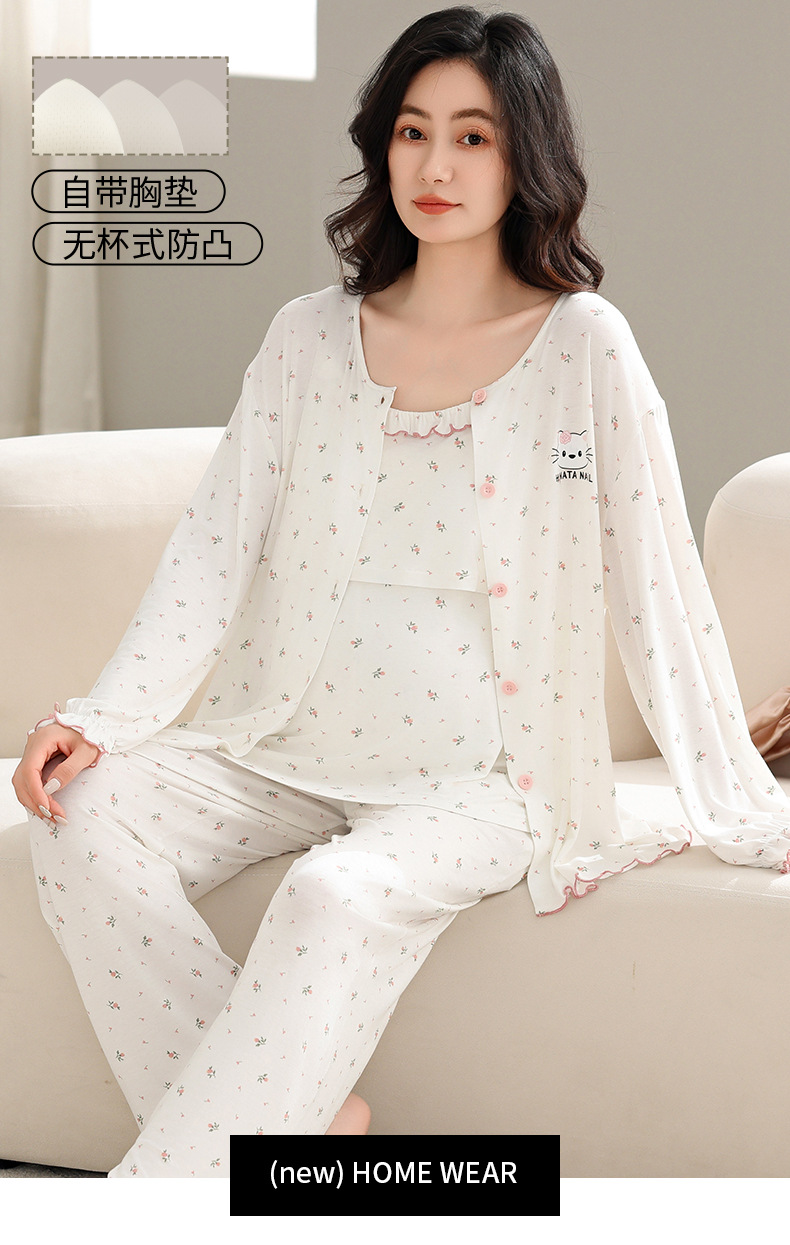 モーダルカーディガン レディース パジャマ マタニティ サスペンダー 長袖ズボン 春夏 3点セット 授乳ベルト 胸パッド付き 産後服