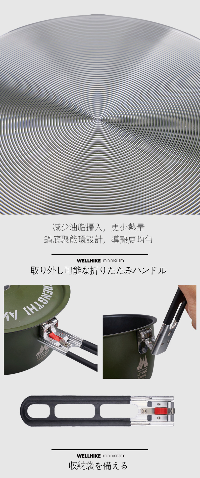 WELLHIKE アウトドア グリーンフィールド 鍋セット 鍋 ストーブ キャンプ用品 調理器具 ピクニック専用鍋 ポータブルセット