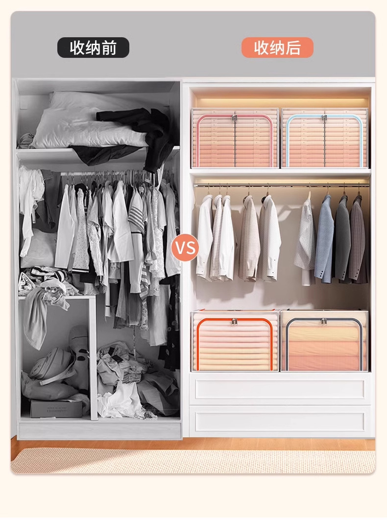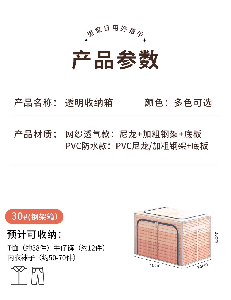 PVC透明衣類収納ボックス 超大容量 オックスフォード布整理ボックス 折りたたみ式布団衣類収納ボックス
