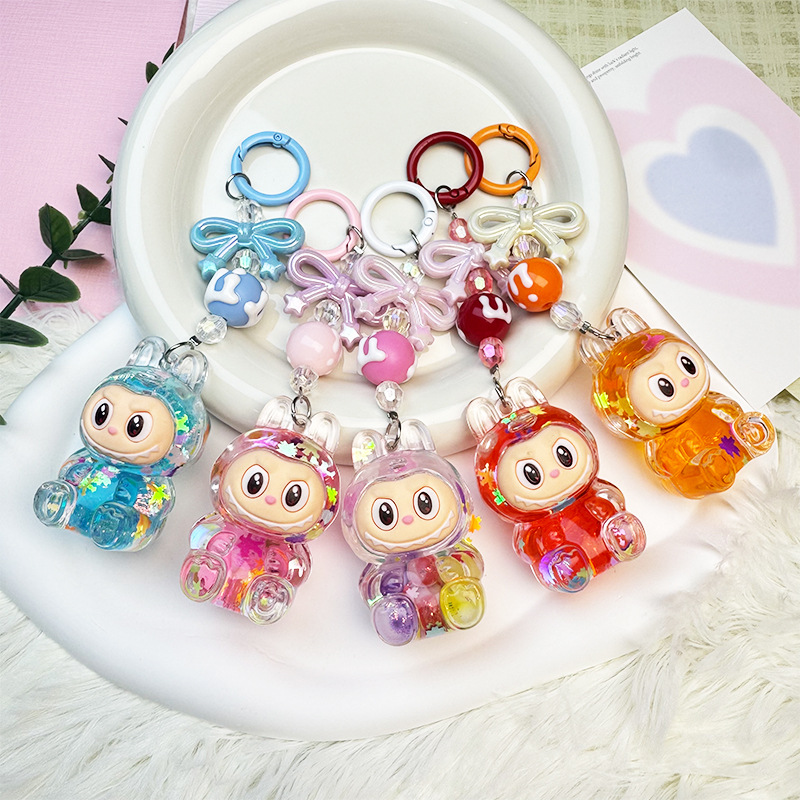 カラービーズ点滅発光ラブブクリエイティブキーホルダーオイル人形スクールバッグ流砂小さなペンダントギフト装飾品