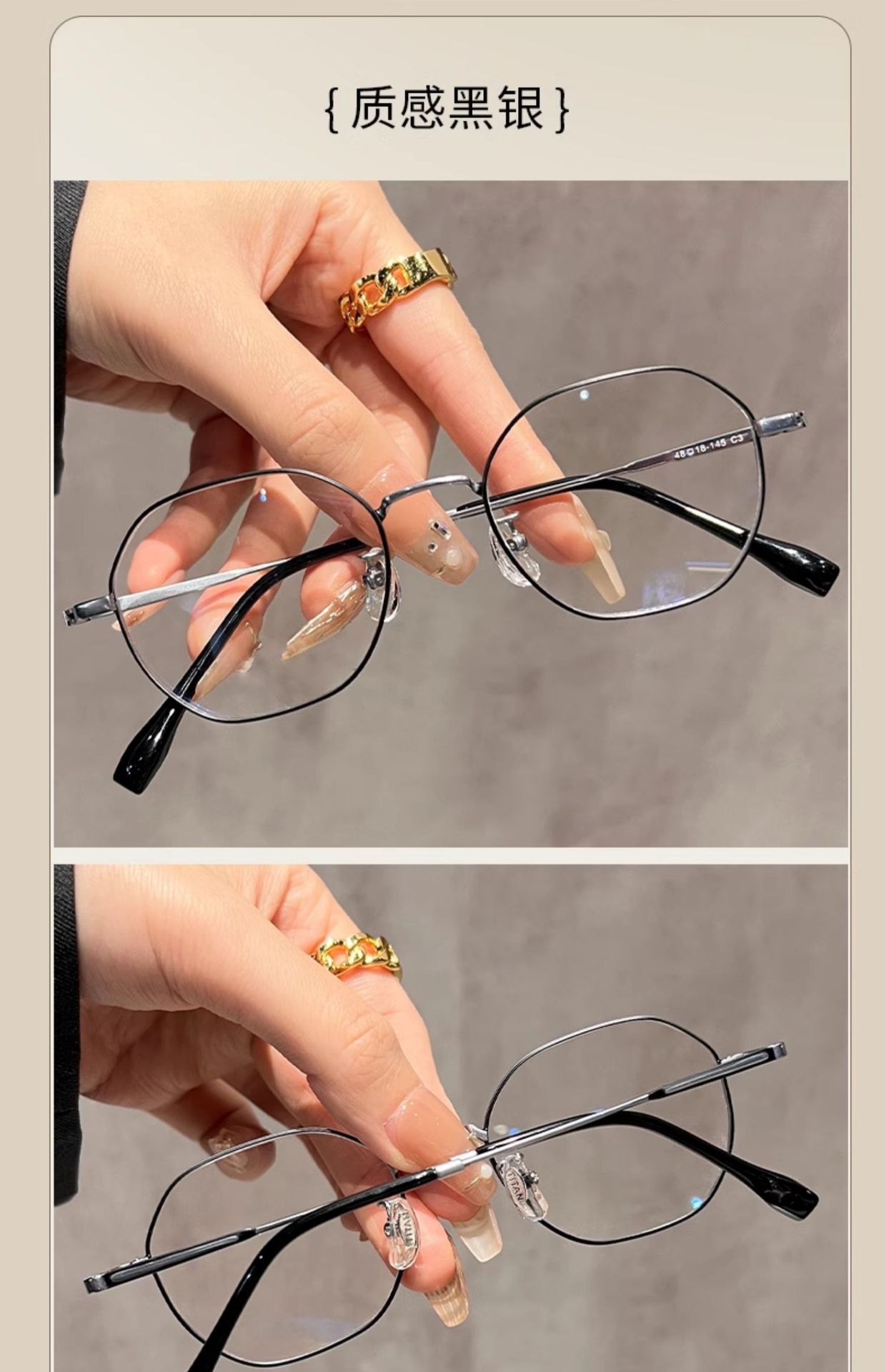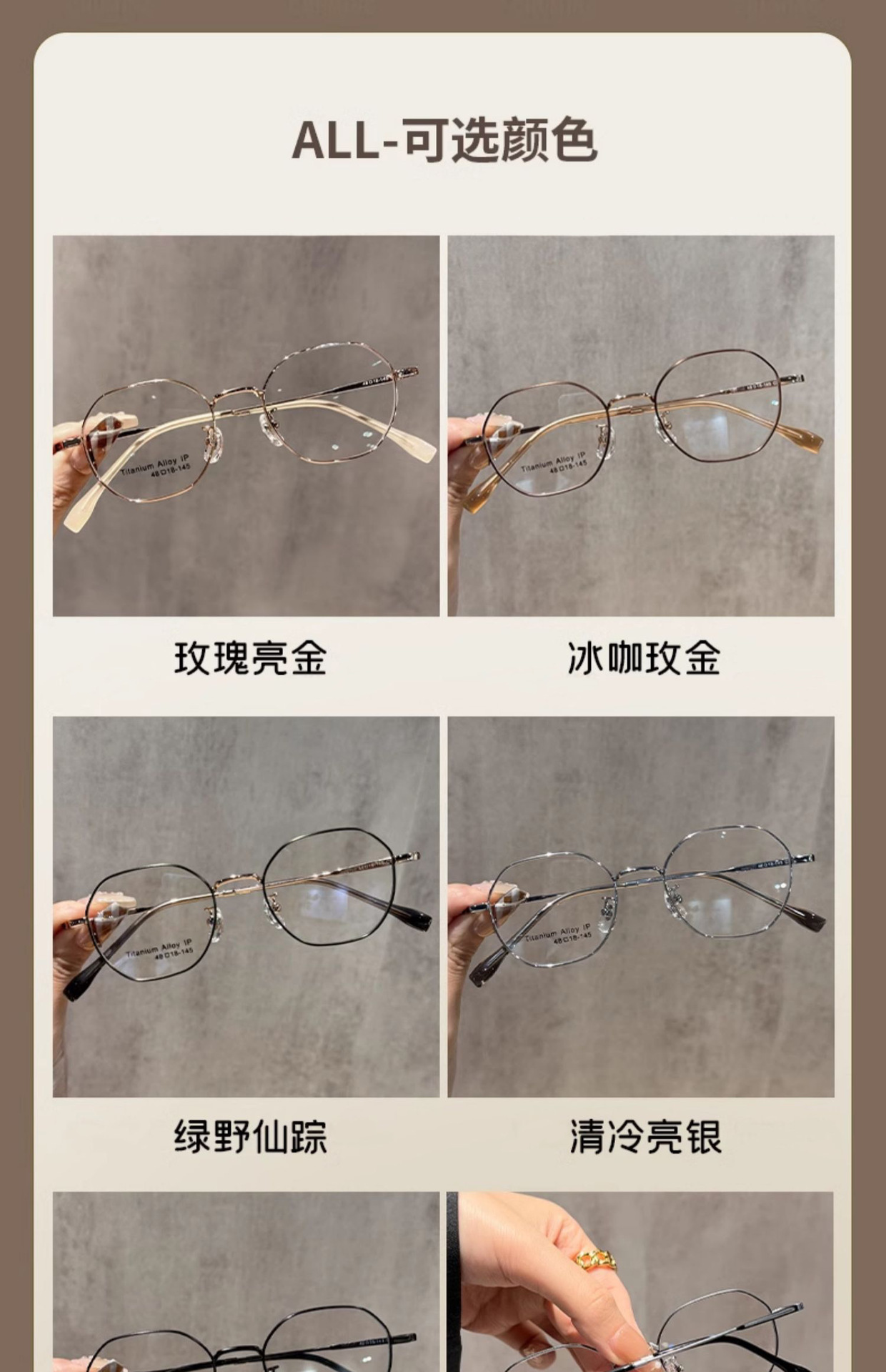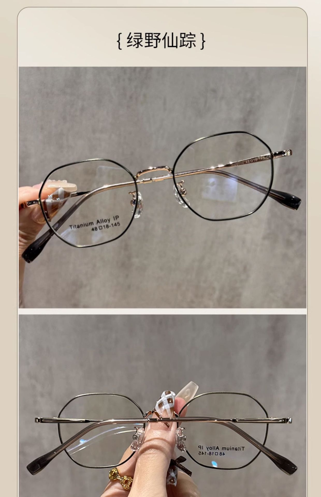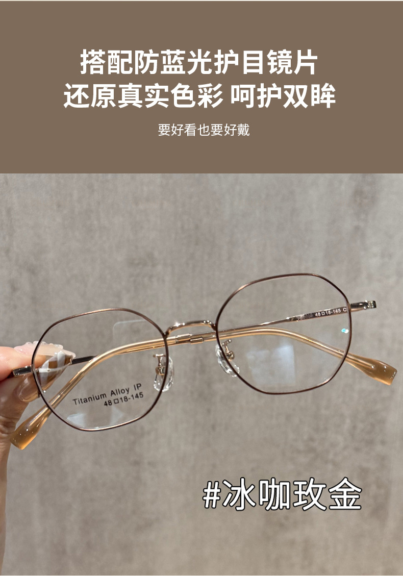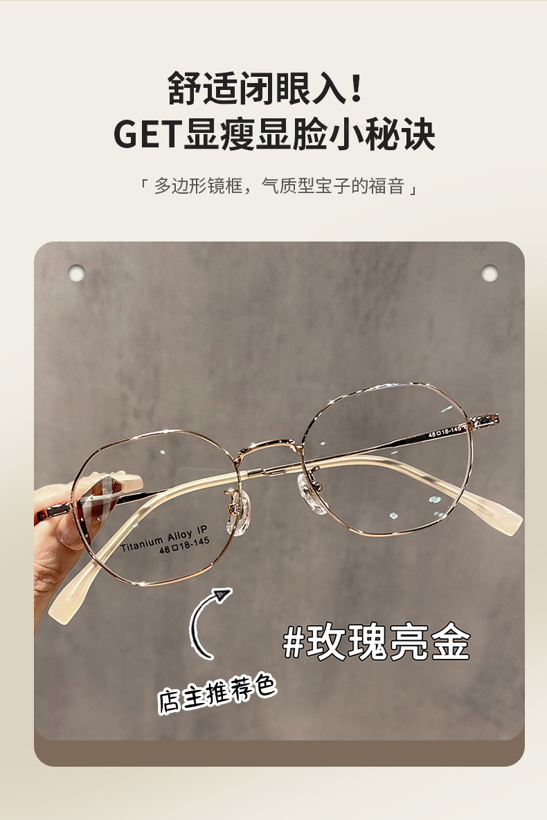 超軽量レトロな小さなフレームのチタンフレーム多角形メガネフレーム卸売女性のハイエンドは度付きのゴールドメガネフレームを装備することができます