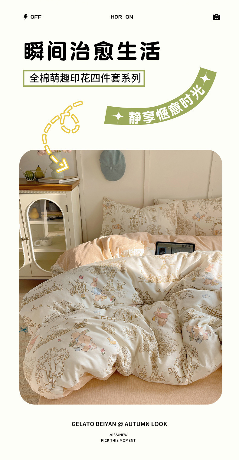 漫画インスタイルコットン4点セット純綿四季ワイドシーツキルトカバー学生寮寝具3点セット