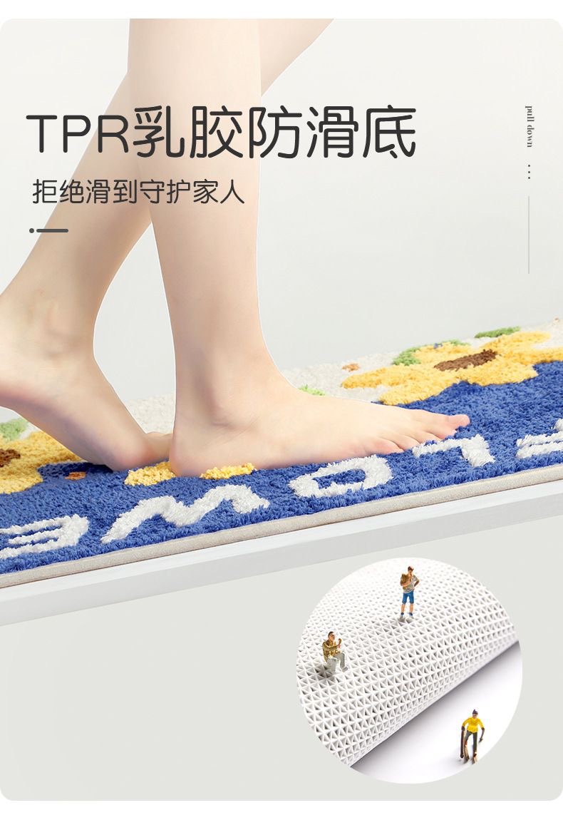 浴室用保温フリース滑り止めマット 厚手漫画柄バスマット足元マット 即納吸水フリースカーペット
