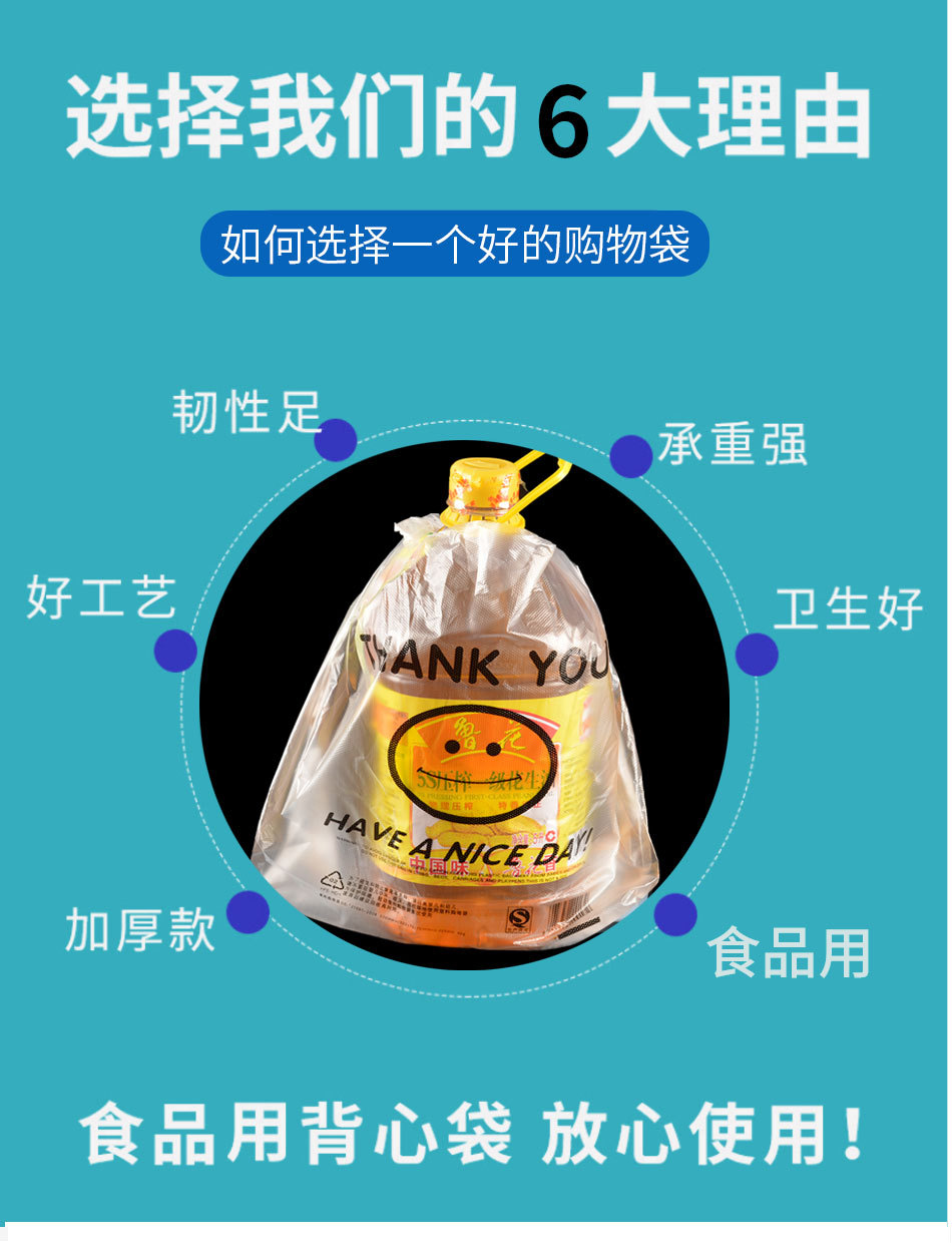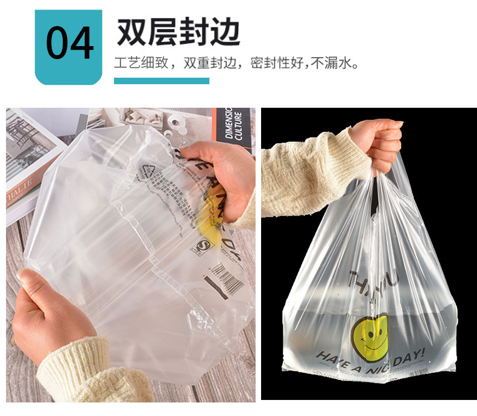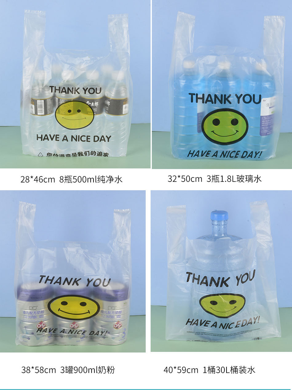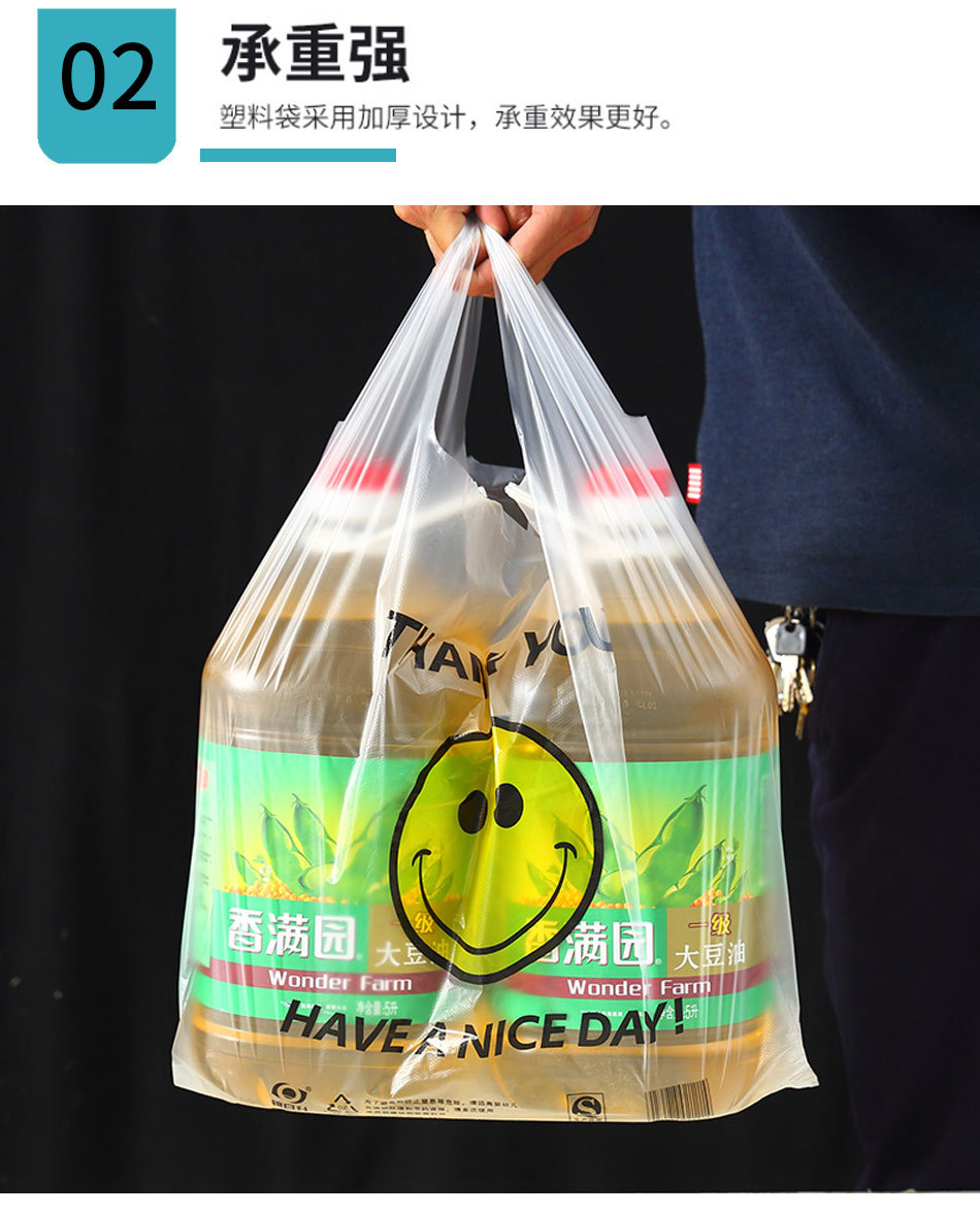 スマイリーフェイスビニール袋透明商業屋台ビニール袋赤いスーパーマーケットのショッピングバッグ増粘食品包装袋食用グレード