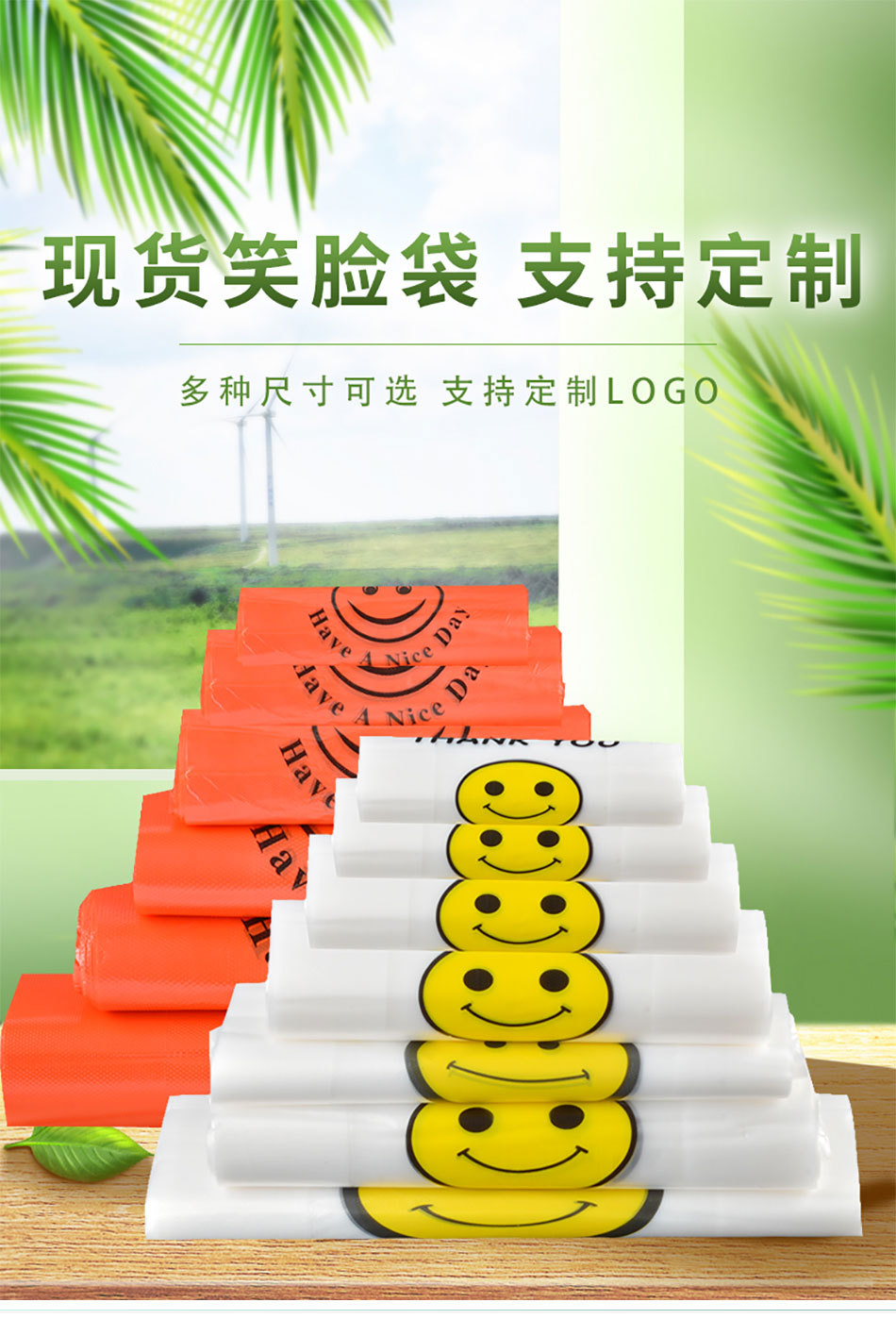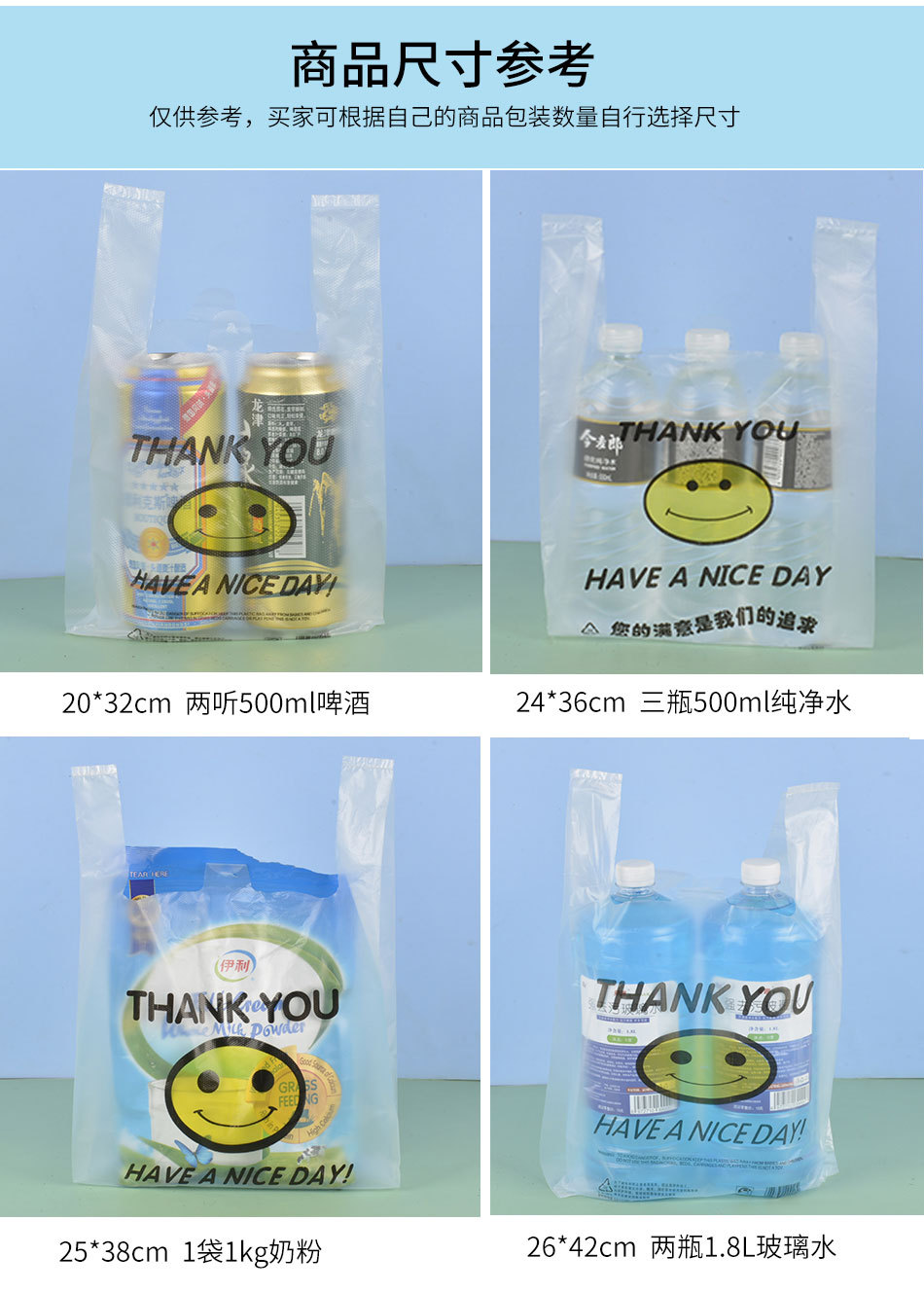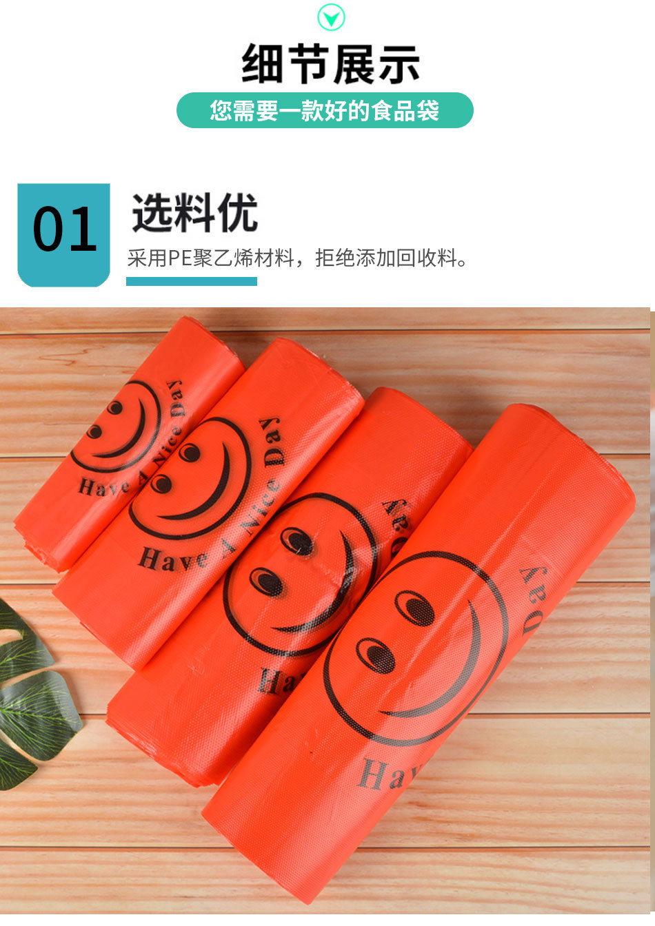 スマイリーフェイスビニール袋透明商業屋台ビニール袋赤いスーパーマーケットのショッピングバッグ増粘食品包装袋食用グレード