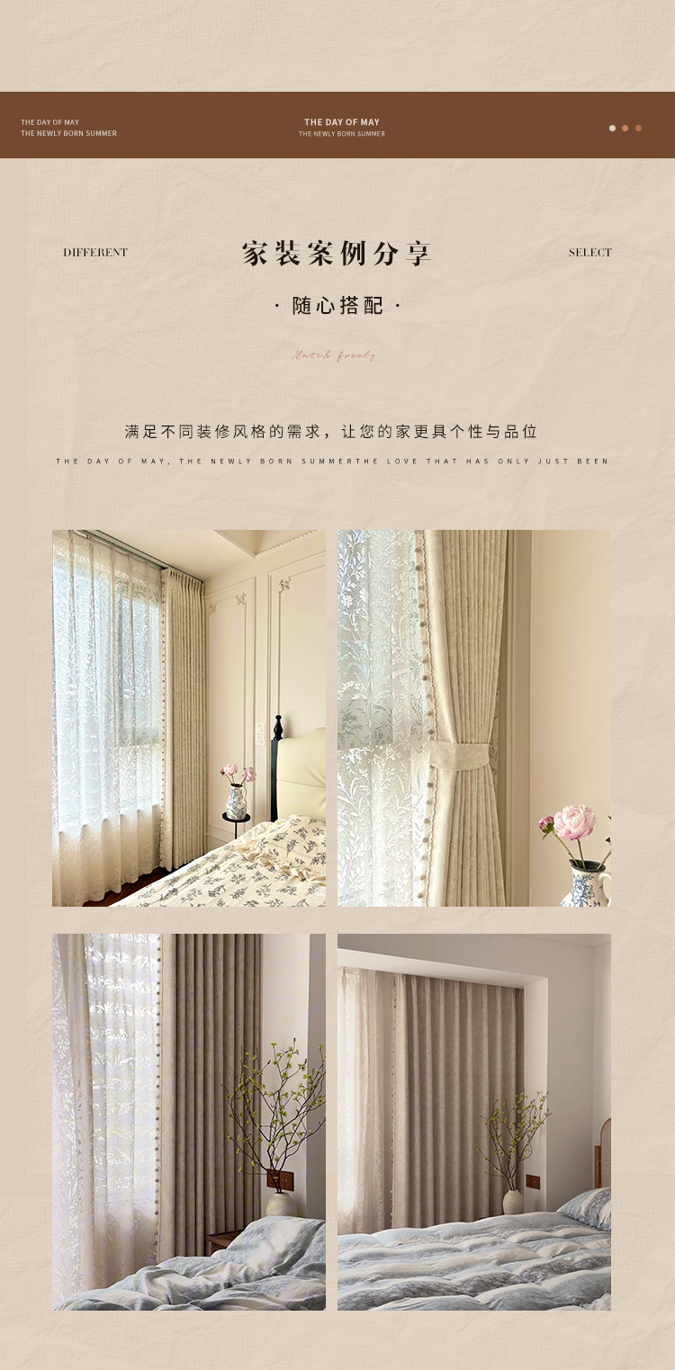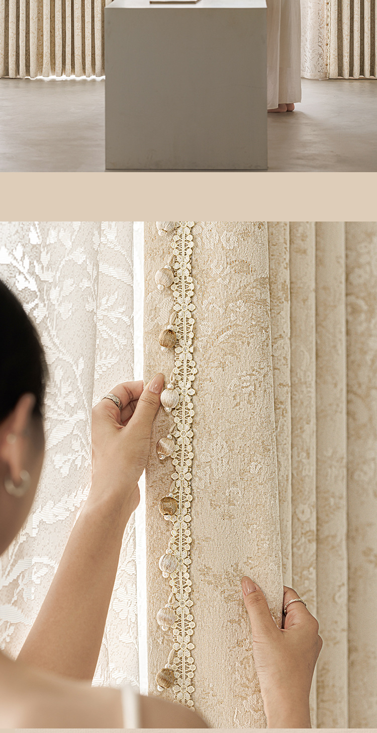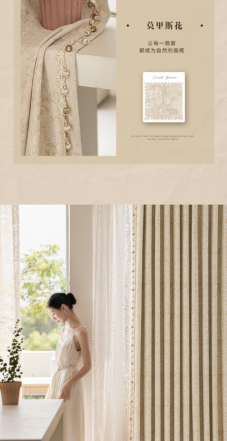 モーリスフラワーフレンチレトロシェニールカーテン リビングルーム 寝室 高級感 遮光カーテン生地 完成品