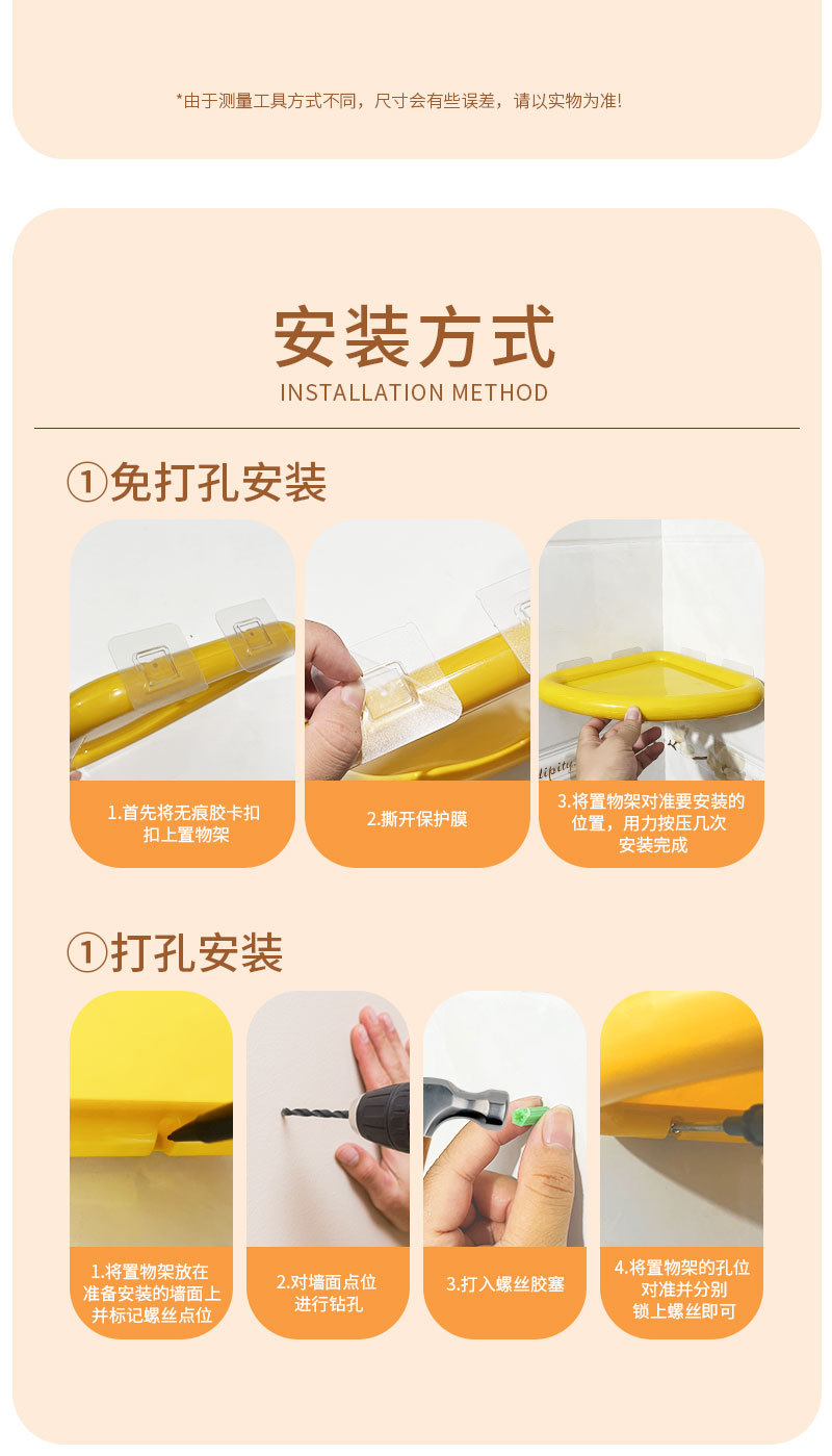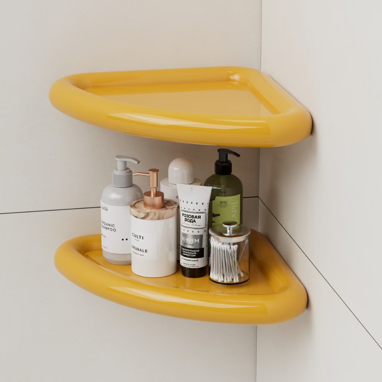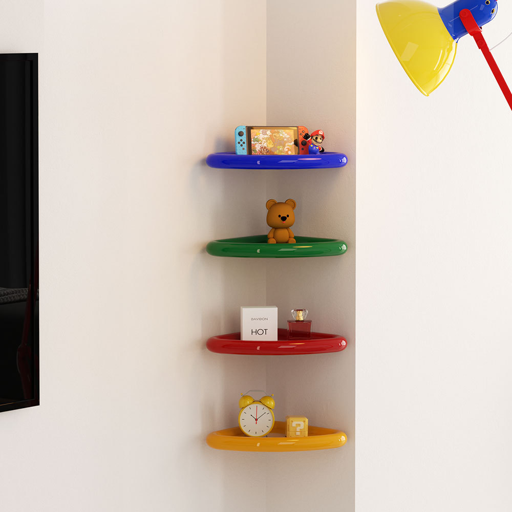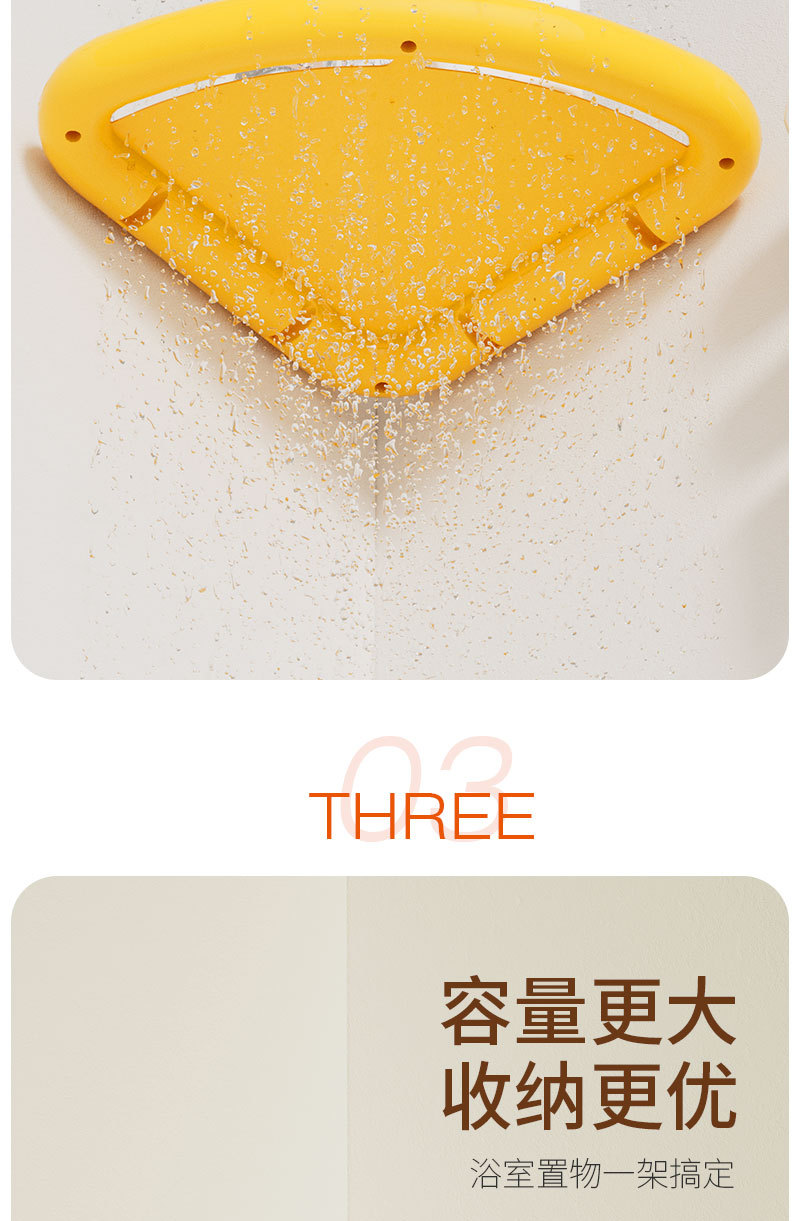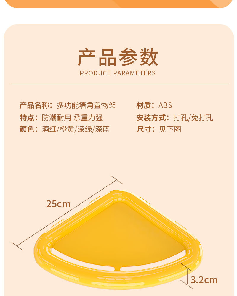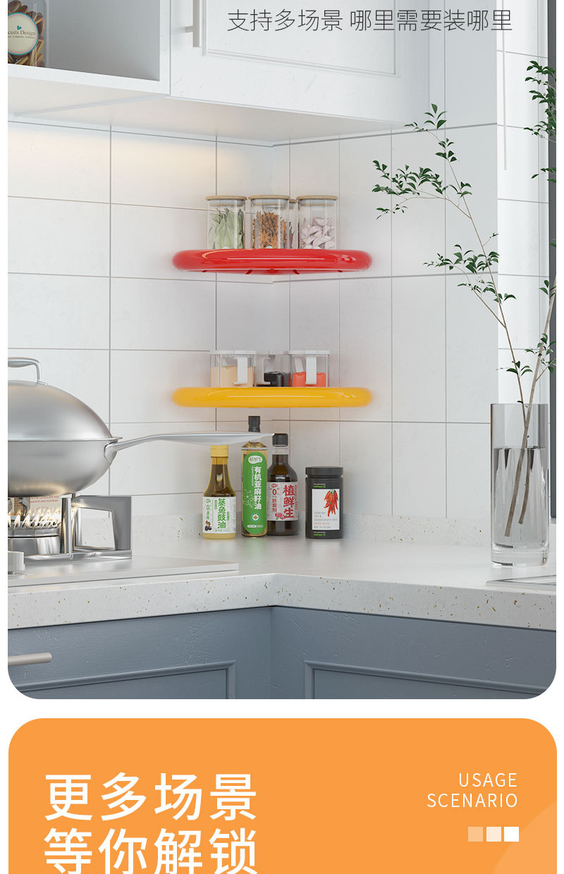 ドーパミンカラーの穴あけ不要多機能キッチン収納ラック、壁掛け式穴あけ不要リビング/バスルーム三角ラック