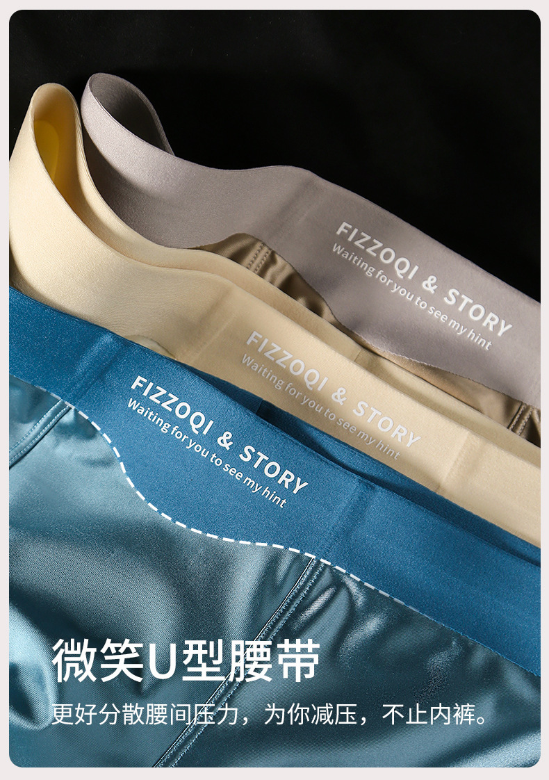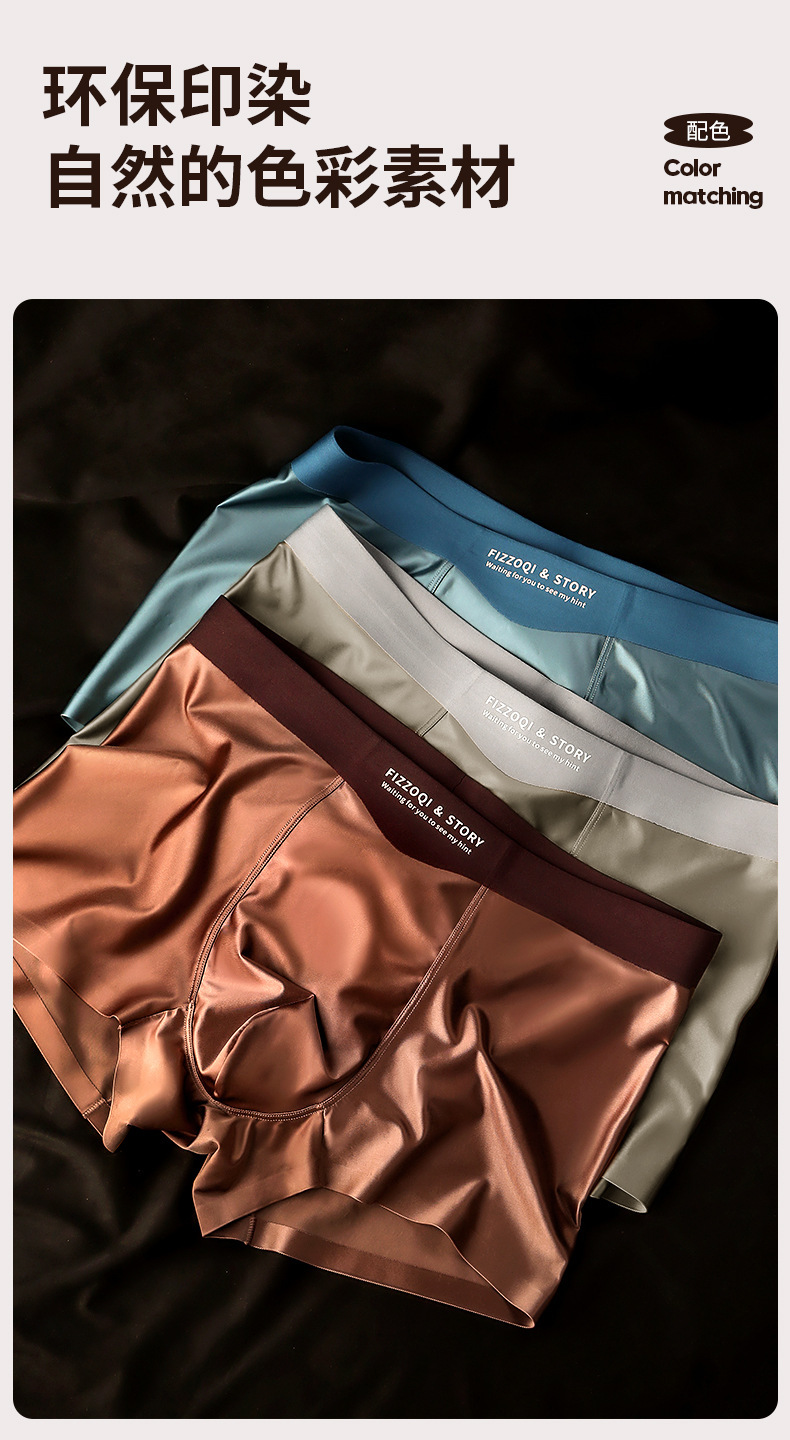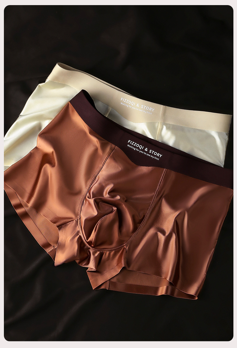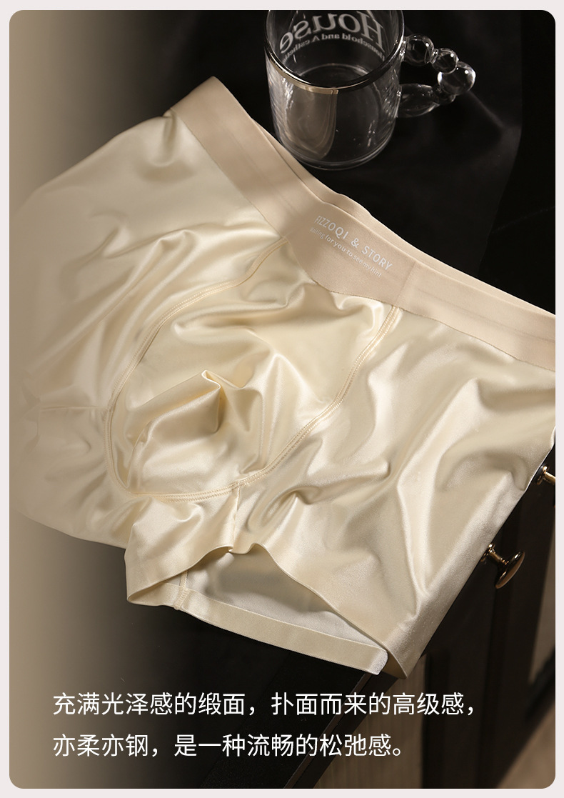 サテンメンズシームレスアイスシルク下着、シルキー、通気性、涼しい、無地、軽い高級感、男の子用ミッドウエストボクサーブリーフ