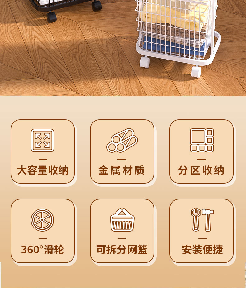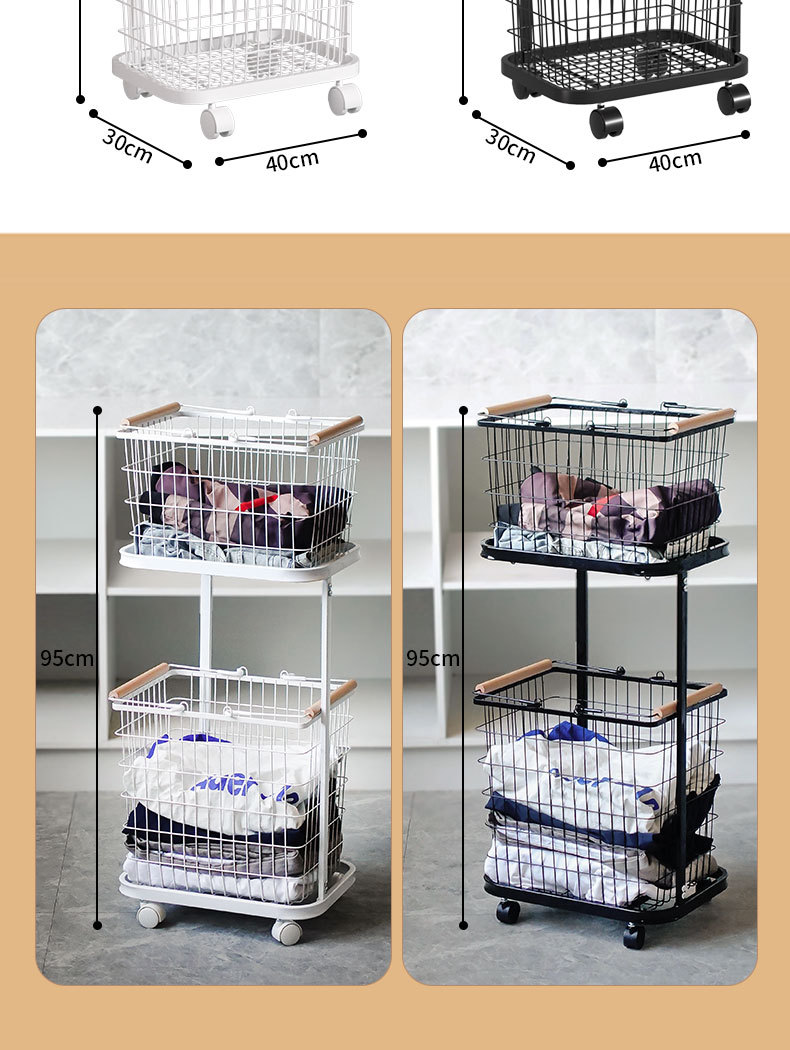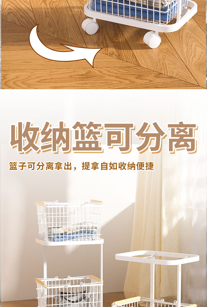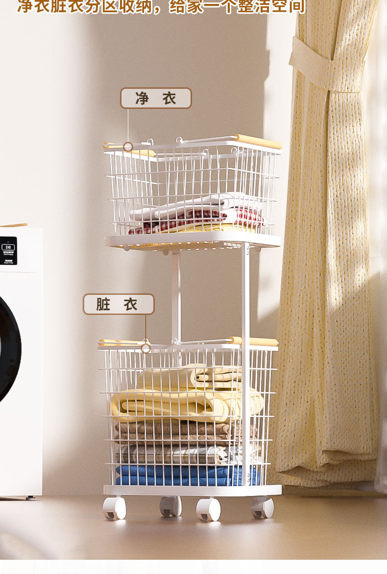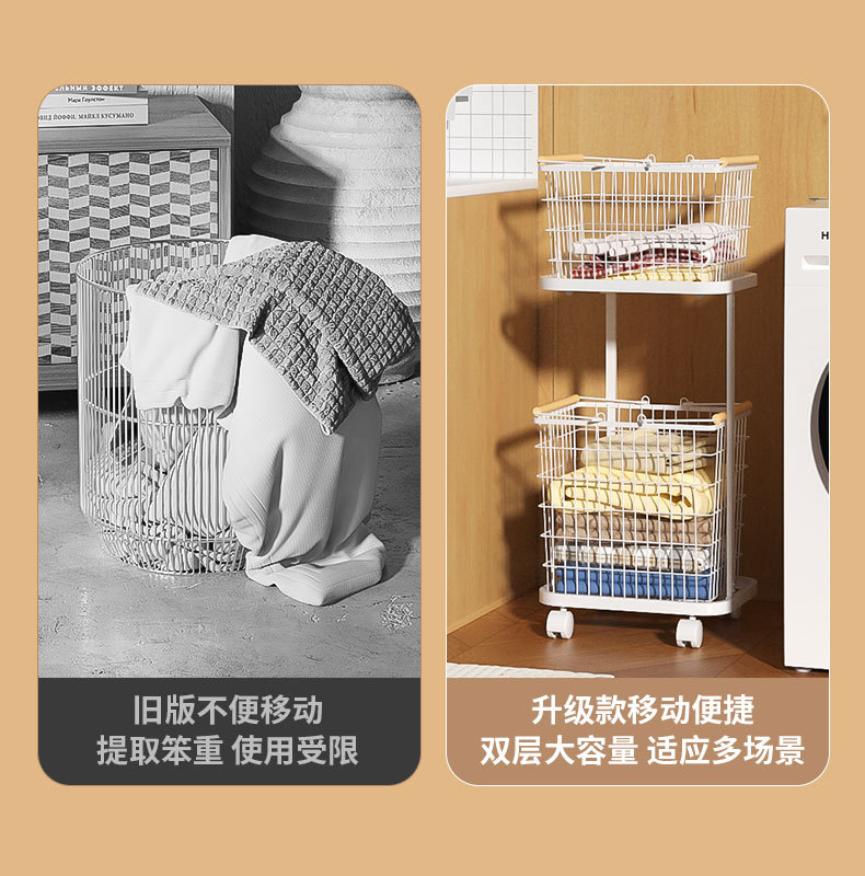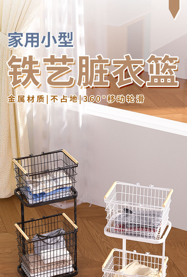 家庭用汚れた衣類バスケット、分離された洗濯物バスケット、多層収納バスケット、ユニバーサルホイール、高級アイアンアートのクロスボーダー直接供給