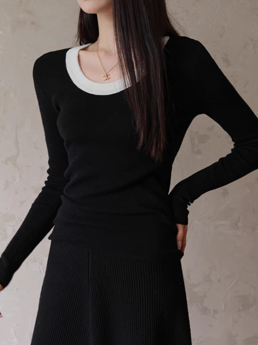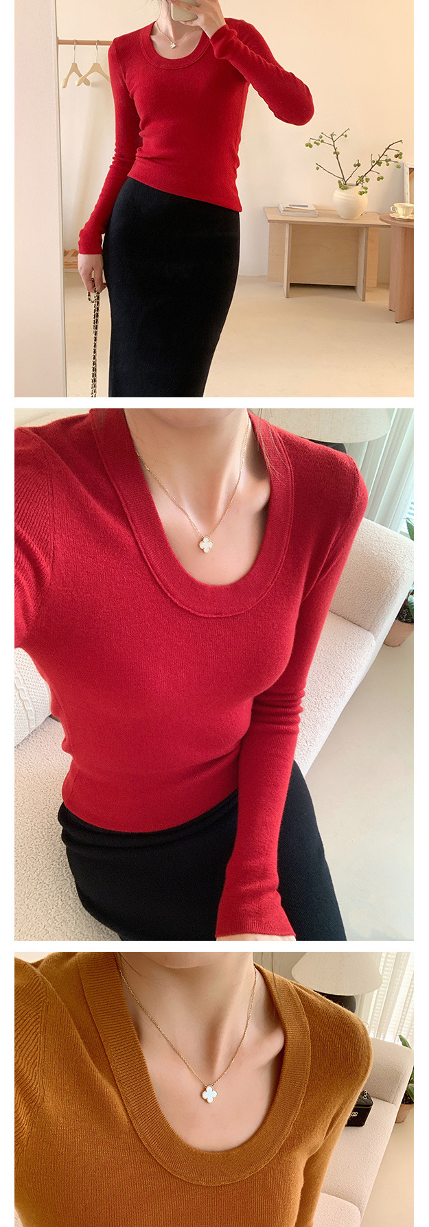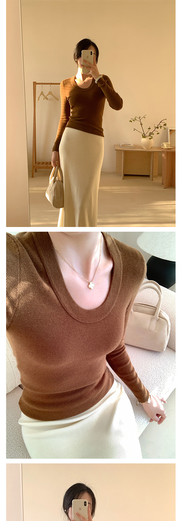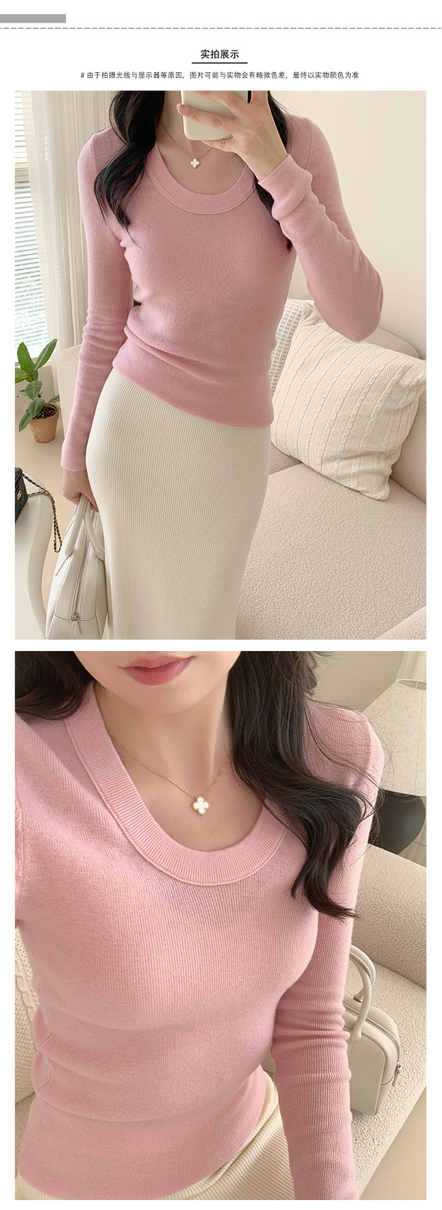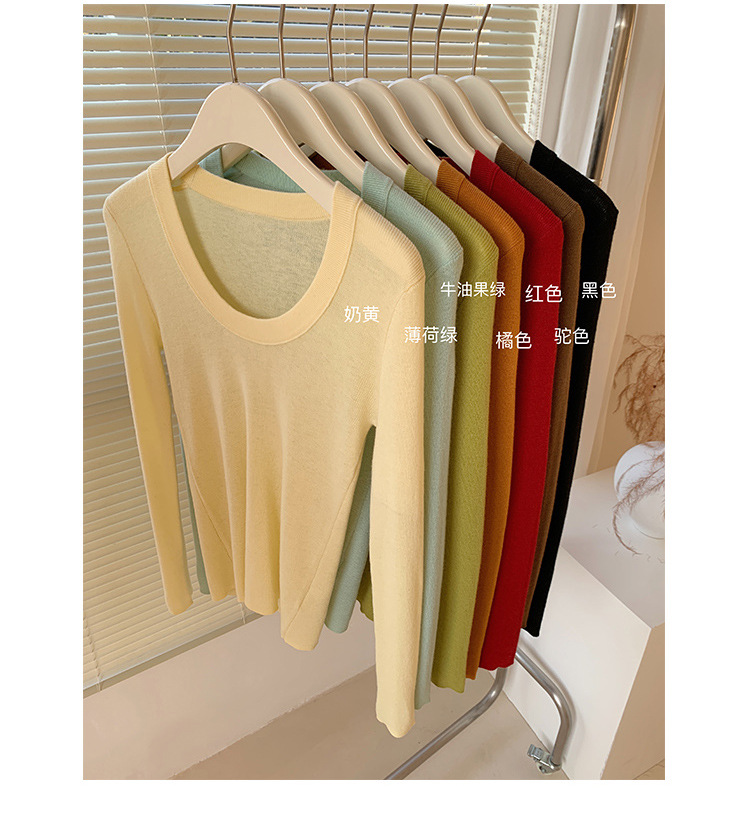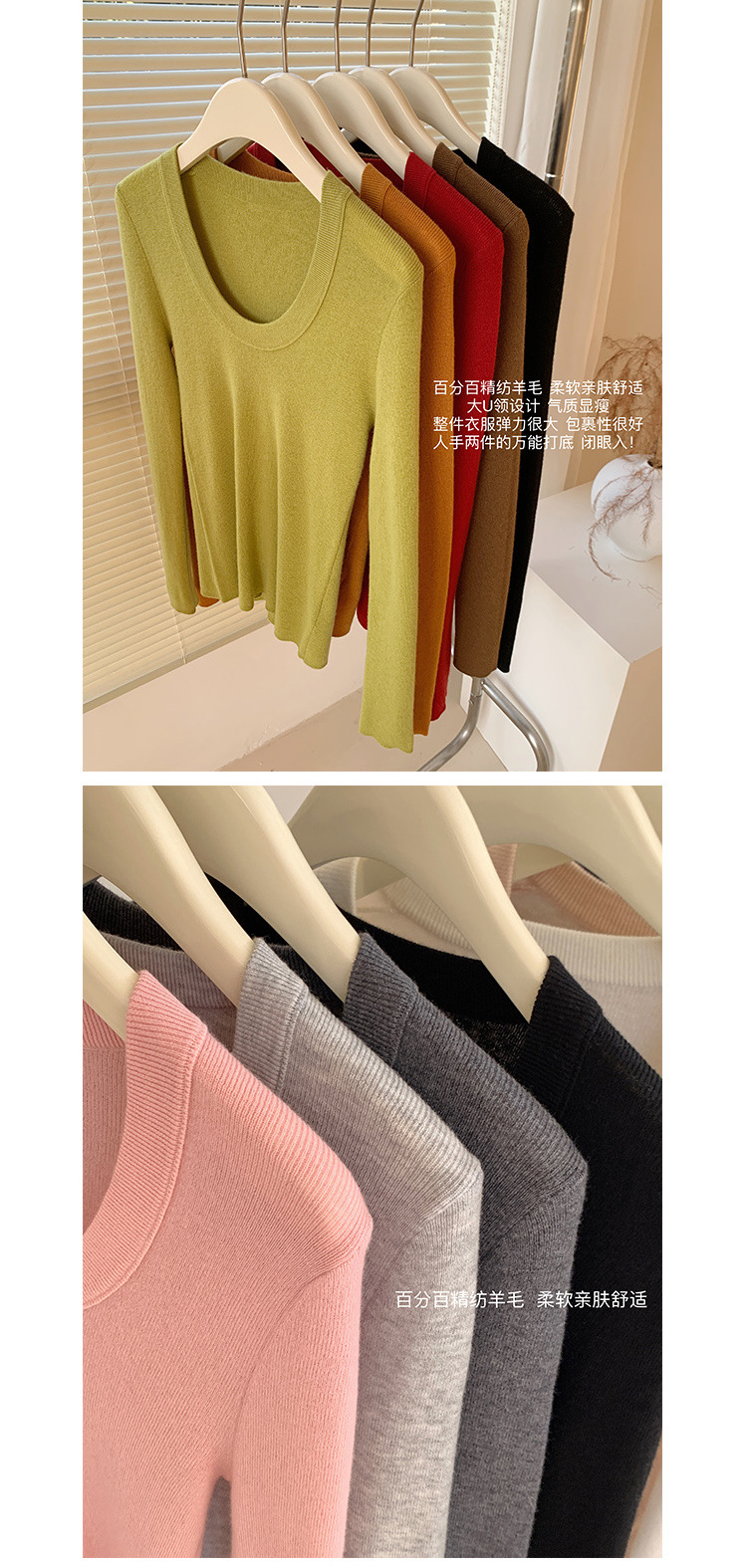 梳毛100ファインウールローユーネックニットボトムシャツレディーススリムフィット通勤セーター韓国風21色