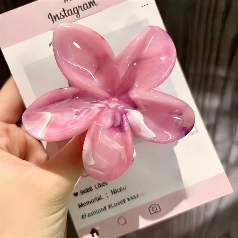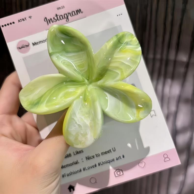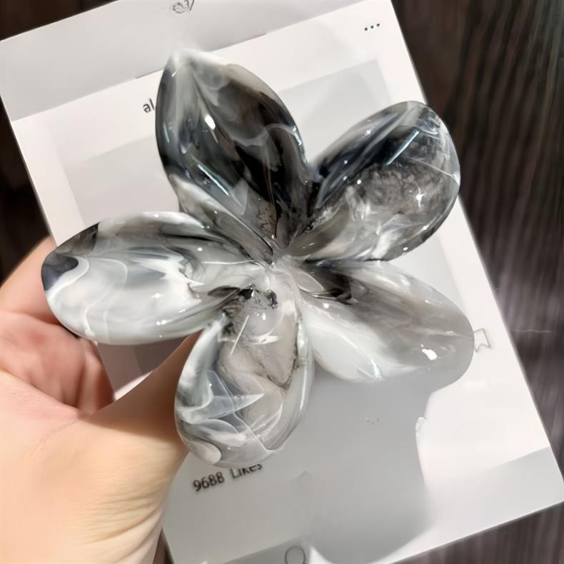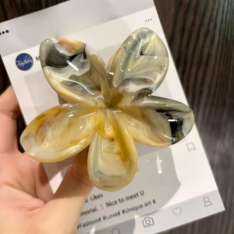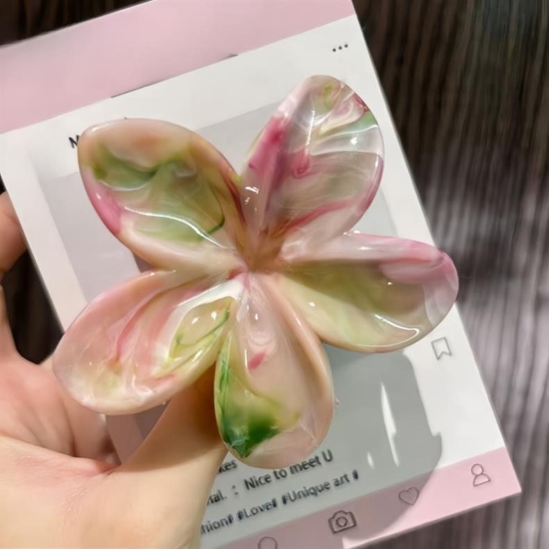 2025年新作クロスボーダー染めプルメリアグリッパー、ネットセレブ流紋花、高級ヘアピン、気質大理