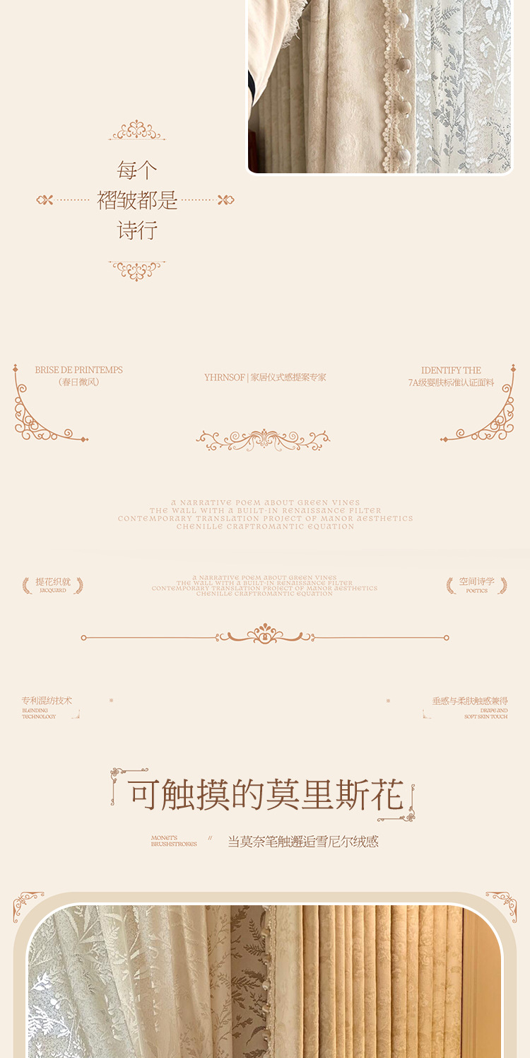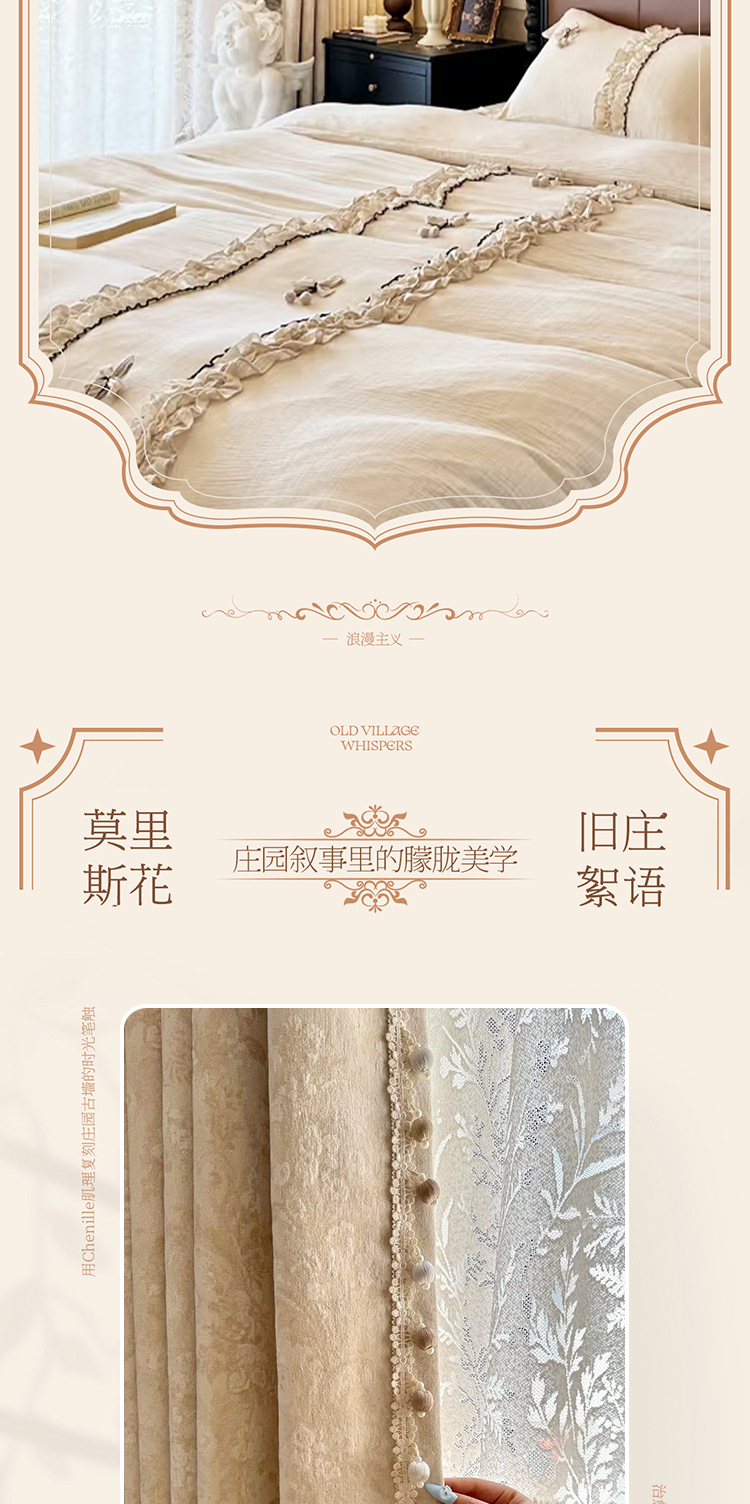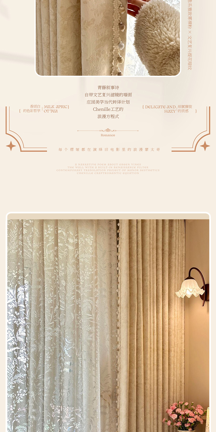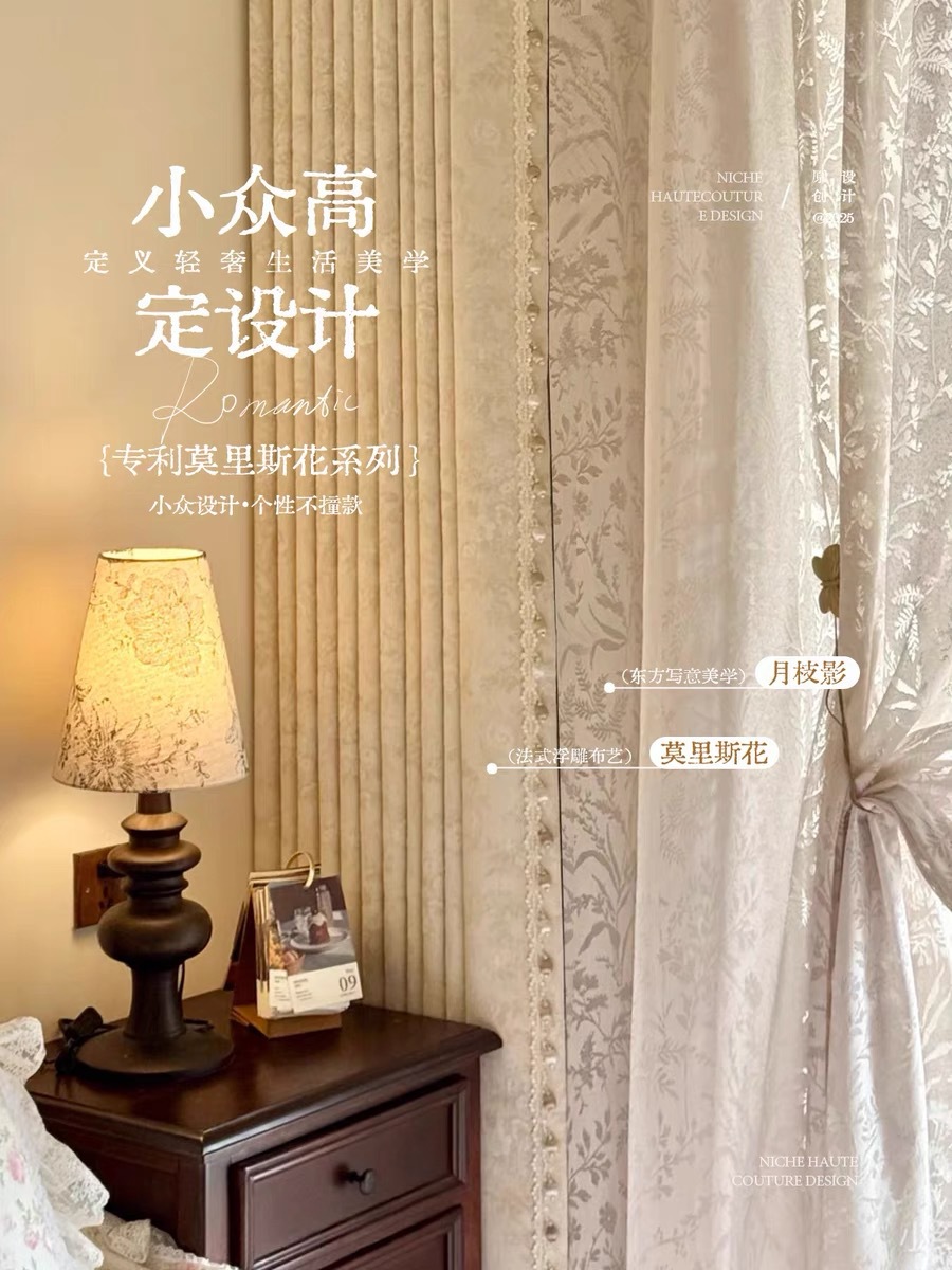 モリスフラワーカーテンリトルレッドブック遮光2025新しいスタイルの寝室とリビングルームハイエンドシェニールジャカードフレンチフラワー