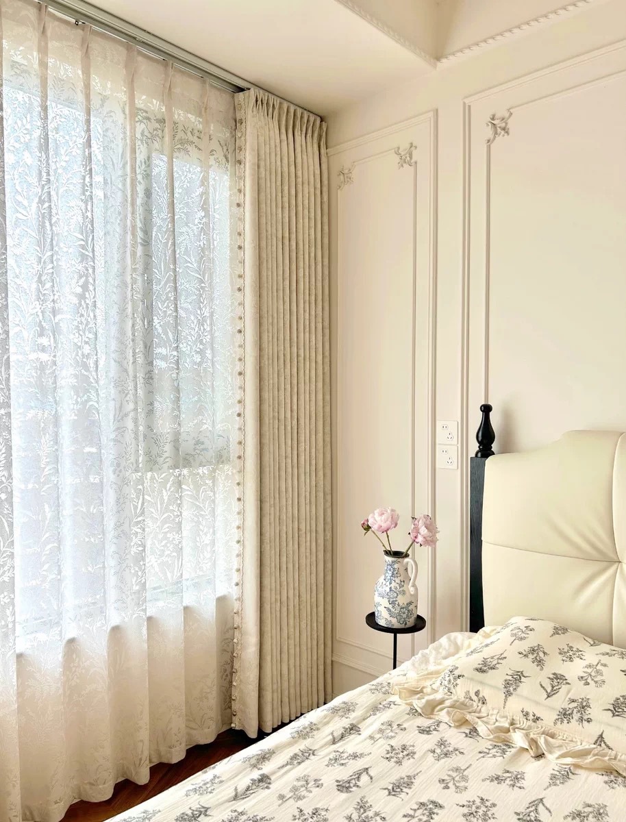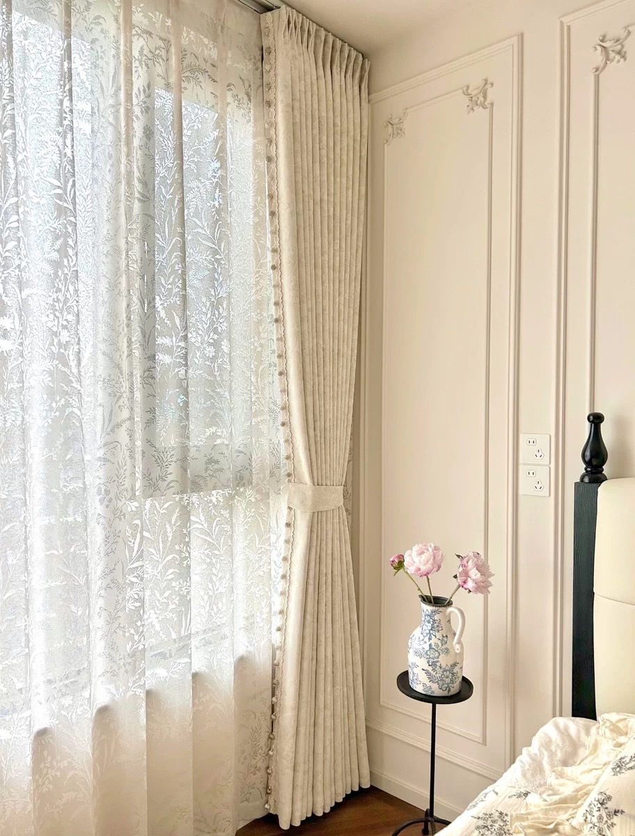 モリスフラワー-ベルベットホワイトドリーム(レース追加可能),月の枝影ガーゼカーテン(レース追加可能)