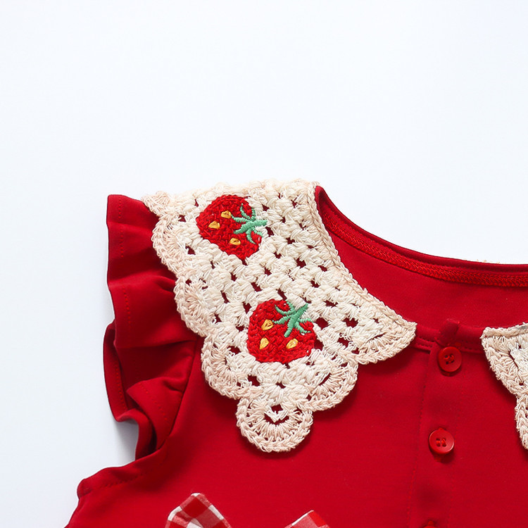 チェック柄イチゴ襟ワンピース
