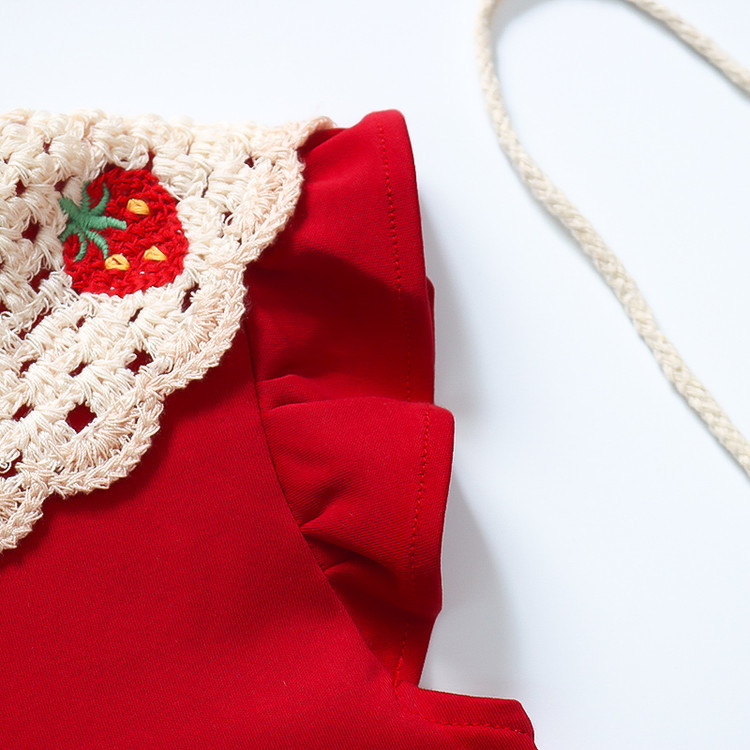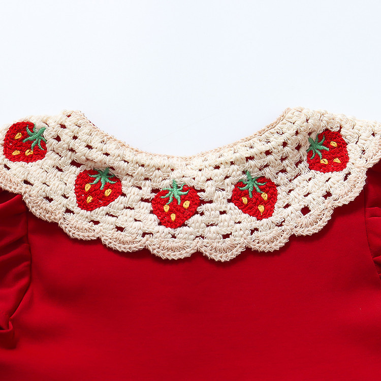 赤いイチゴのセーターの襟のドレス