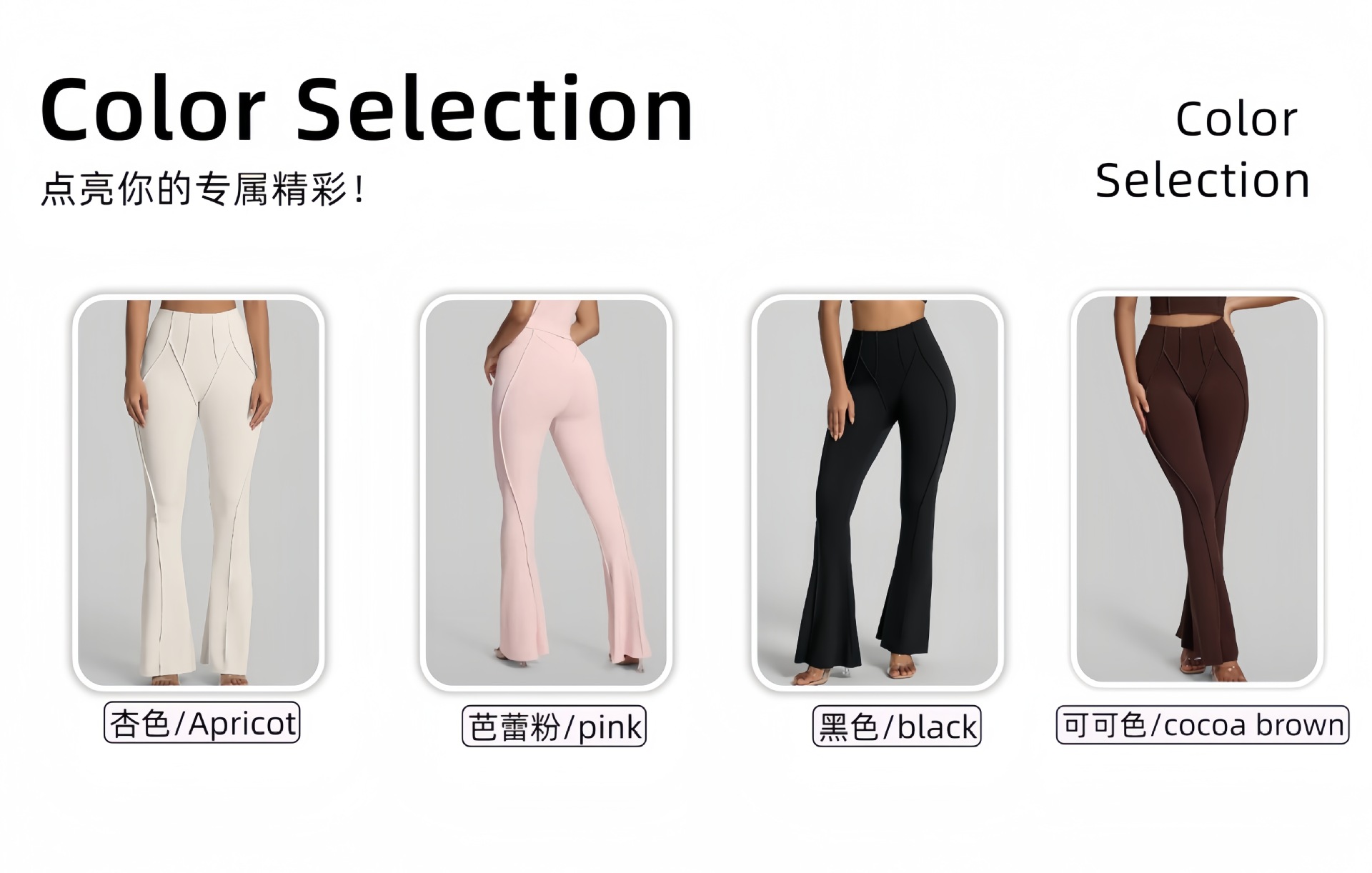 深い黒のズボン,アプリコットホワイトのズボン,ココア色のズボン,バレエピンクのズボン