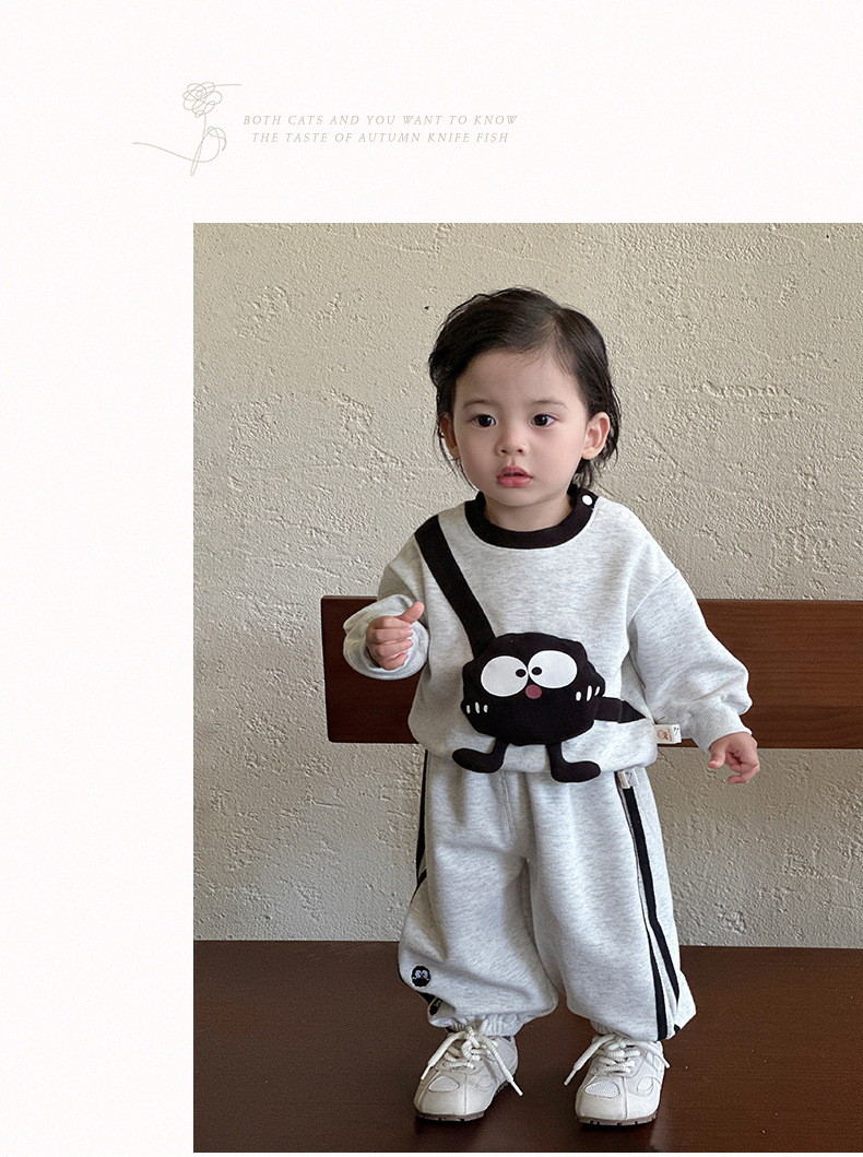 ベビー秋韓国漫画スーツ男の子インスタイルスウェットシャツパンツツーピースセット新生児カテゴリーA服