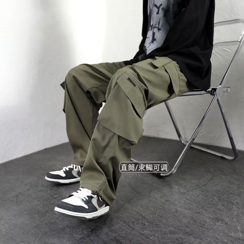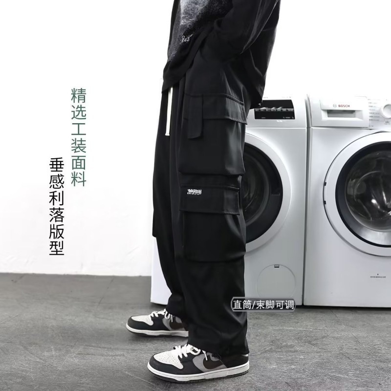 ファットオーバーオールメンズ春秋トレンディワイドレッグカジュアルパンツユースストレートプラスファットプラスサイズルーズパンツ