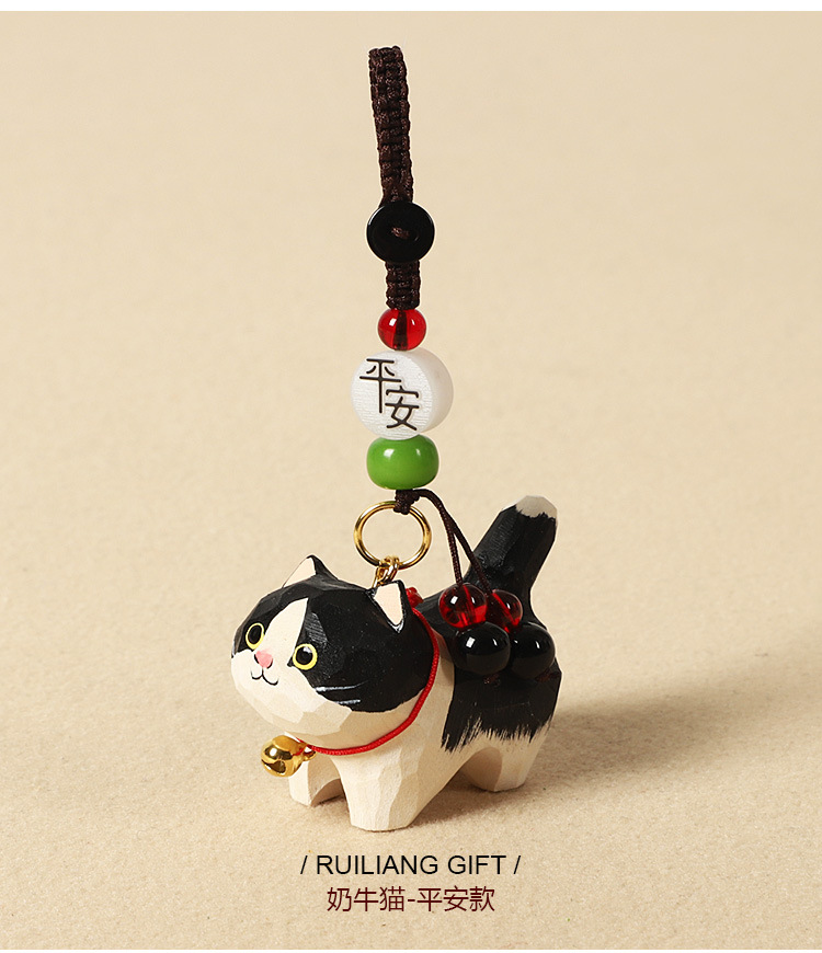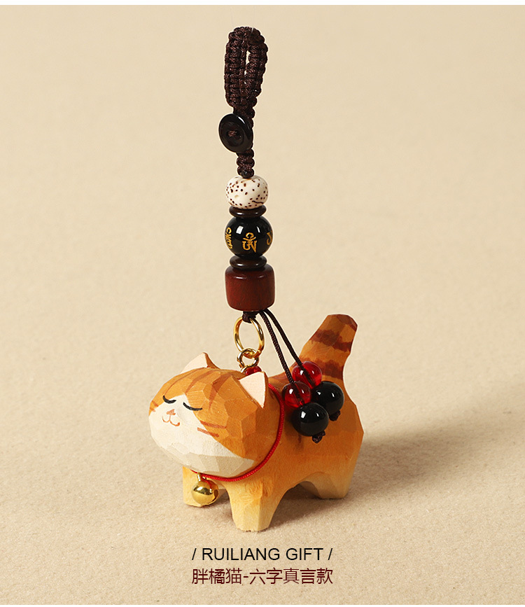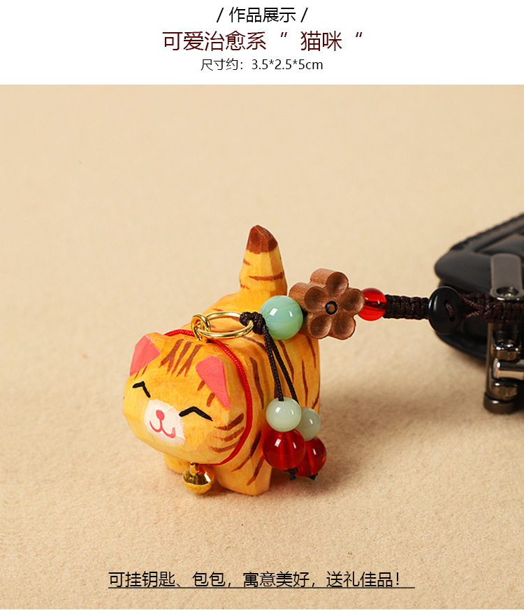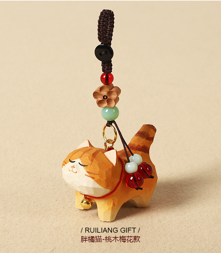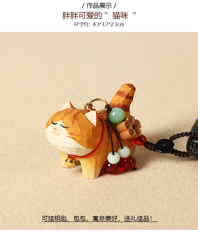 手作り木彫り太ったオレンジ猫車のキーホルダーペンダントかわいい牛猫スクールバッグペンダント女性の親友へのギフトとして