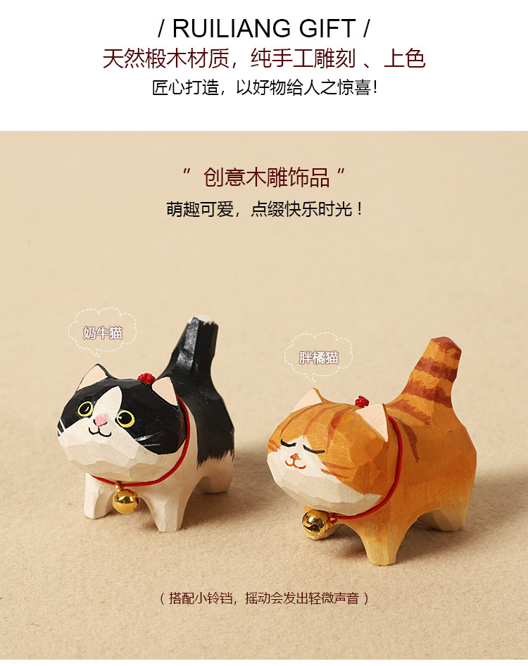 木彫りの牛猫の個別装飾品