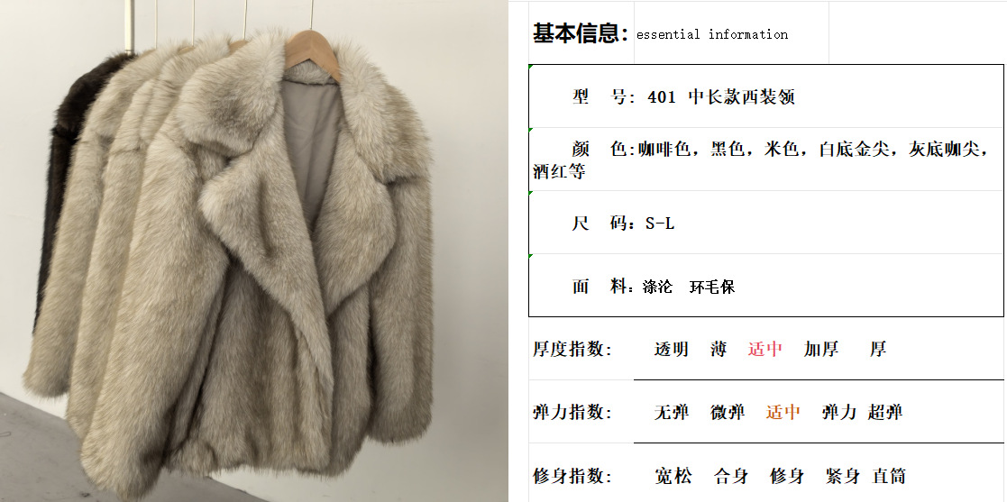 クロスボーダーアマゾン冬の新しいミッドレングスのファッショナブルな高品質スーツの襟模造キツネの毛皮のコート女性用