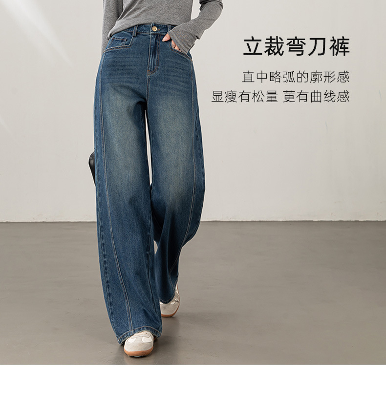 Xinge アメリカンレトロジーンズ女性の 2025 秋の新ワイドレッグパンツルーズレイジースタイルストレートパンツ