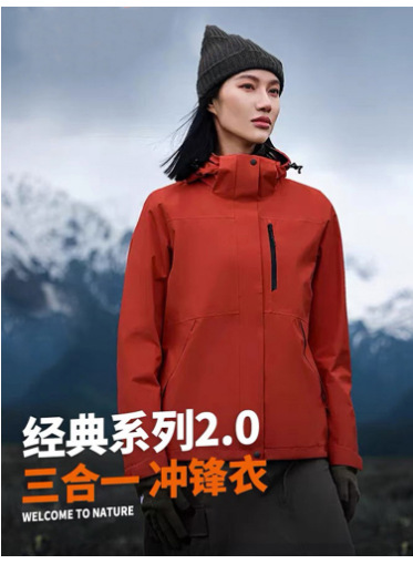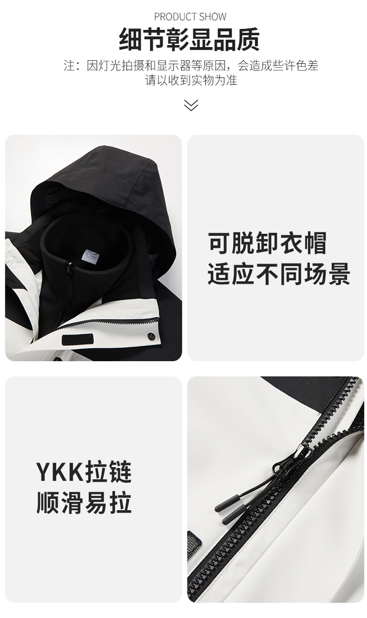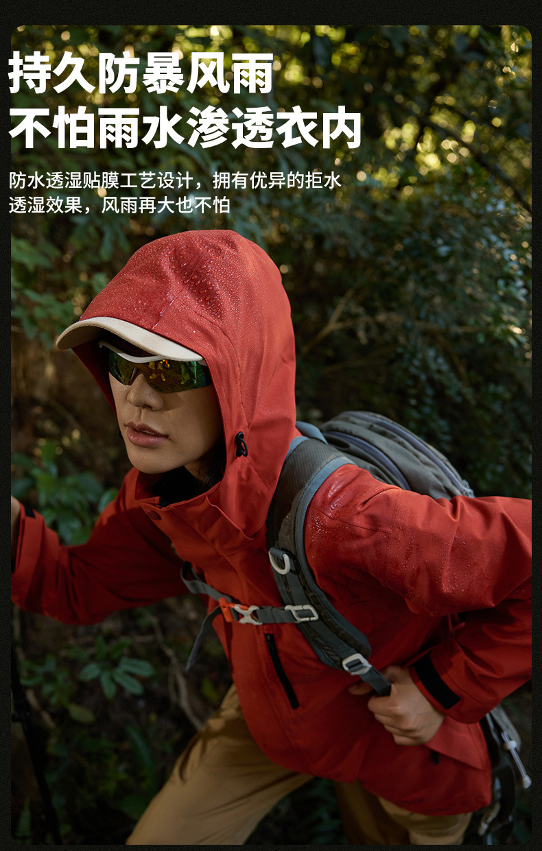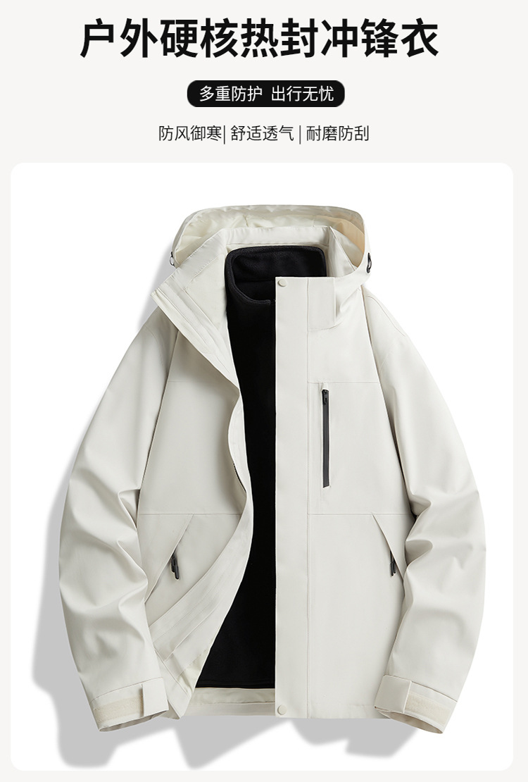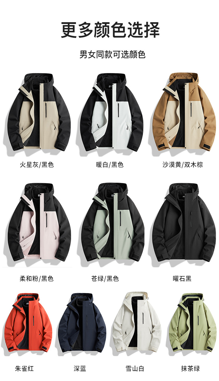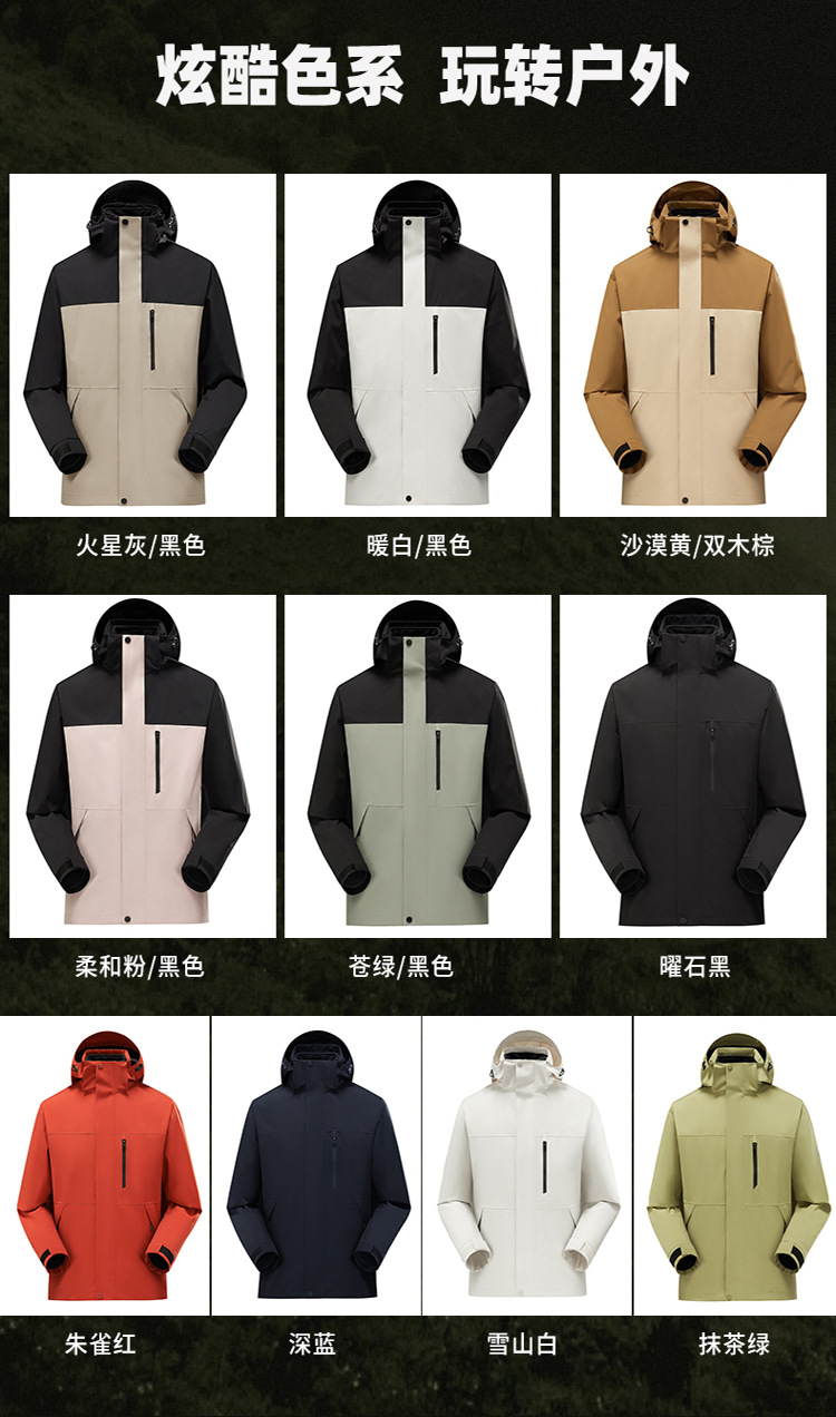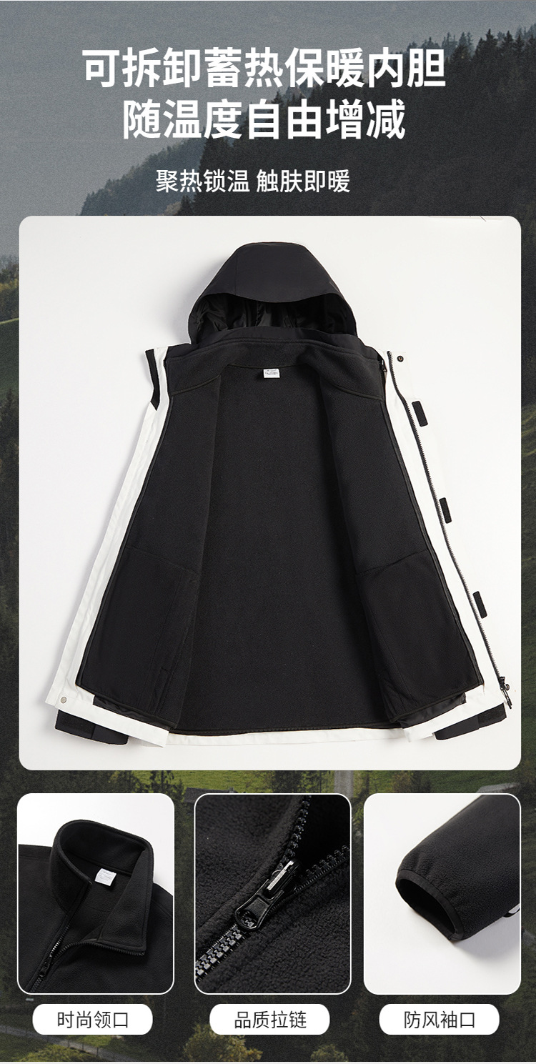 伯同風フルヒートシールアウトドアジャケット3in1、女性用取り外し可能防風防水、男性用登山服、ダウンジャケット
