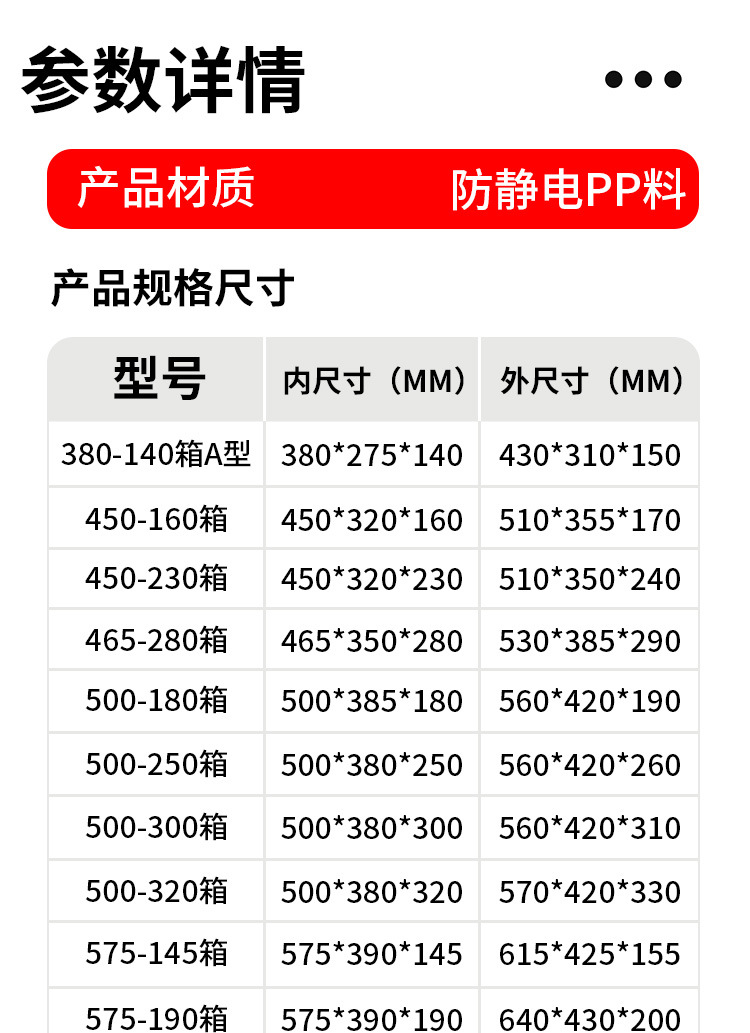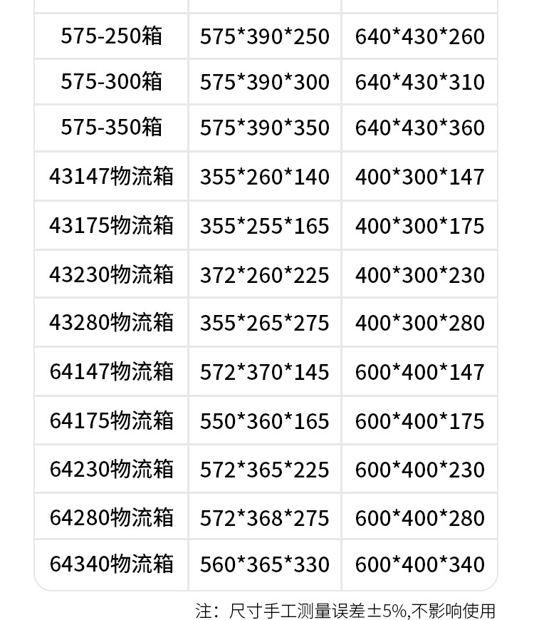500~250箱 560×420×260mm,500-180箱 560*420*190mm,575-190ボックス 640*430*200mm,575-250ボックス 640*430*260mm,575-300ボックス 640*430*310mm,575-350ボックス 640*430*360mm,450~230箱 510×350×240mm,500~300箱 560×420×310mm,465~280箱 530×385×290mm,500~320箱 570×420×330mm,380-140ボックスA 430*310*150mm,450-160ボックスB 510*355*170mm,575-145 ボックス 615*425*155mm,43230 ロジスティクスボックス 400*300*230mm,64147 物流ボックス 600*400*147mm,64280 物流ボックス 600*400*280mm,64175 物流ボックス 600*400*175mm,64230 物流ボックス 600*400*230mm,64340 物流ボックス 600*400*340mm,43175 物流ボックス 400*300*175mm,43280 物流ボックス 400*300*280mm,43147 ロジスティクスボックス 400*300*147mm