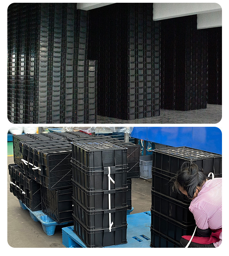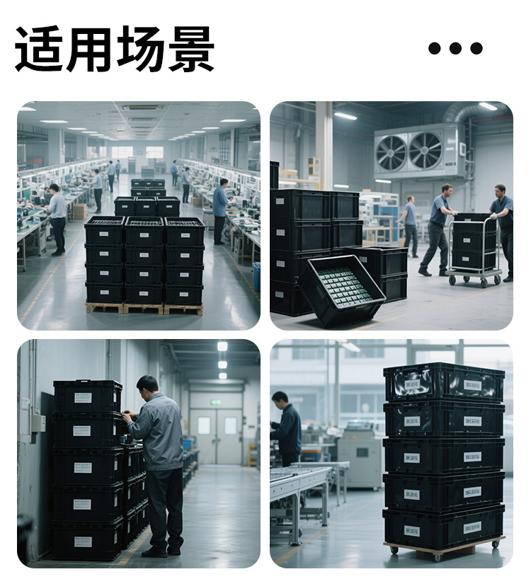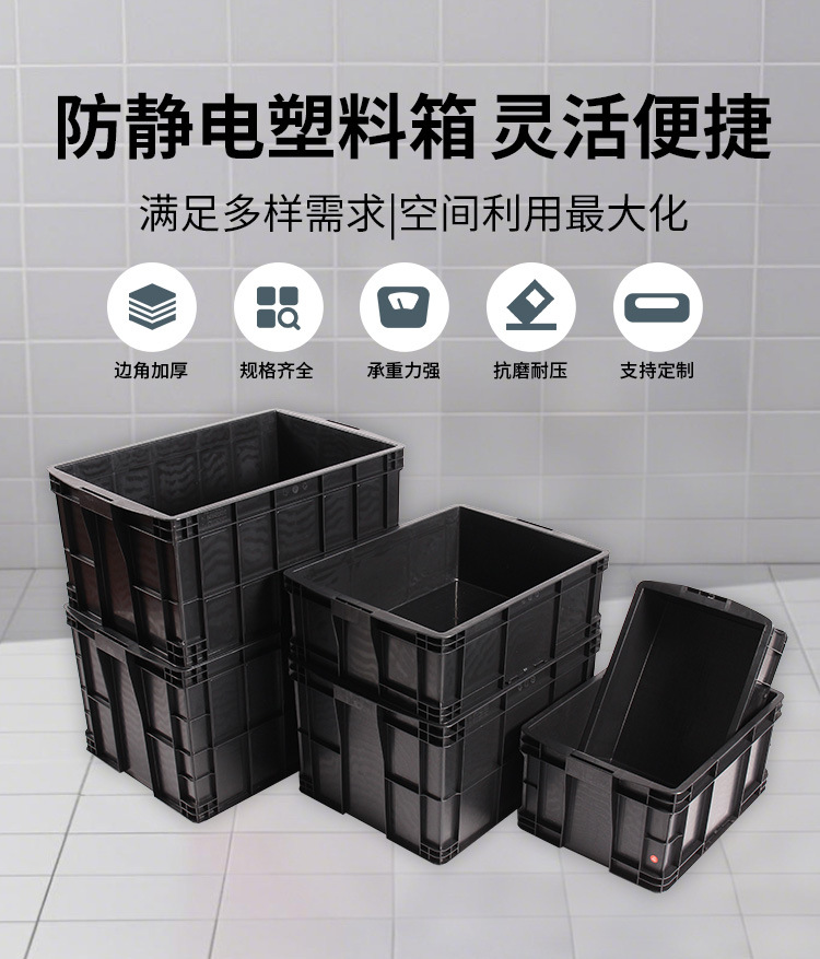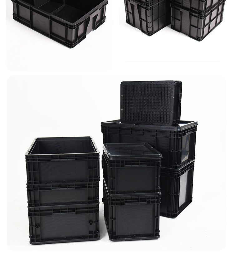 中型カード帯電防止ターンオーバーボックス電子部品黒色材料ボックスは蓋付きEU物流ボックス非導電性プラスチックフレーム