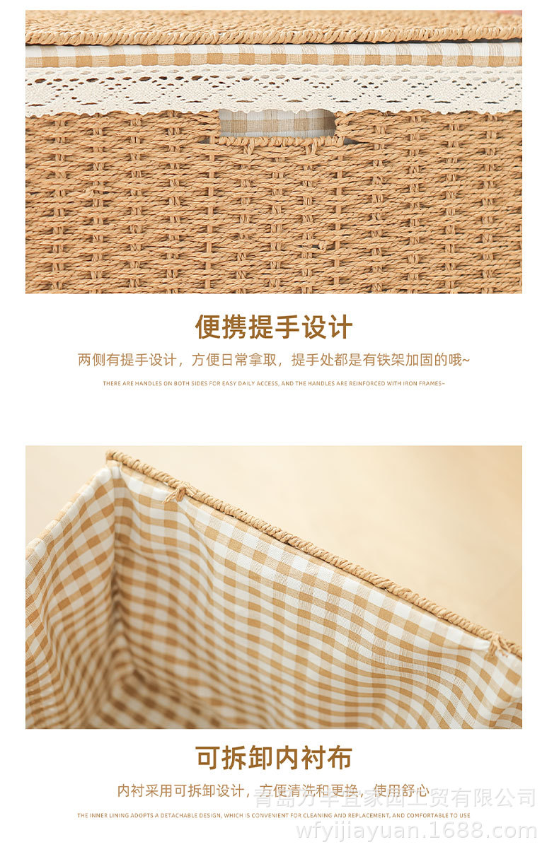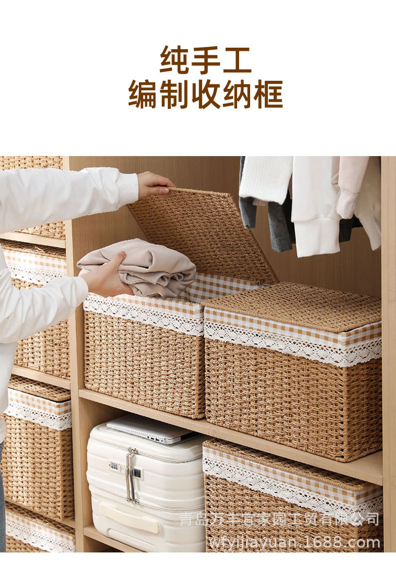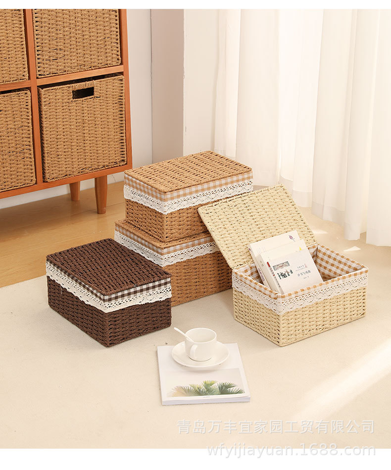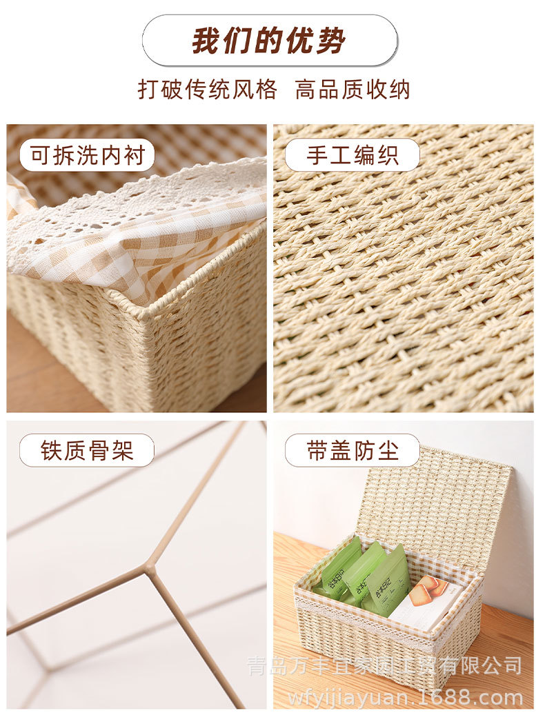 和風収納ボックス家庭用模造籐織物収納バスケットおもちゃスナック衣類雑貨ボックス整理収納ボックス蓋付き