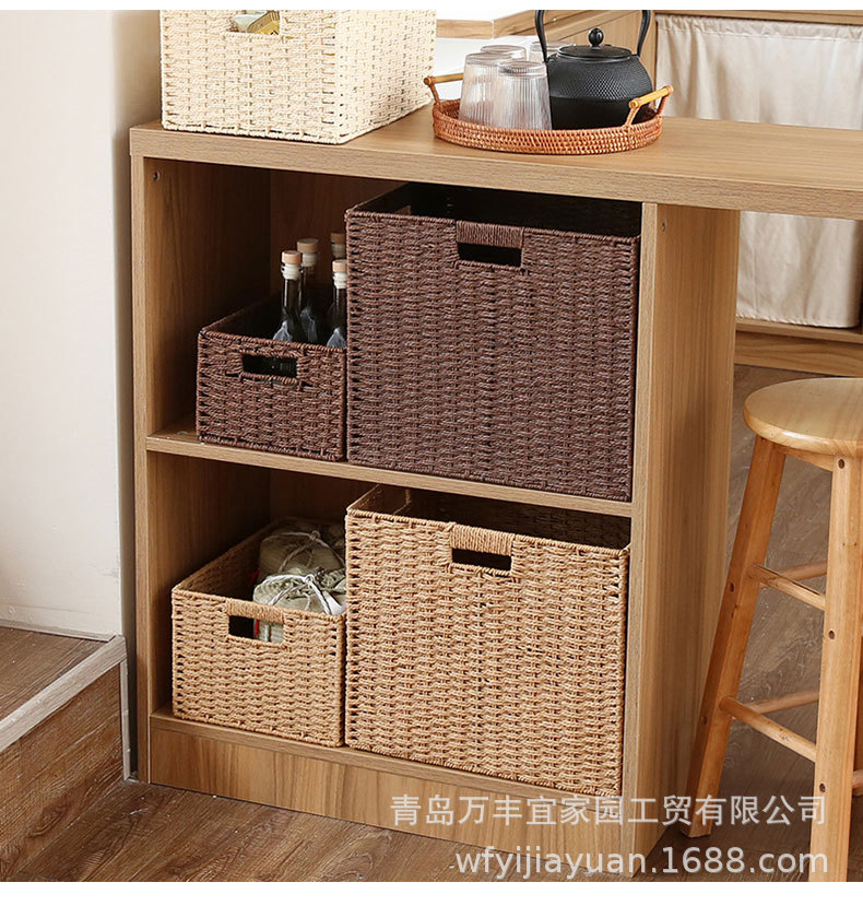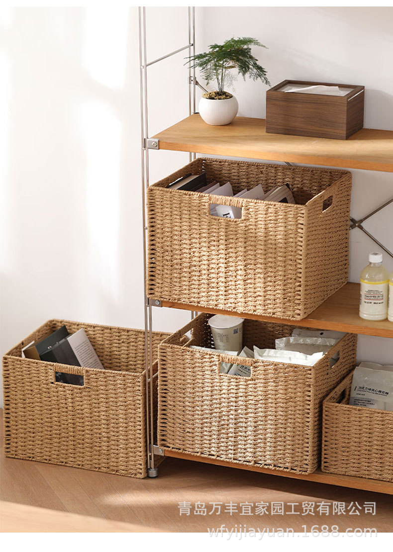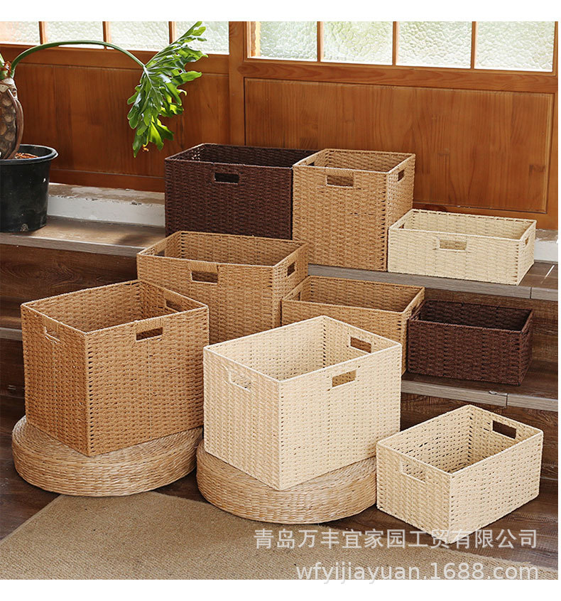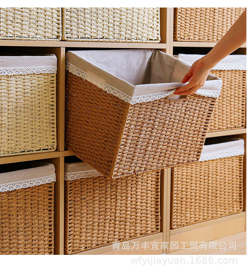和風収納ボックス家庭用模造籐織物収納バスケットおもちゃスナック衣類雑貨ボックス整理収納ボックス蓋付き