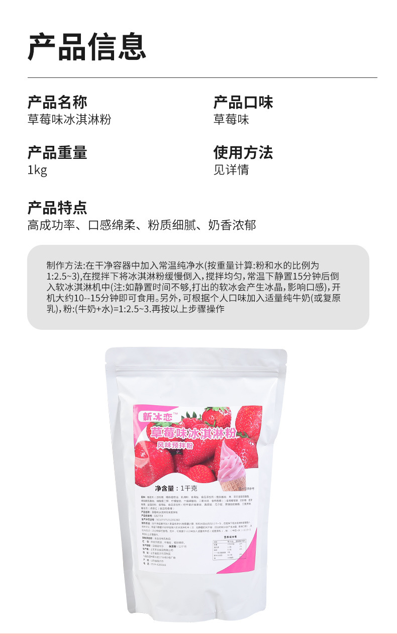 ストロベリー風味のアイスクリームパウダー 1.0kg