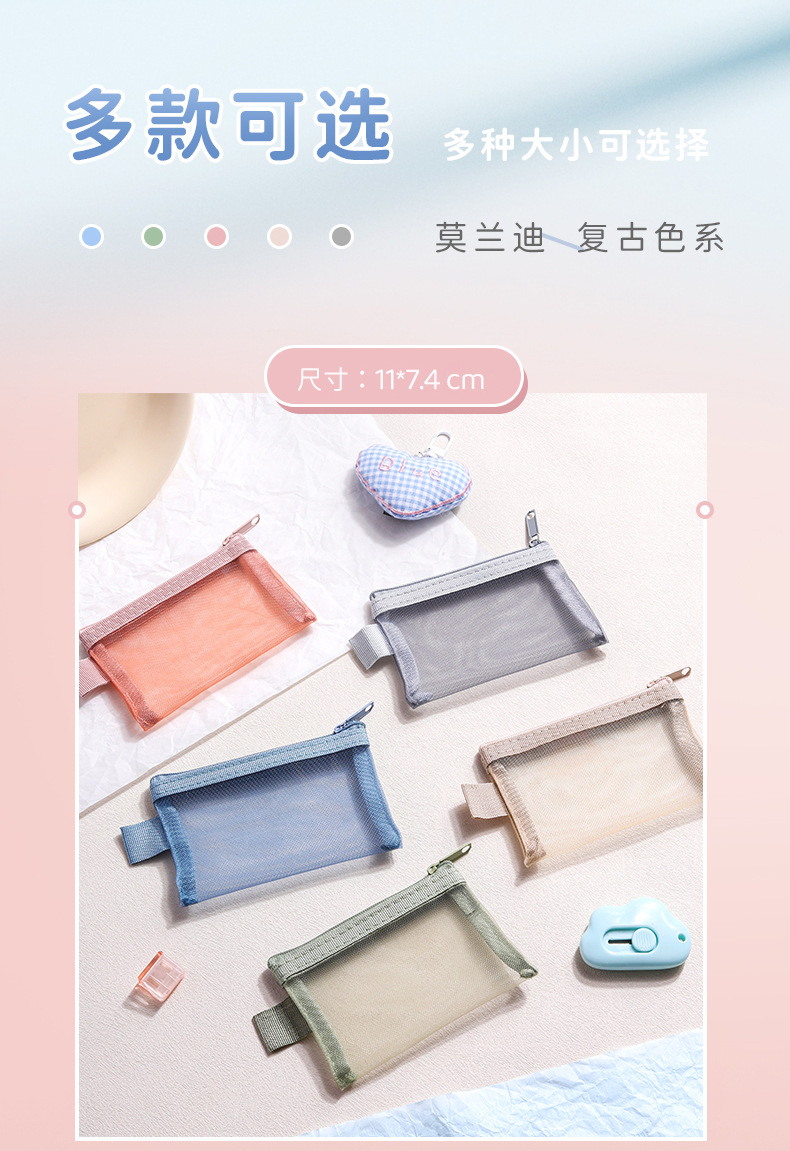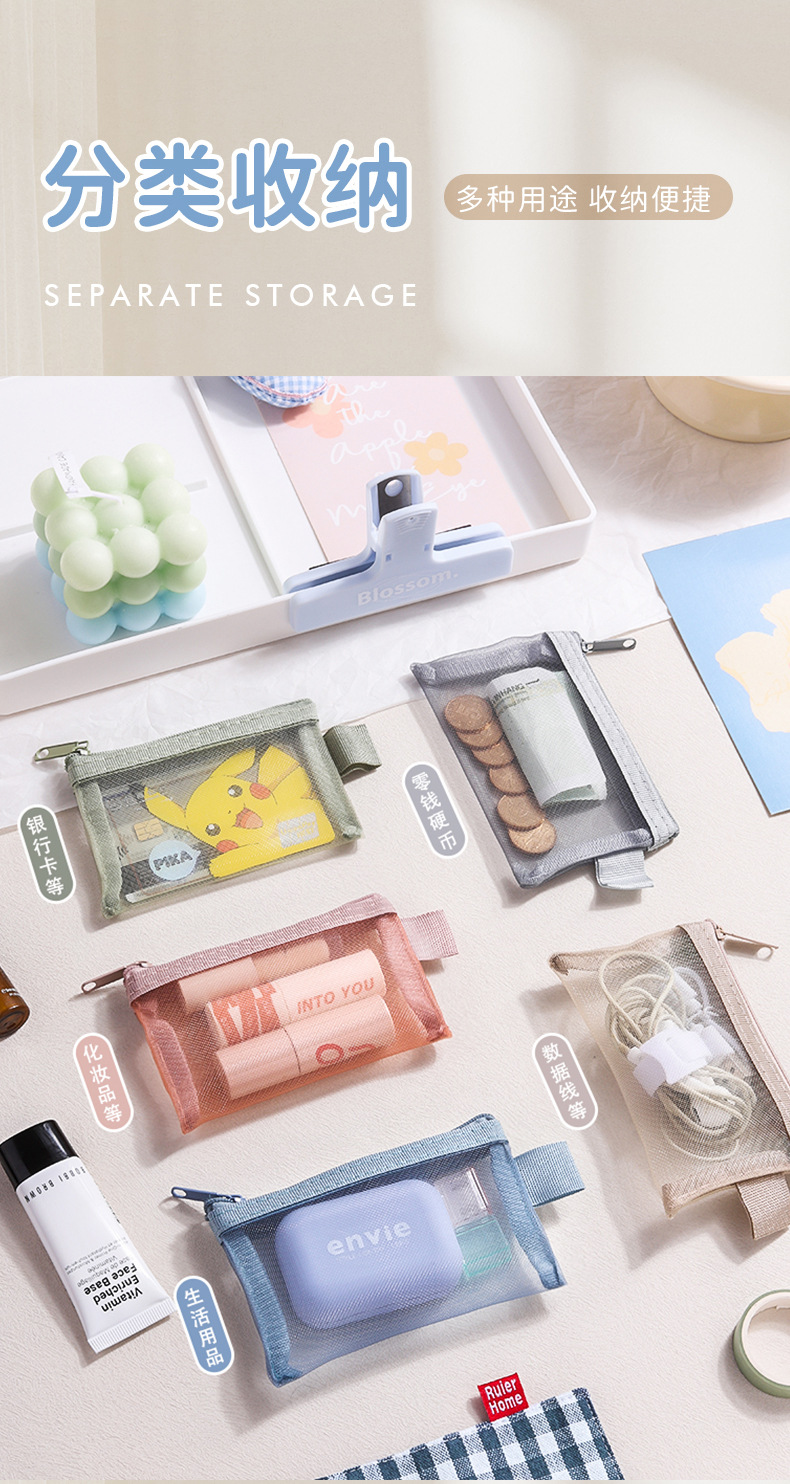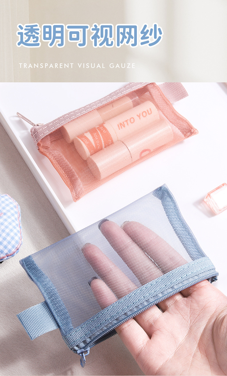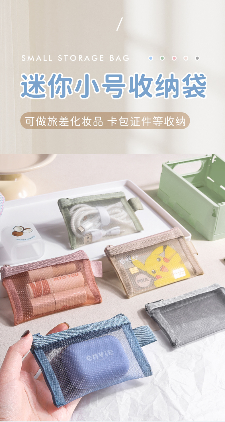ナイロンメッシュカード収納袋ヘッドフォンキーコインバッグカードバッグ軽量透明ジッパーポータブル銀行カードメッシュバッグ