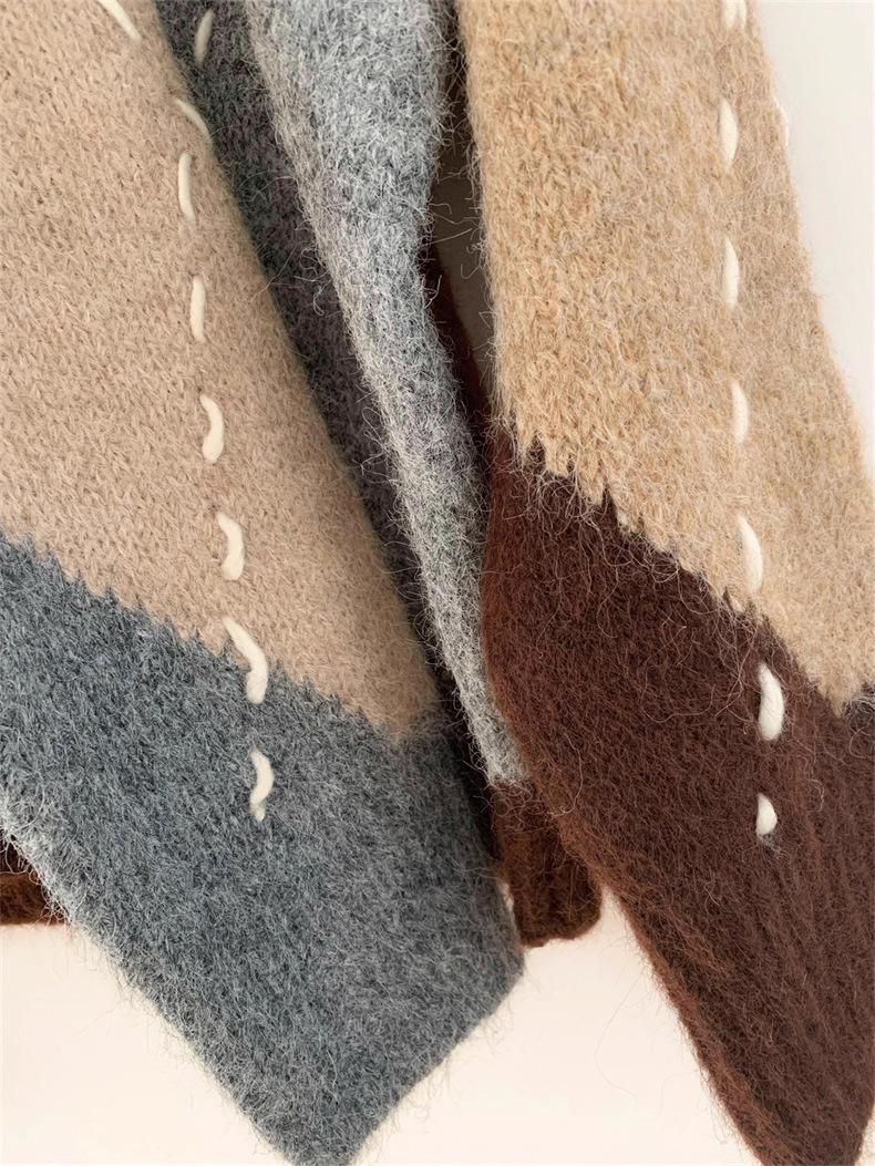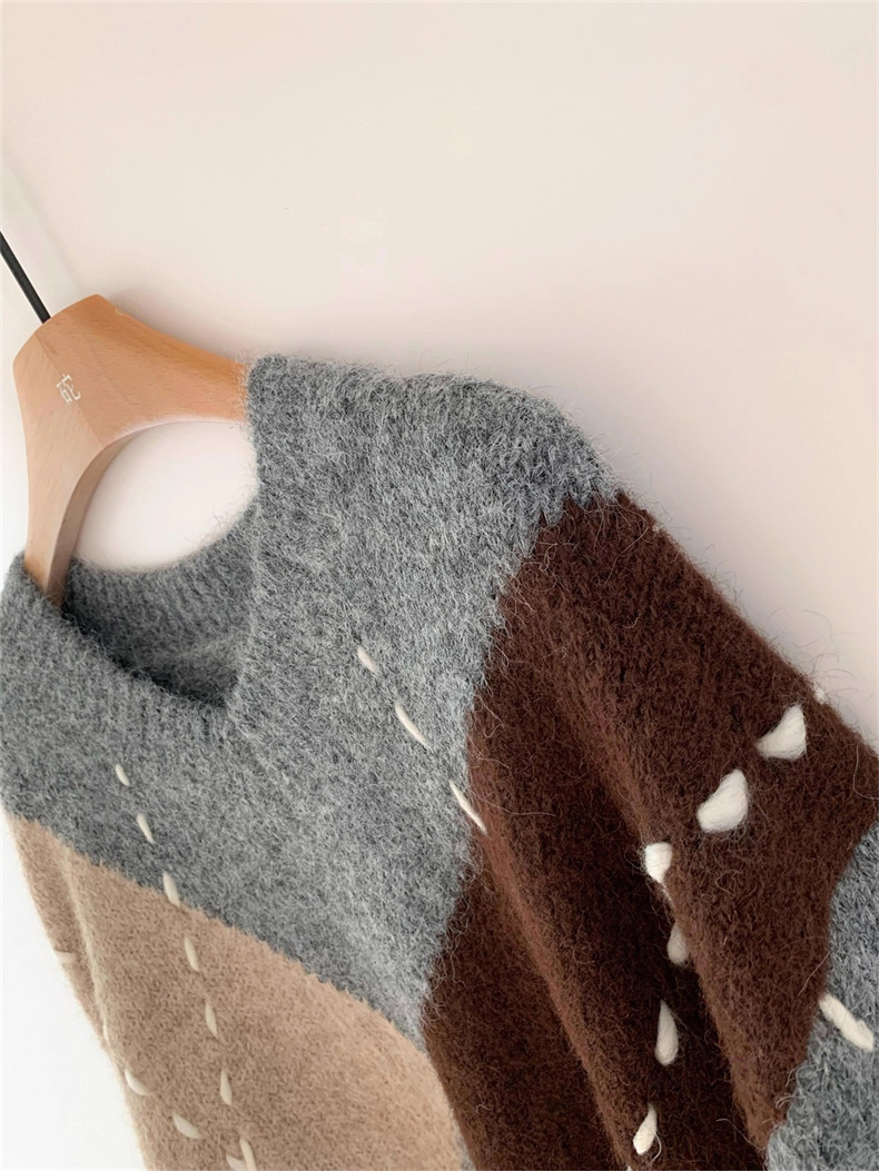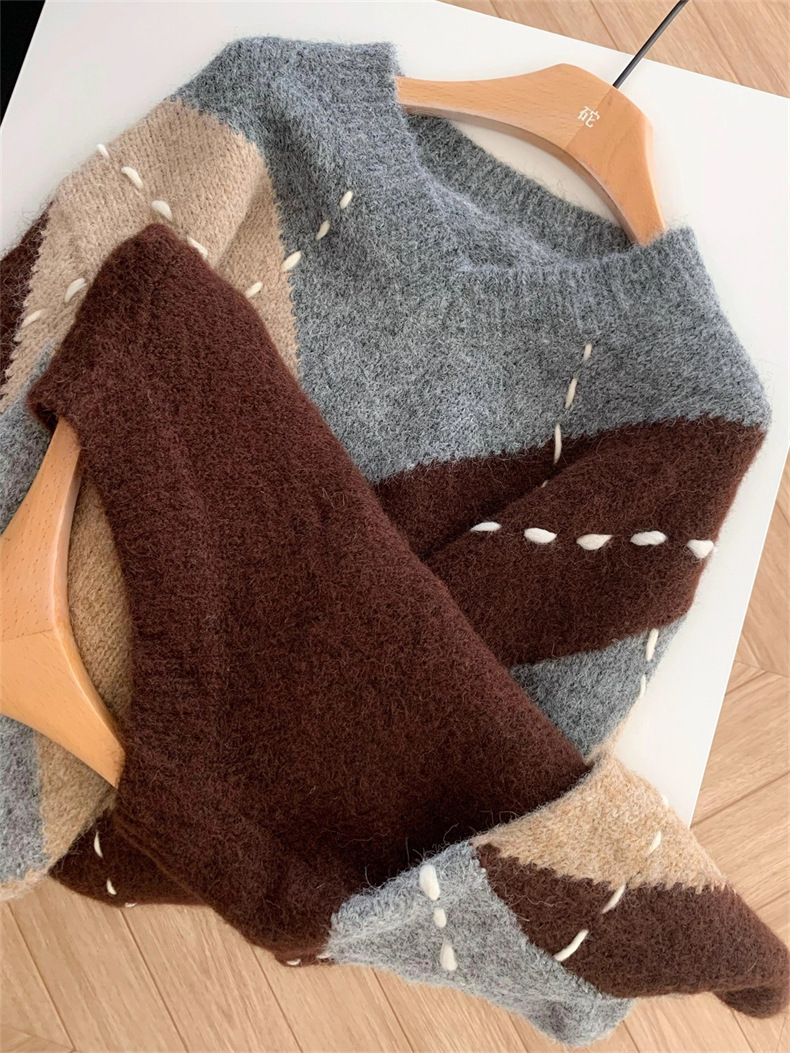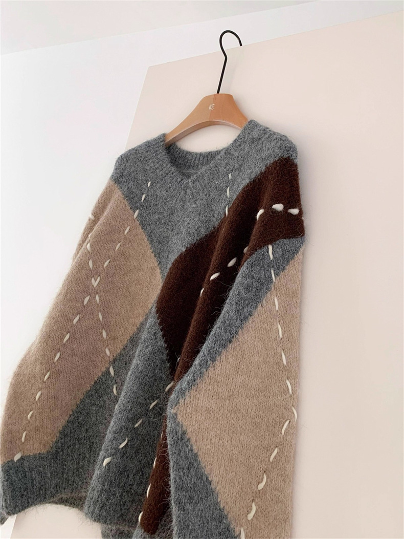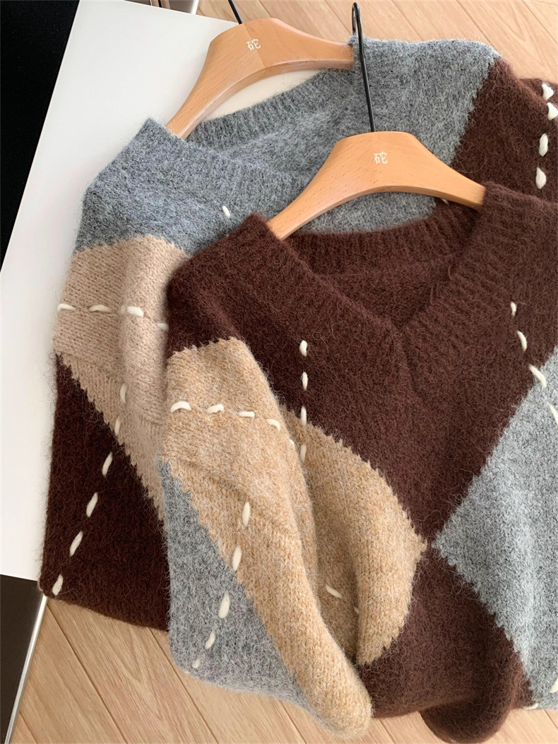 2025 秋冬新韓国レトロ菱形セーター女性のメイラード明線デザインプルオーバー V ネックニットトップ