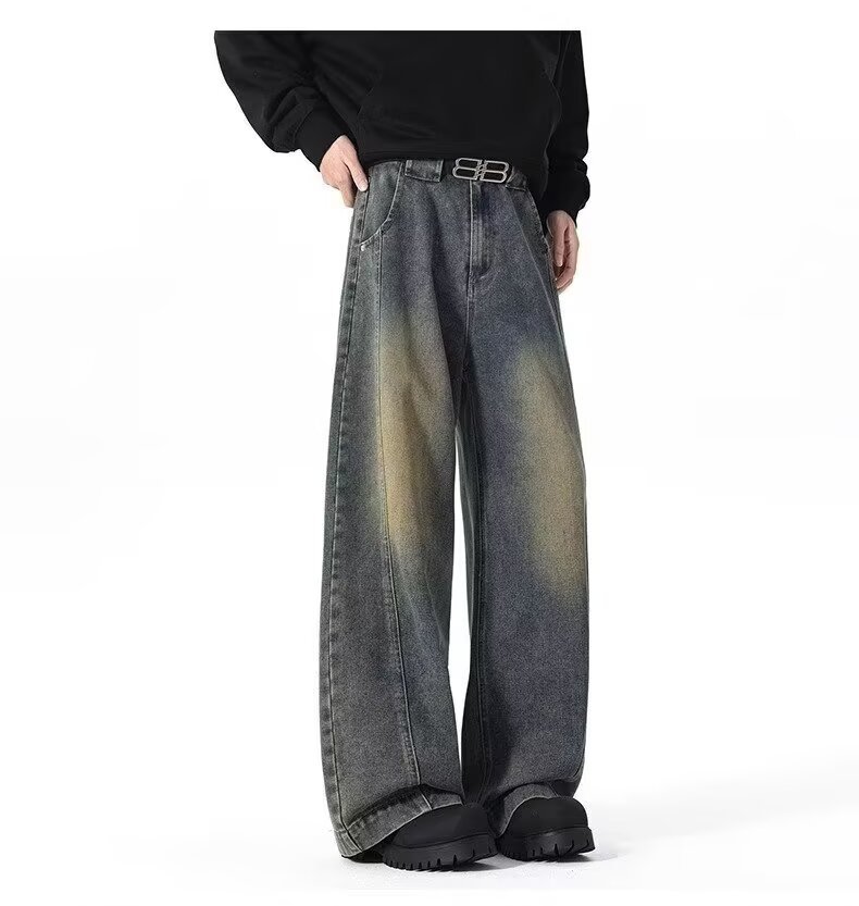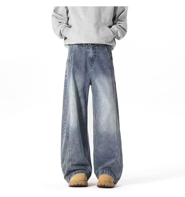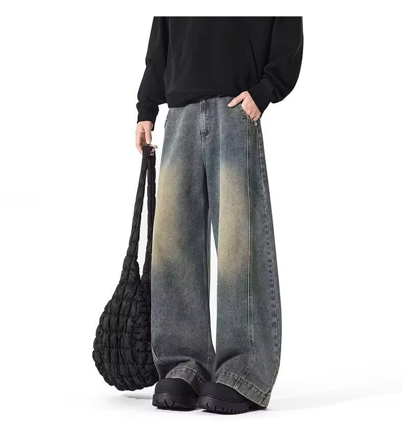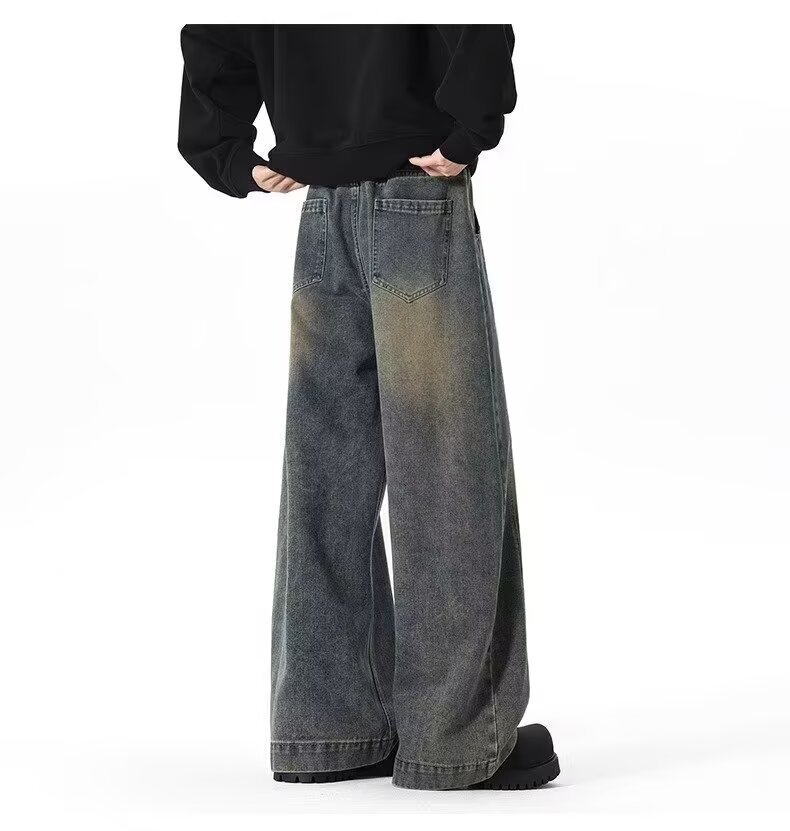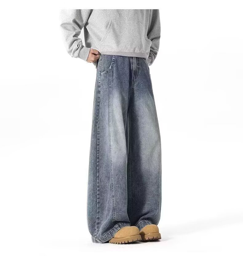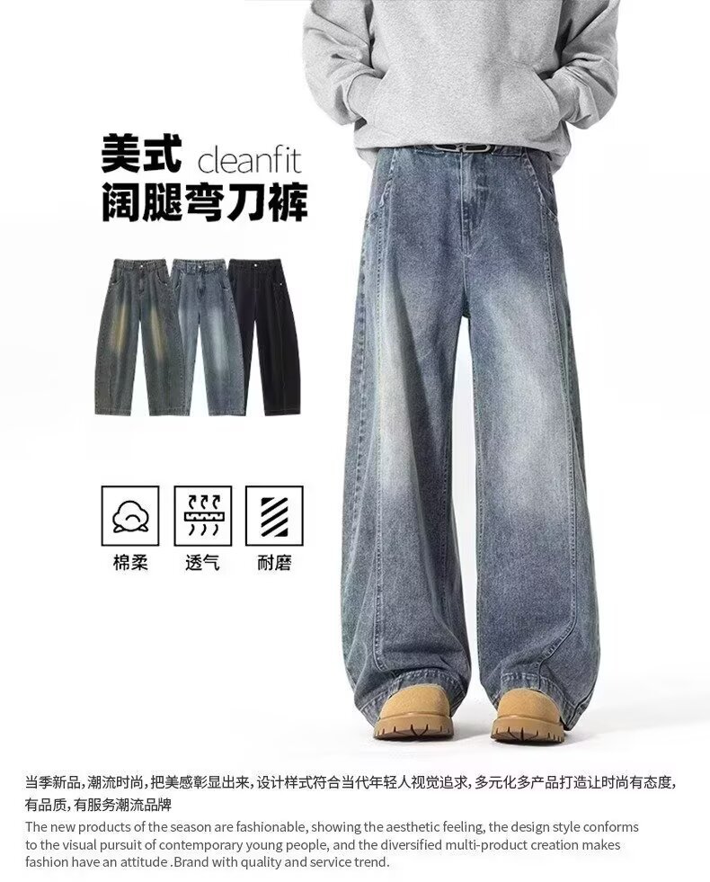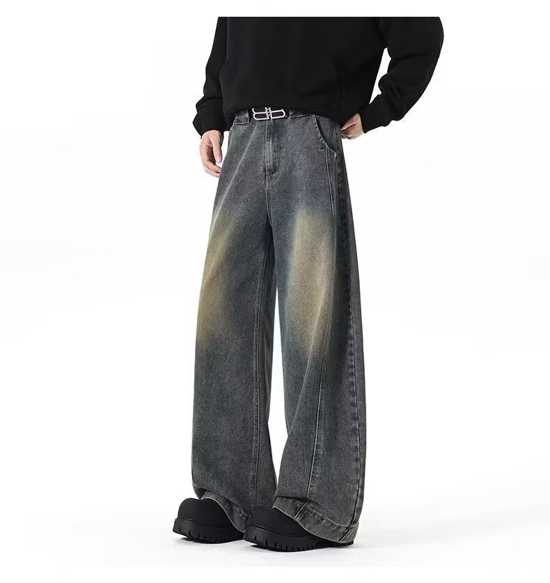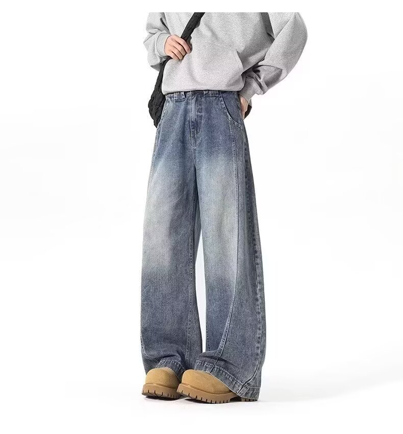 アメリカンワイドレッグシミタージーンズメンズパンツストレートレッグルーズフロアモップパンツメンズトレンディカジュアルワイドレッグシミターパンツ