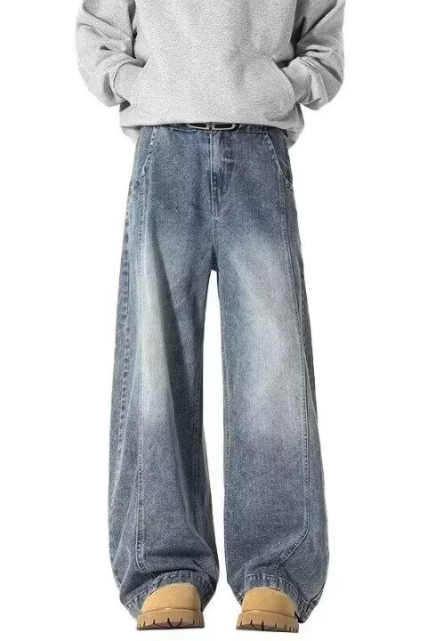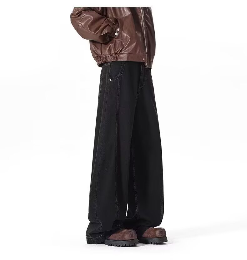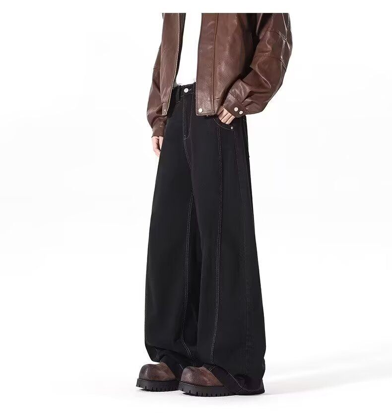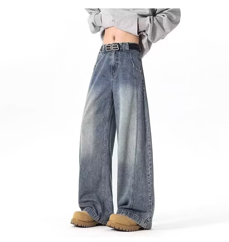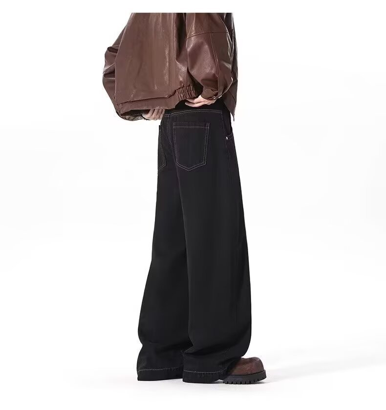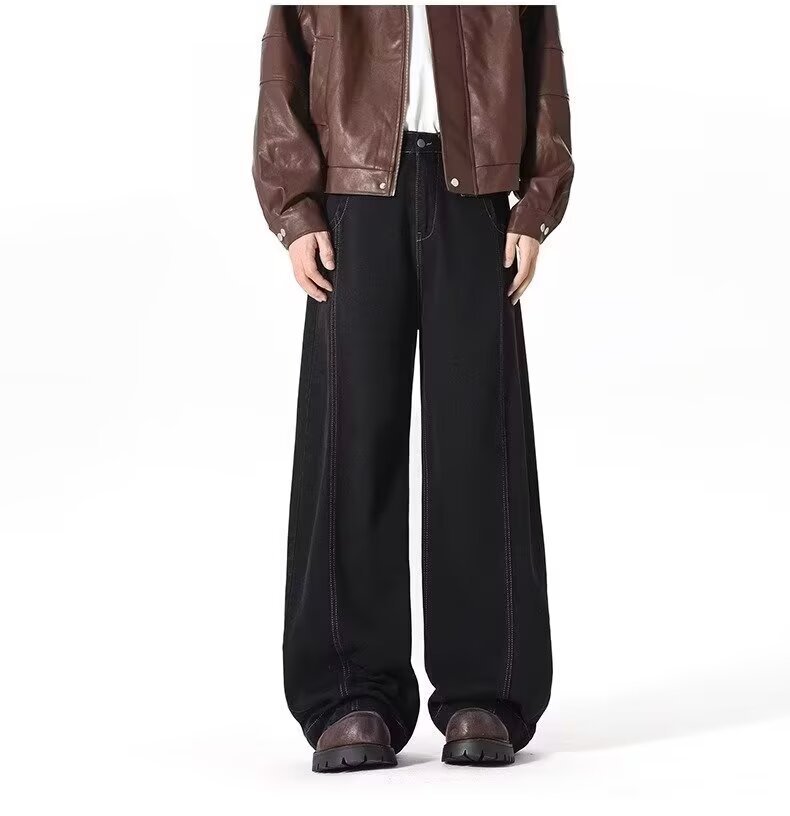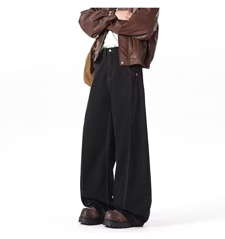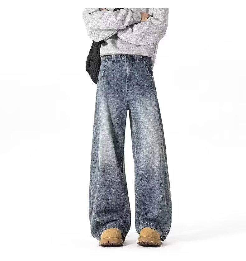アメリカンワイドレッグシミタージーンズメンズパンツストレートレッグルーズフロアモップパンツメンズトレンディカジュアルワイドレッグシミターパンツ