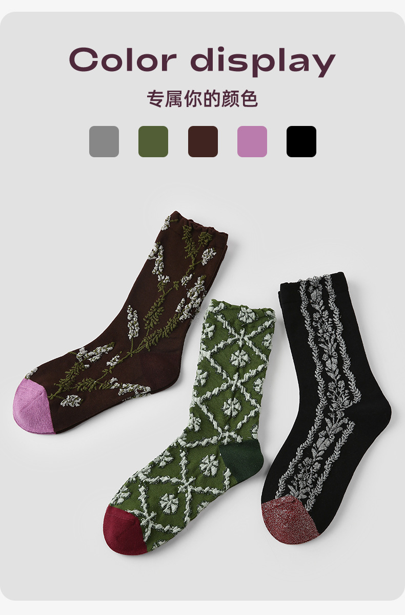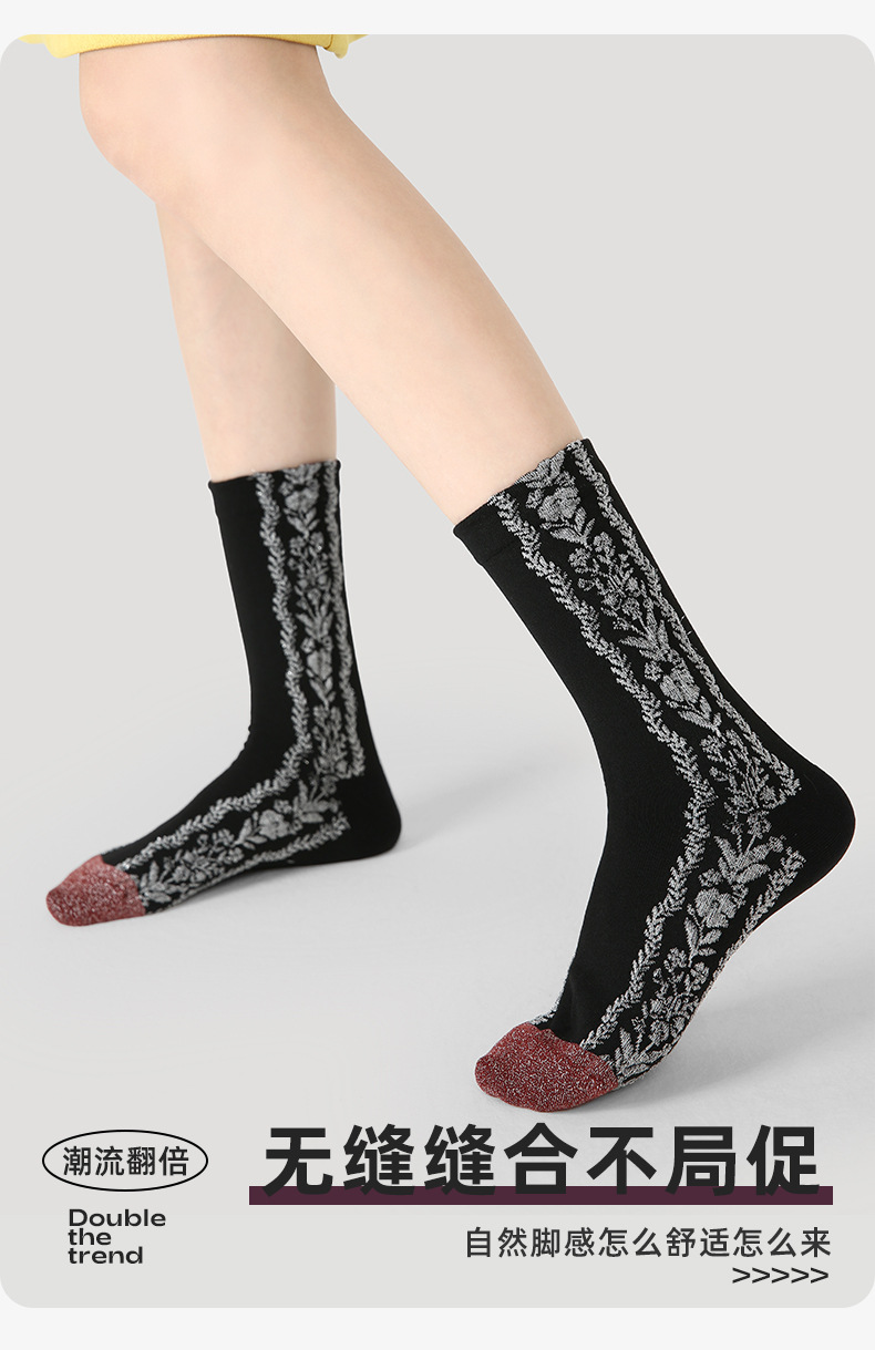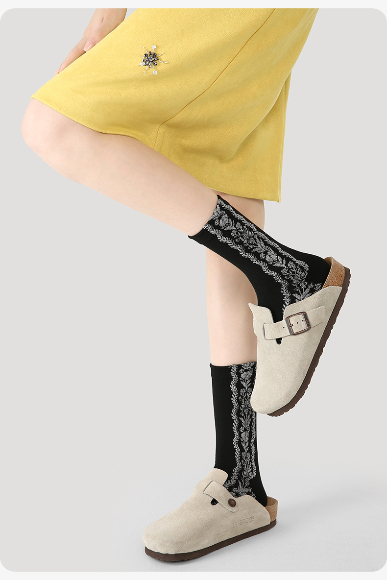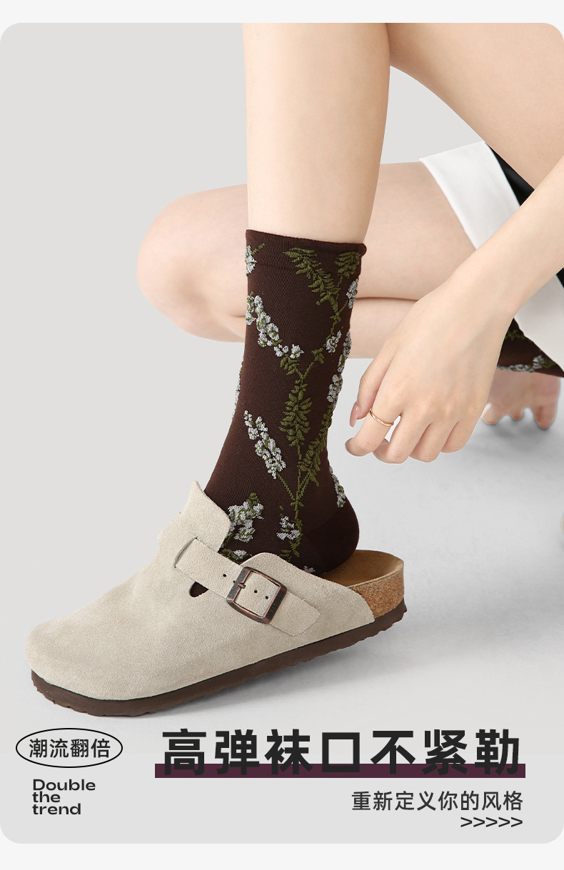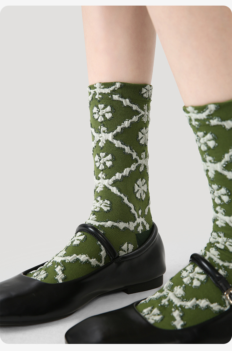 ルネッサンス新中国風秋 2025 新しいチェック柄花柄ミッドカーフソックス ins 文学ファッション女性の靴下