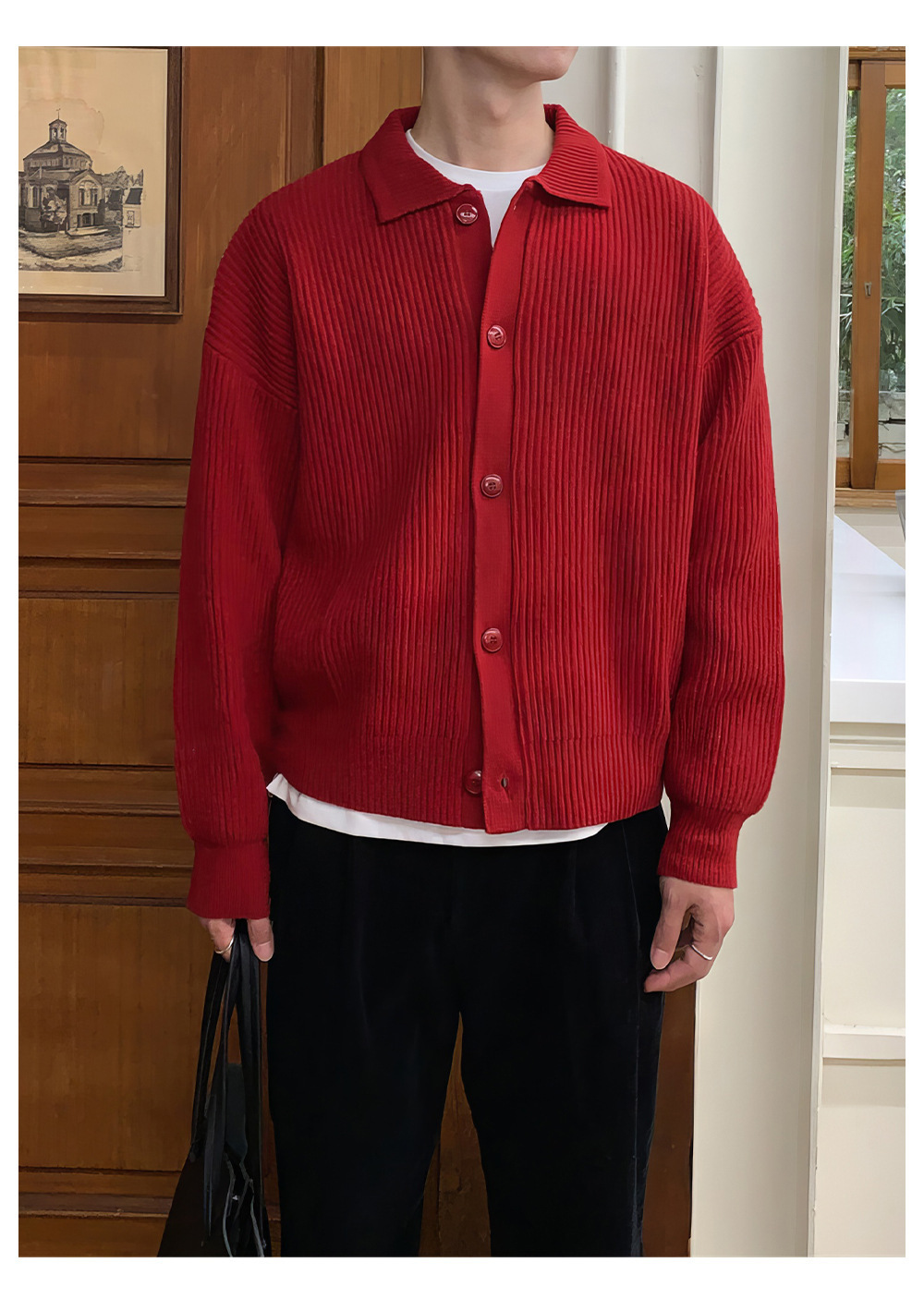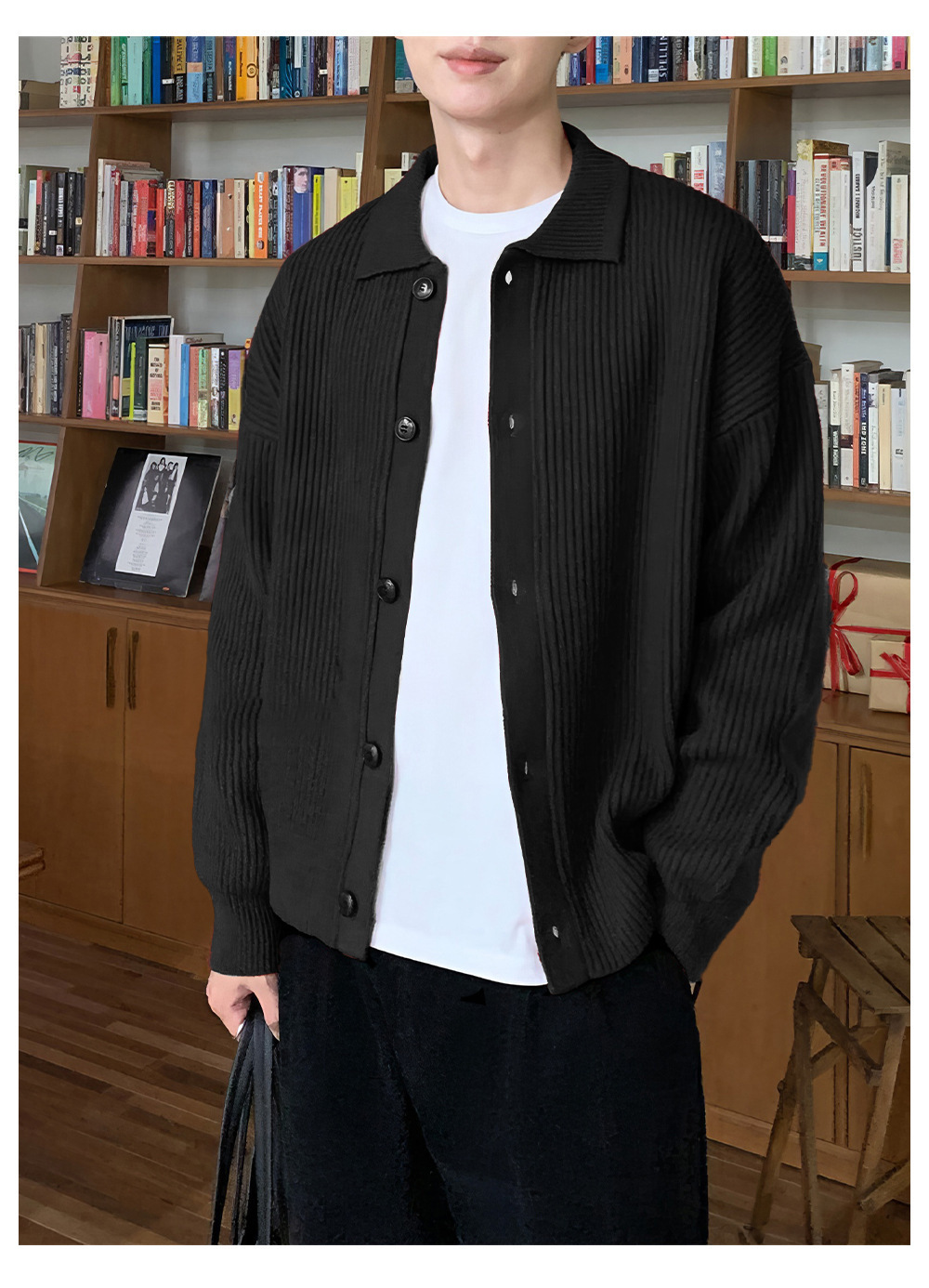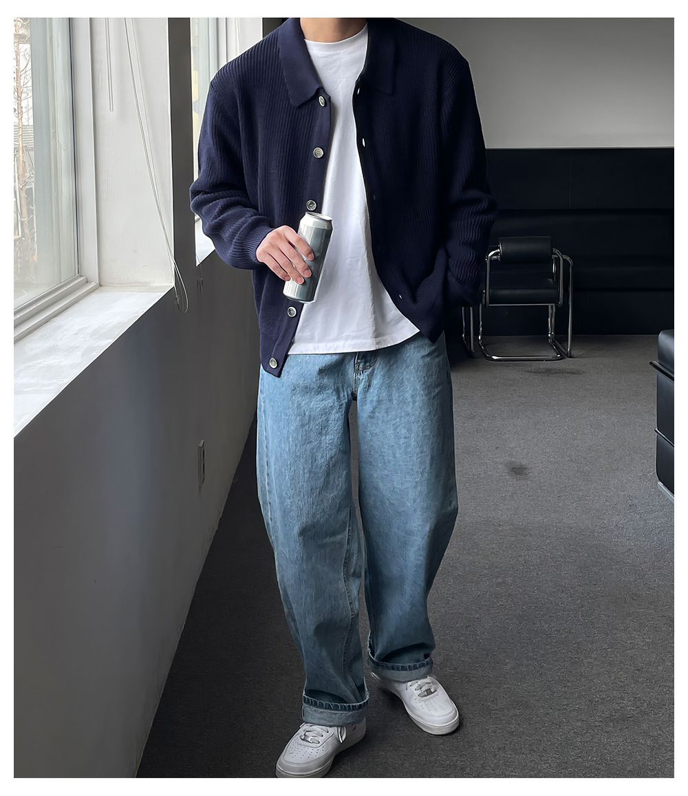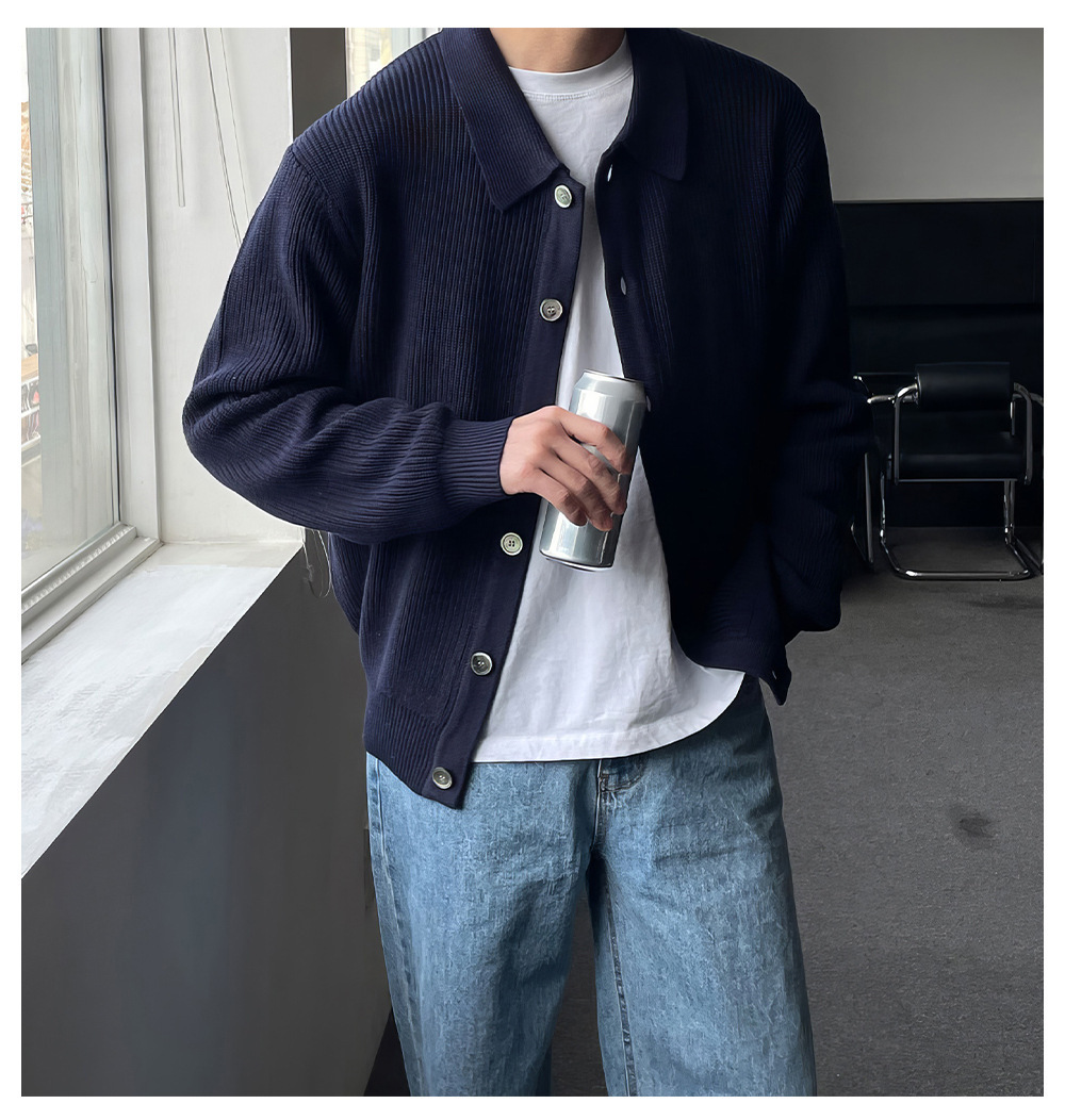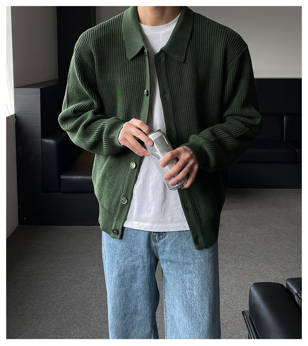 クラシックラペルカーディガンメンズニットセータールーズ韓国スタイルトレンディな多用途セータージャケットトップダブルブレストカーディガン