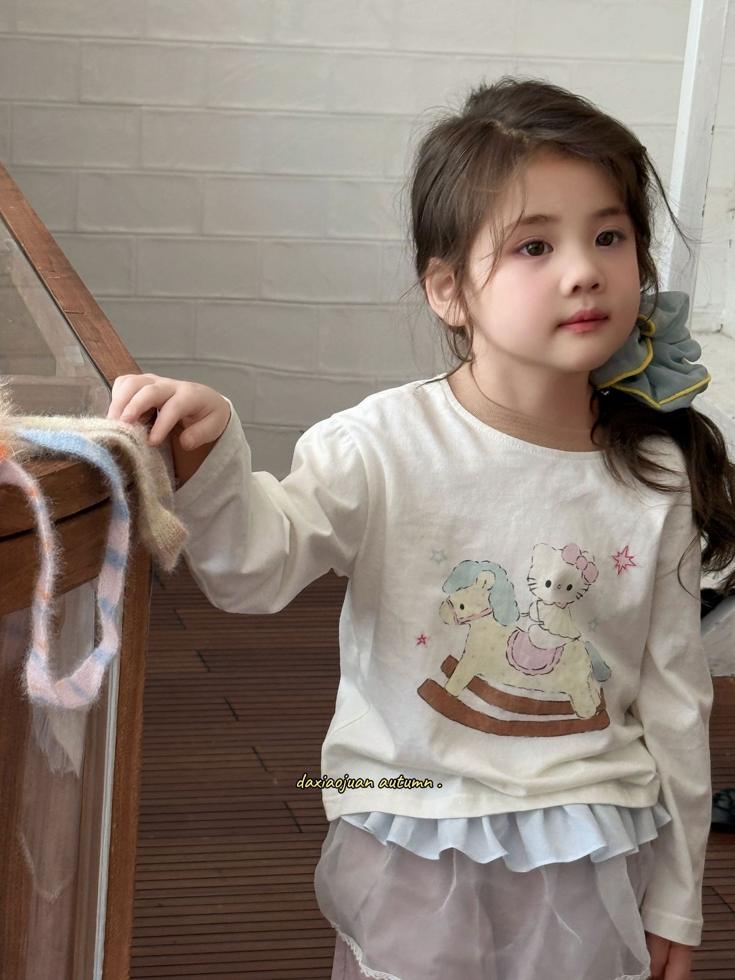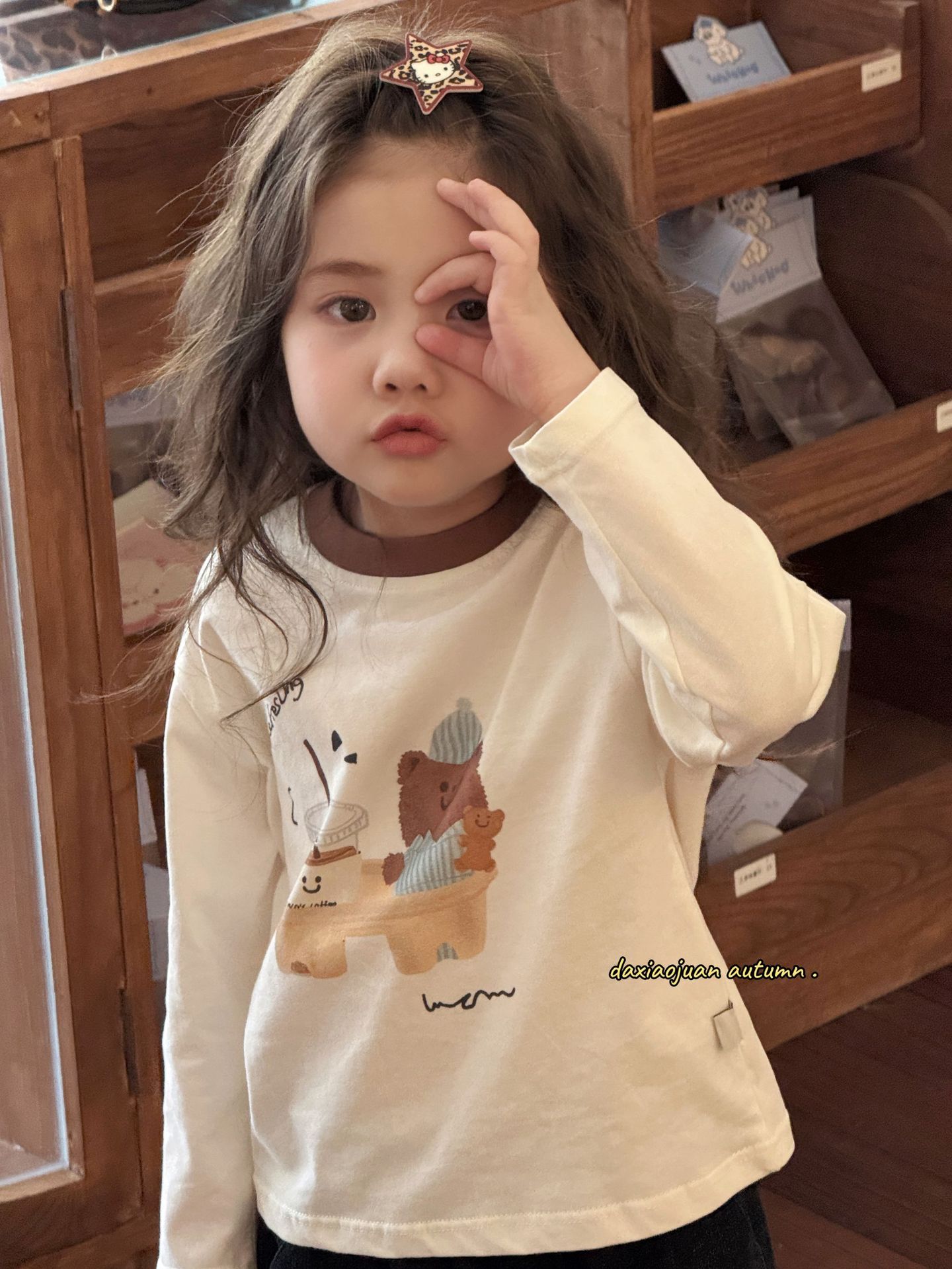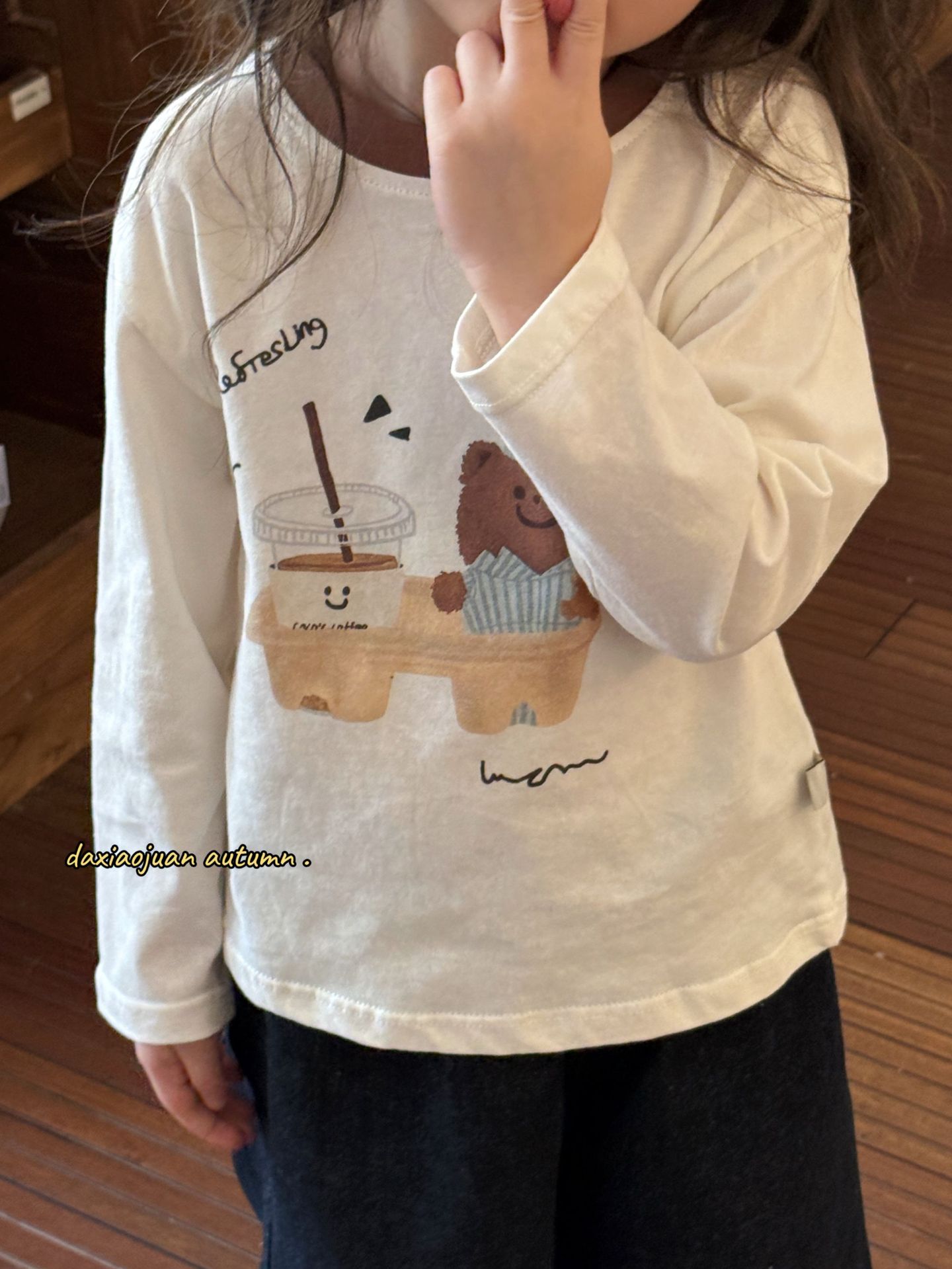 大小ロール子供プリント長袖Tシャツ2025春新作女の子かわいいプリントおしゃれルーズトップ