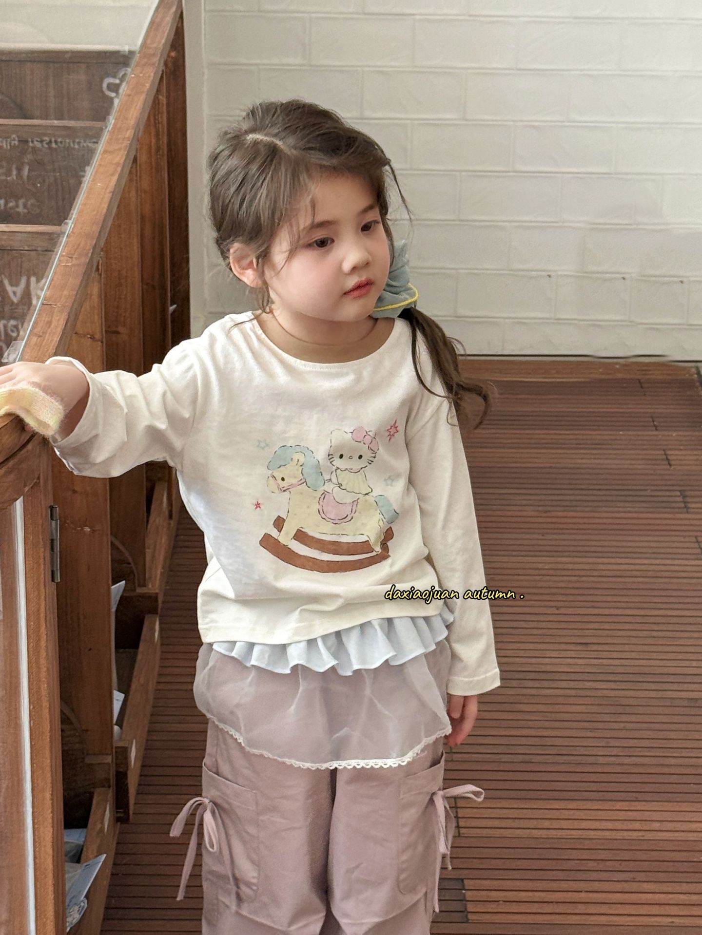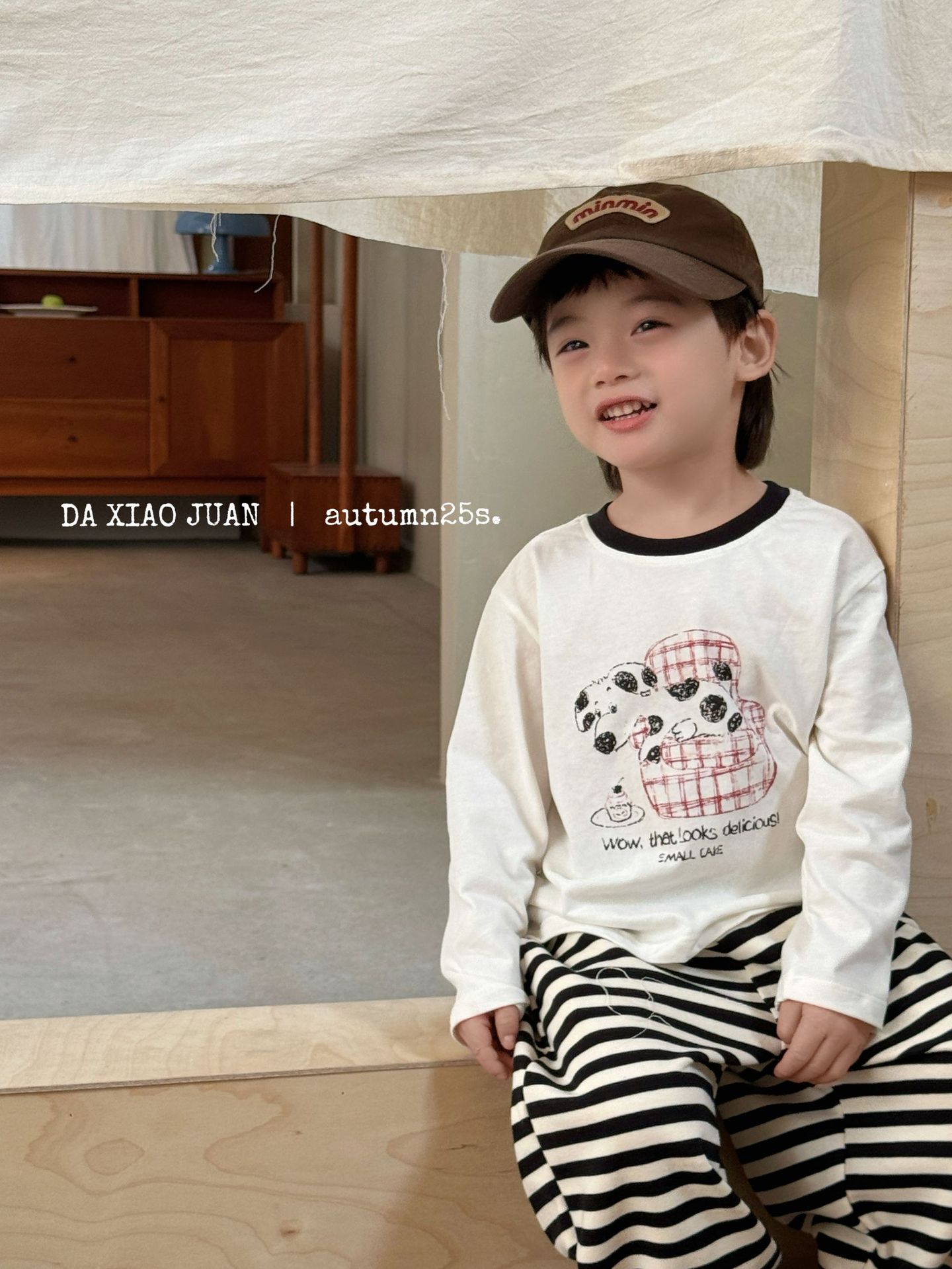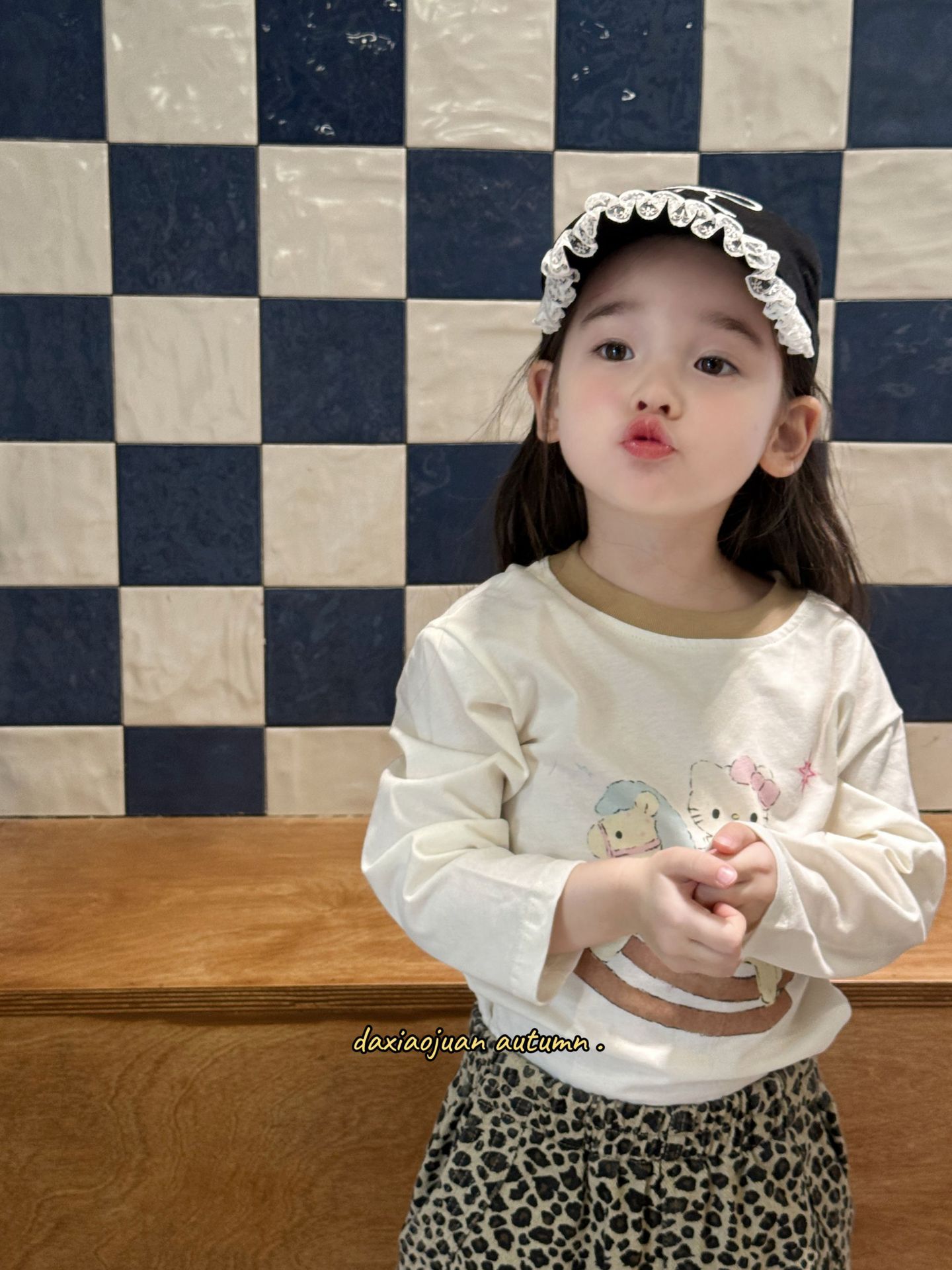 大小ロール子供プリント長袖Tシャツ2025春新作女の子かわいいプリントおしゃれルーズトップ