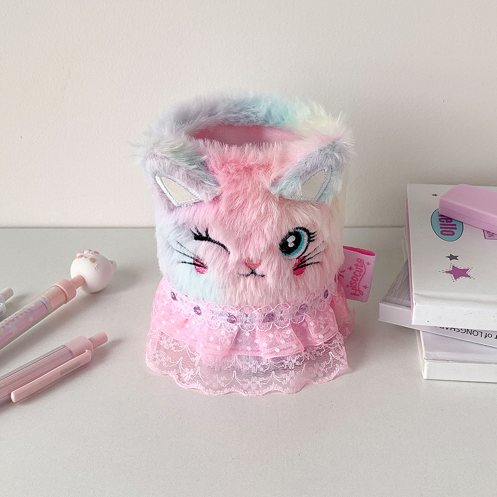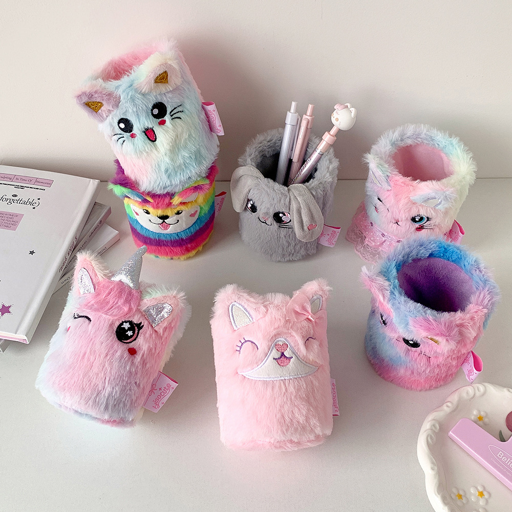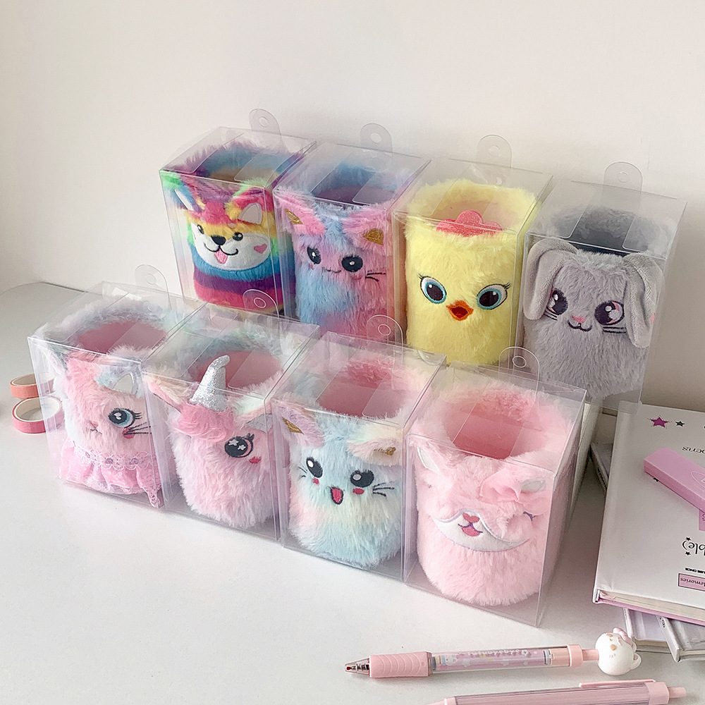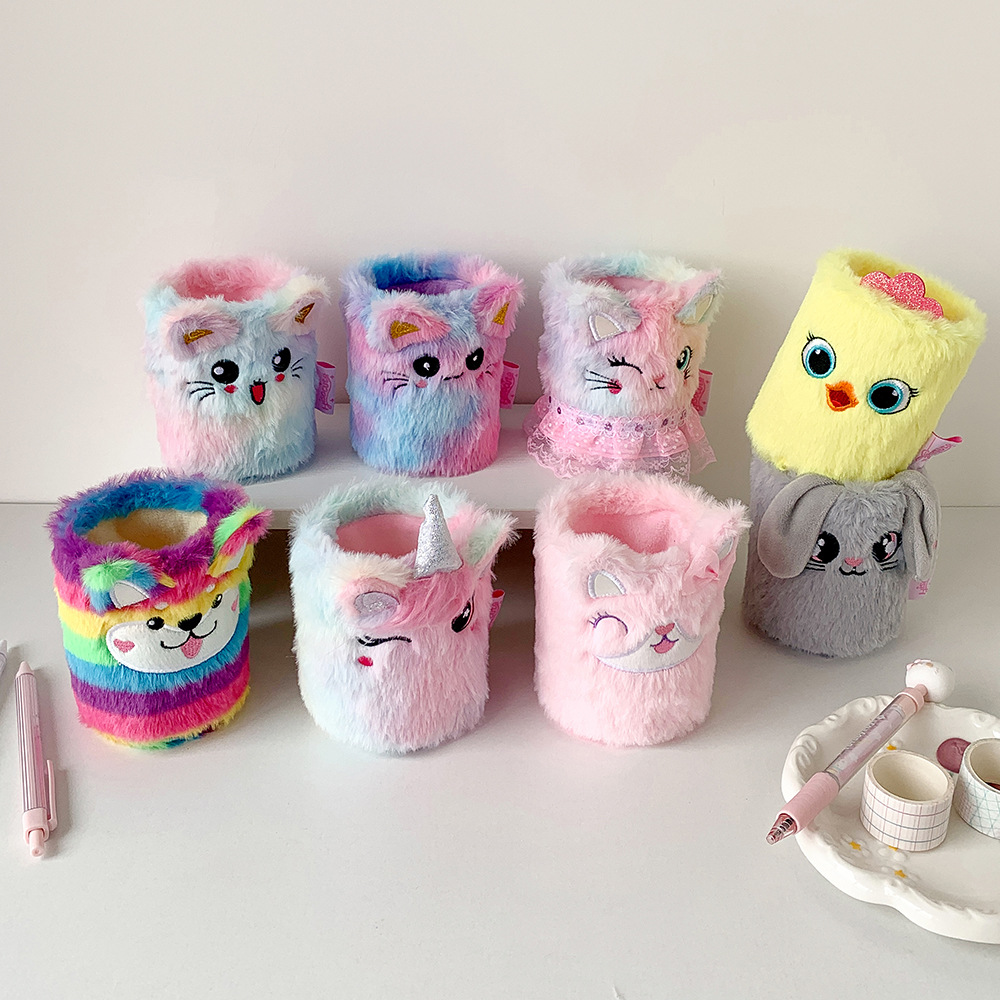 かわいい漫画ぬいぐるみペンホルダー学生クリエイティブデスクトップ文具収納ボックス diy 素材はさみ収納バケツの装飾品