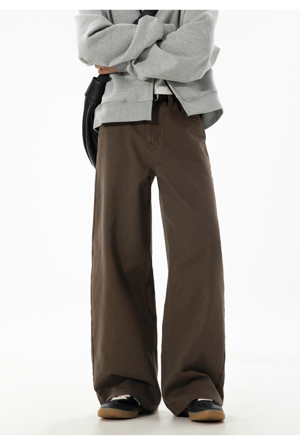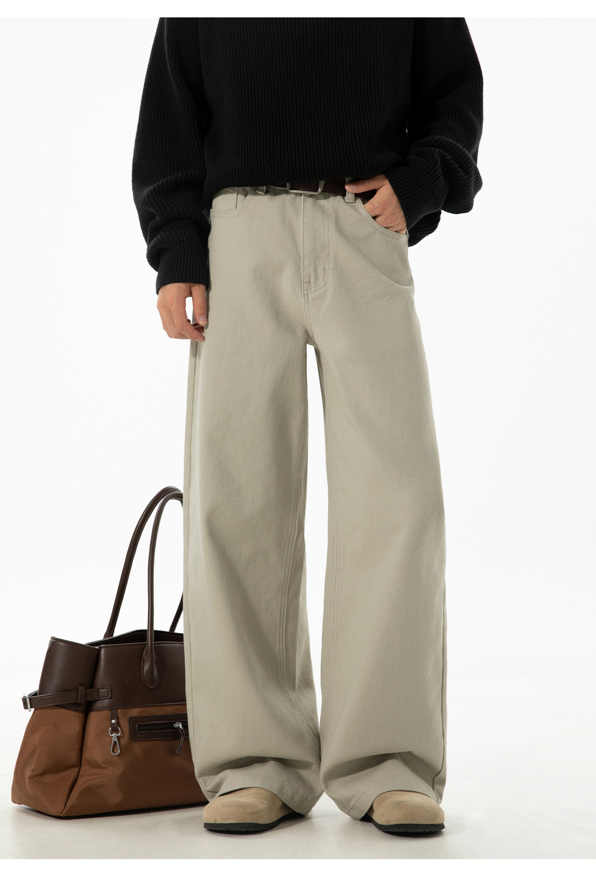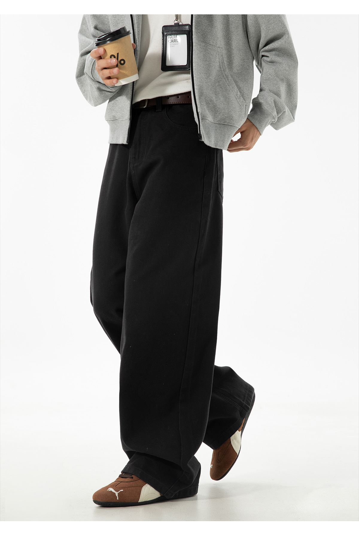 秋の新作テクスチャードピュアコットン半伸縮性トレンディブランドレトロロングパンツメンズツイルマイクロワイドルーズストレートカジュアルパンツ