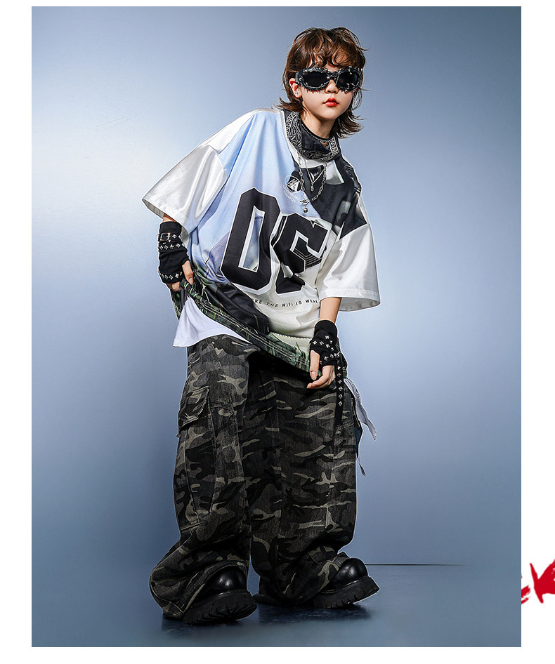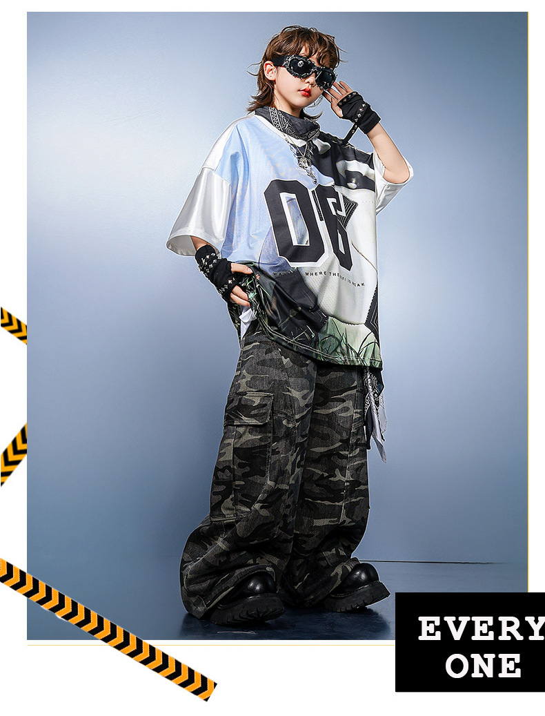 男の子ヒップホップ流行服子供ヒップホップジャージ女の子クールでハンサムな半袖スーツ子供ヒップホップヒップホップパフォーマンス服