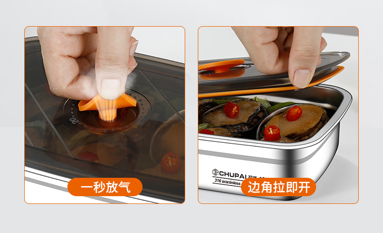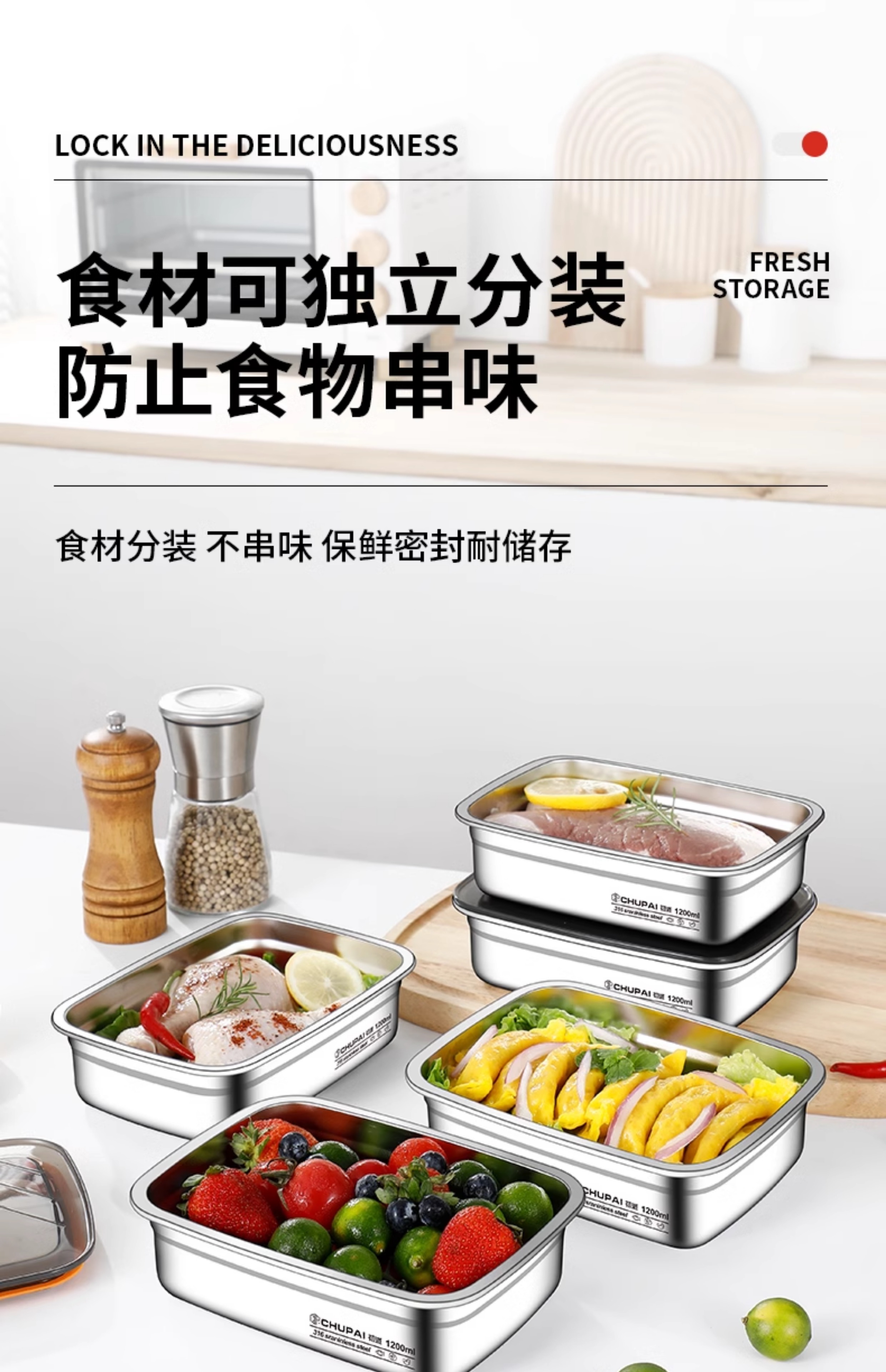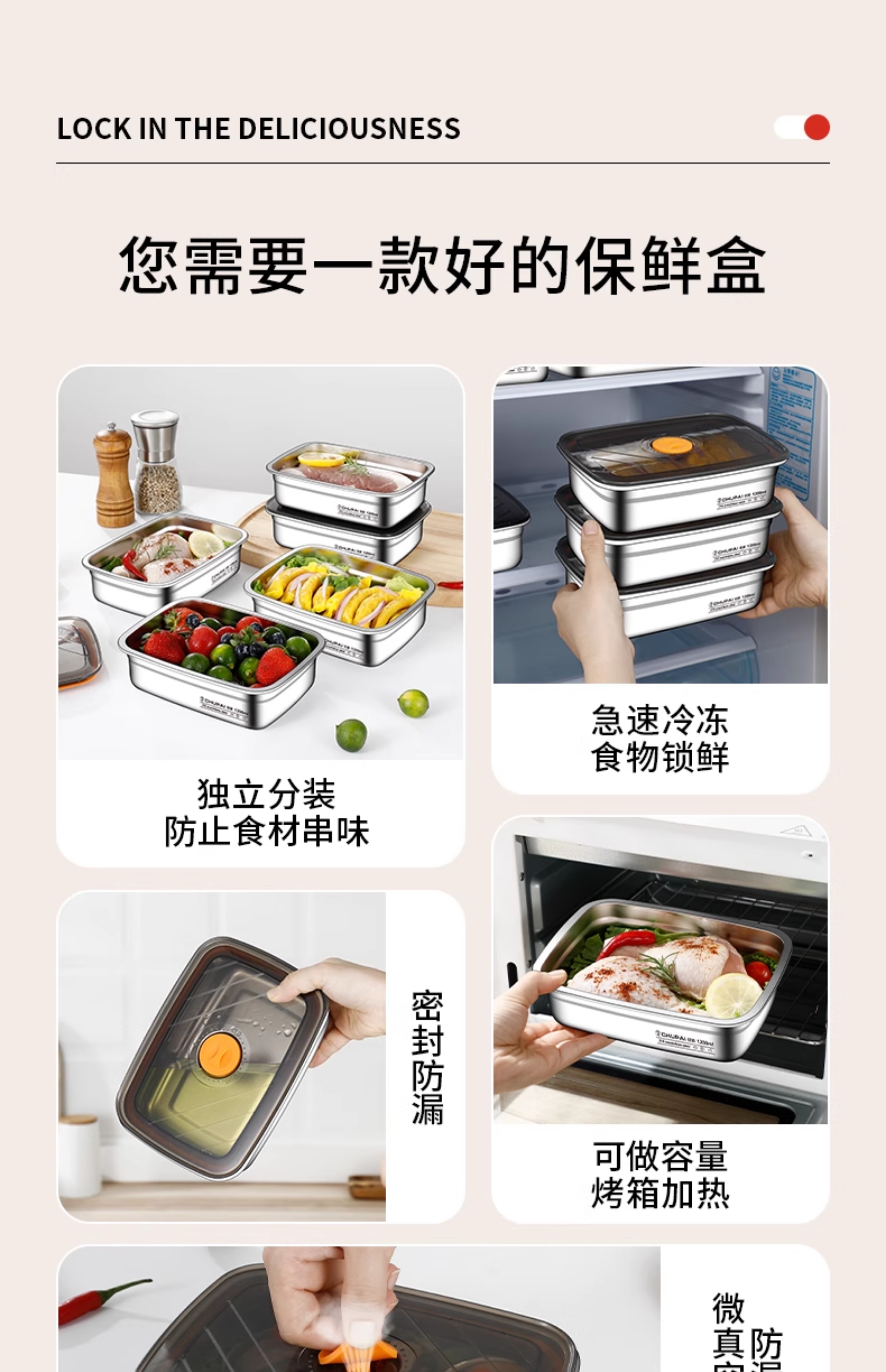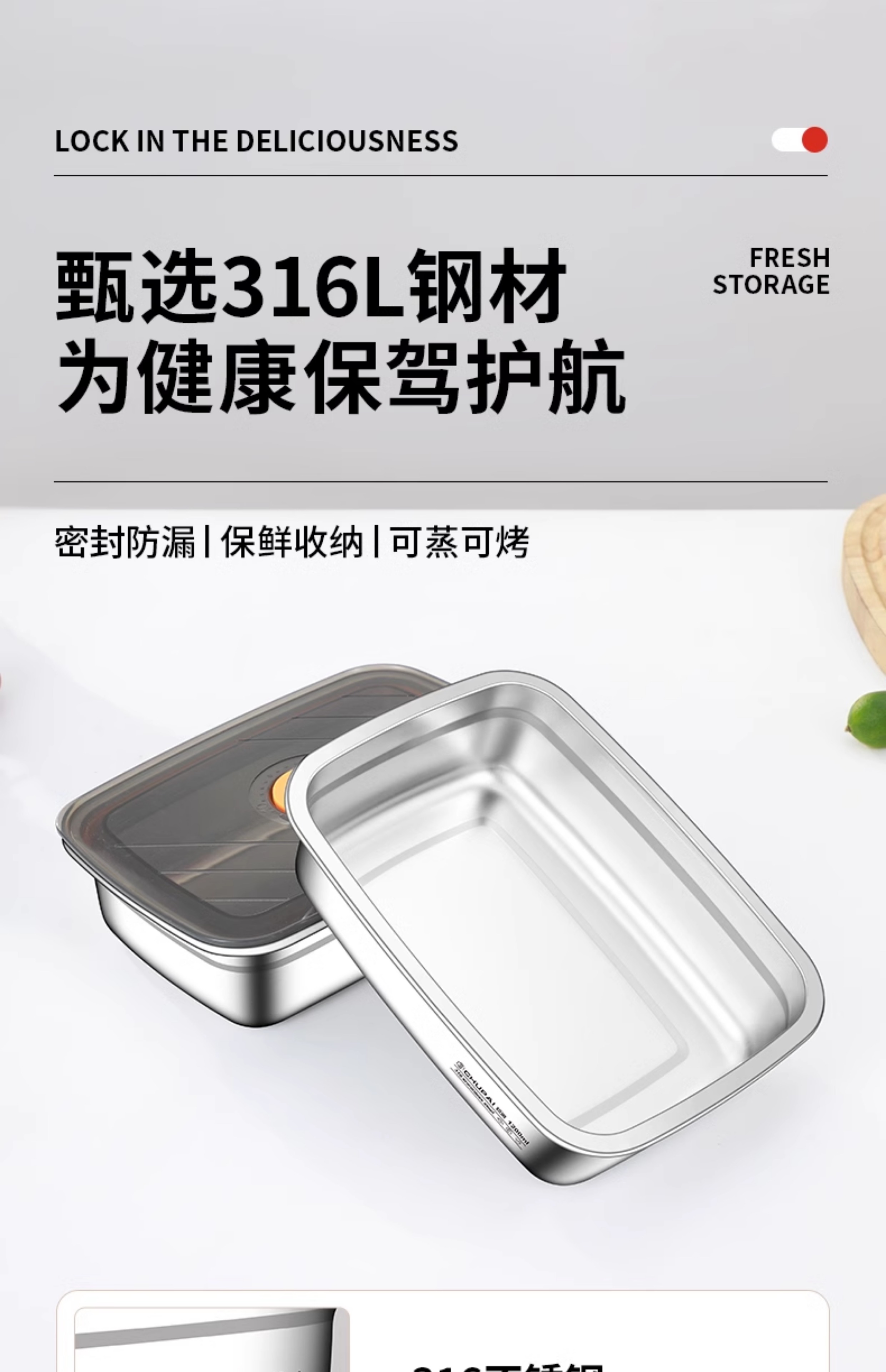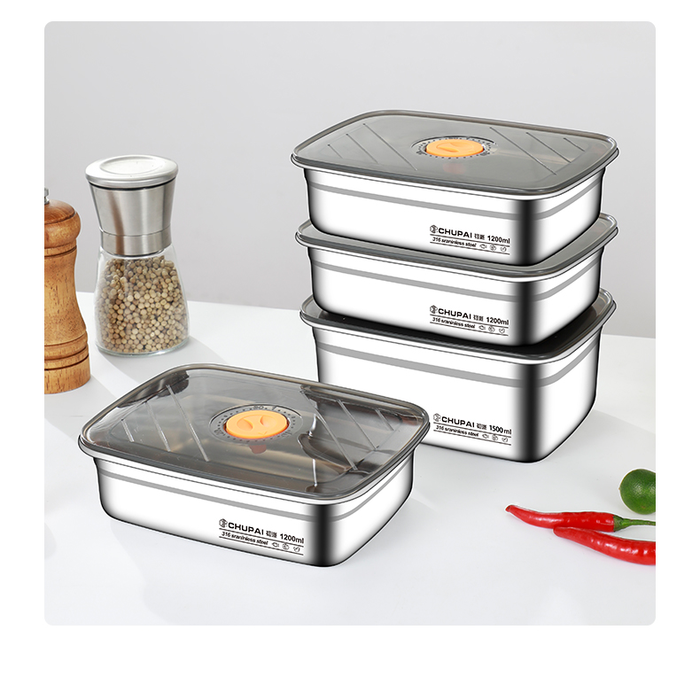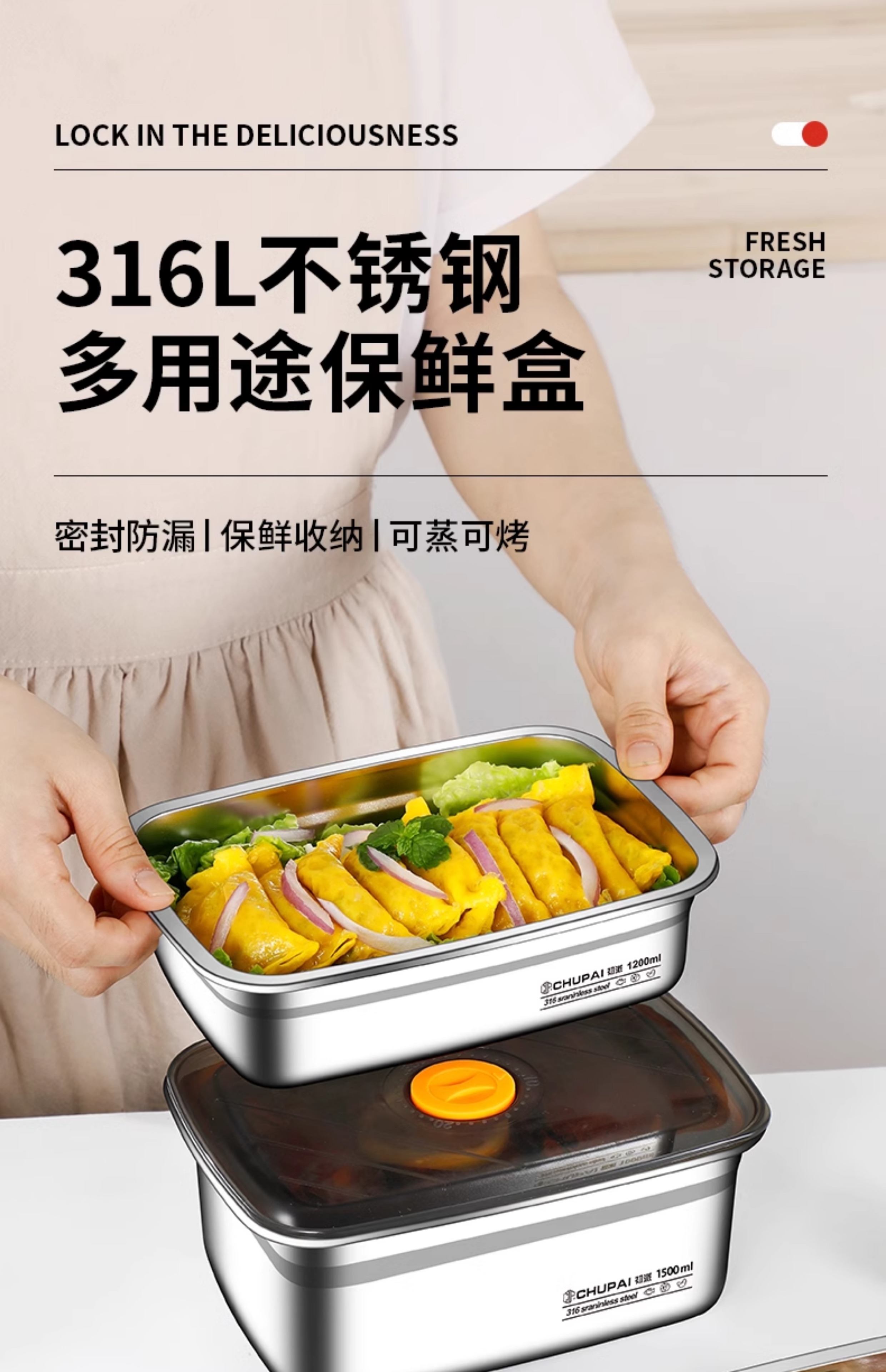 カスタマイズ可能な蓋付き食品グレード弁当箱、密閉容器、長方形ボックス、316ステンレス製鮮度保持容器